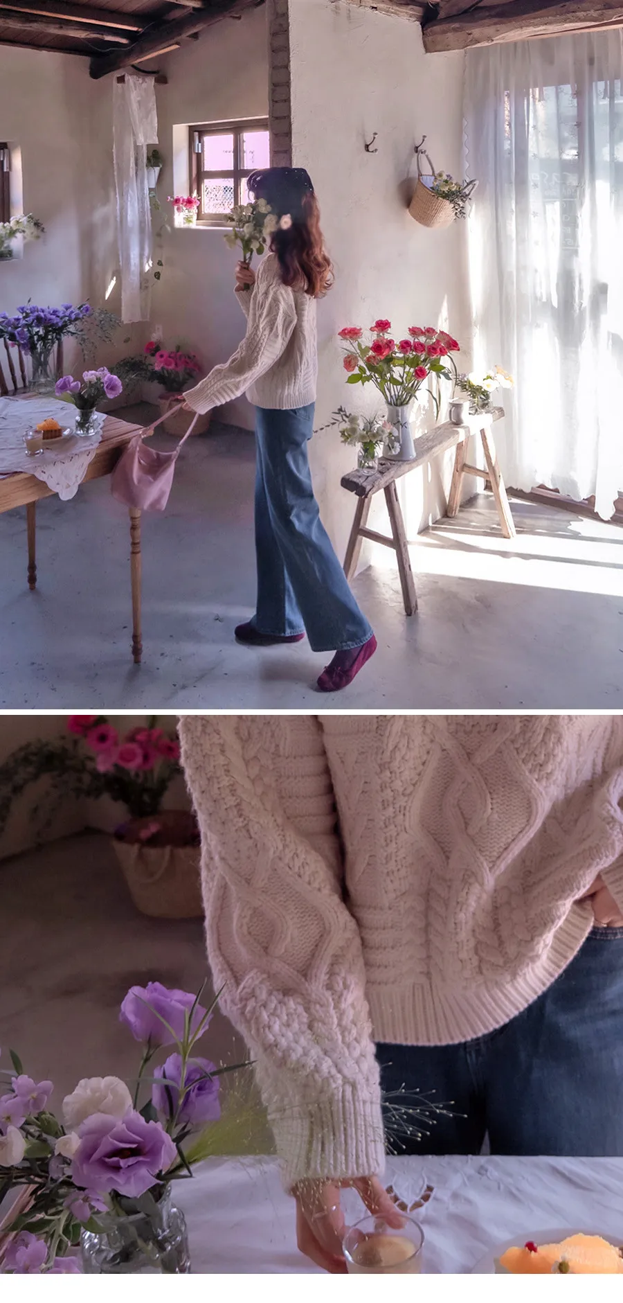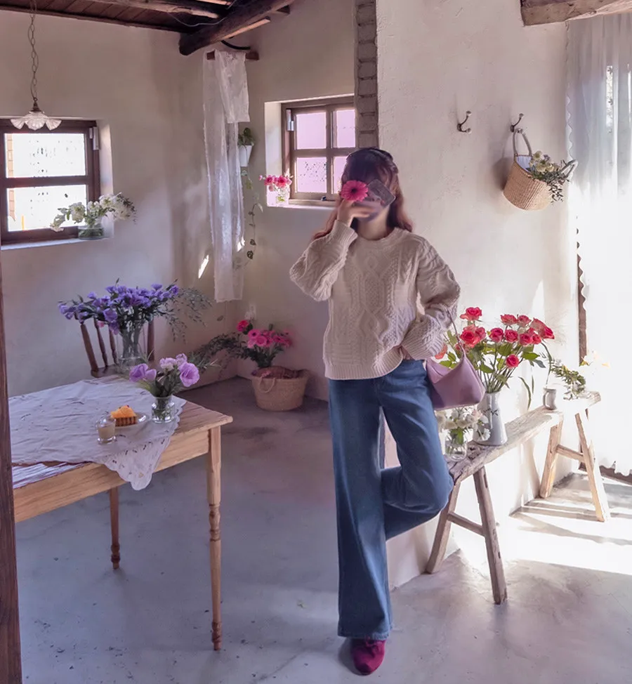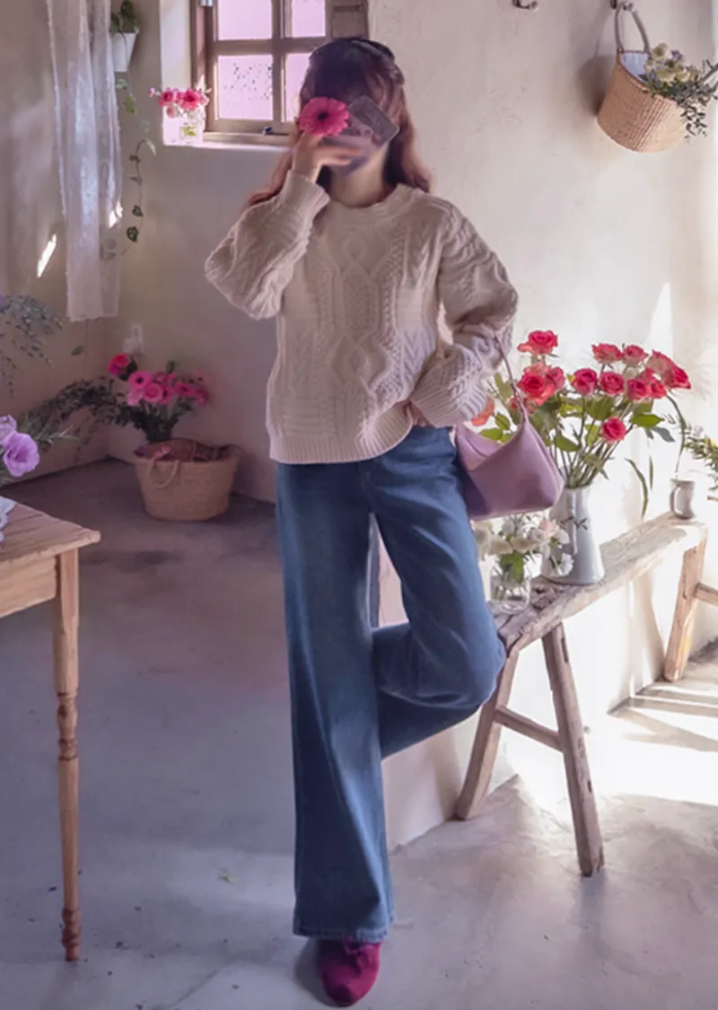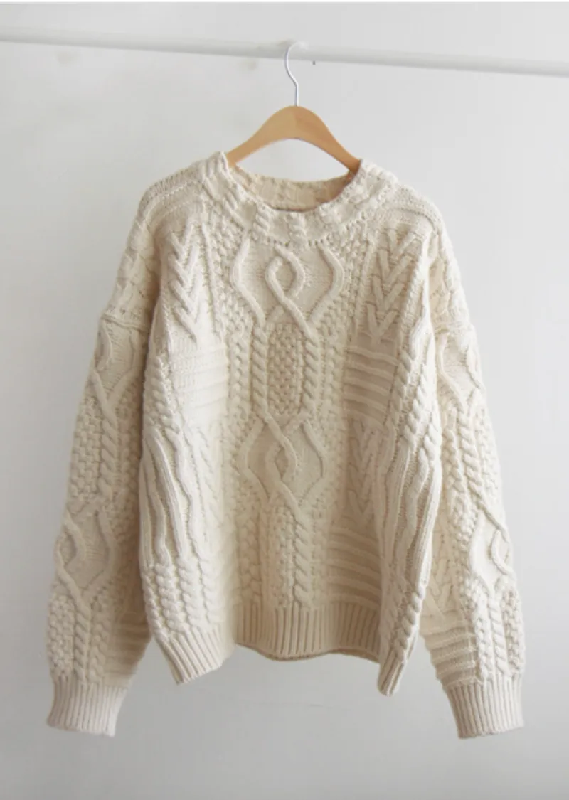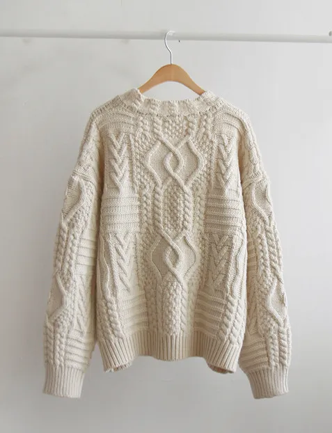精緻扭結編織純色日常針織上衣