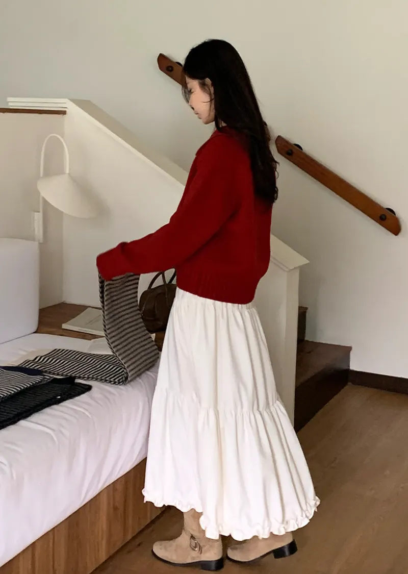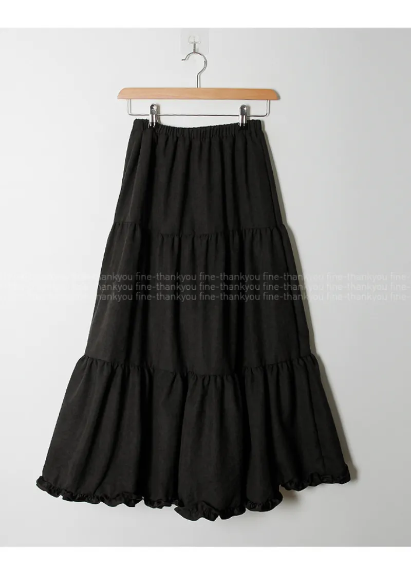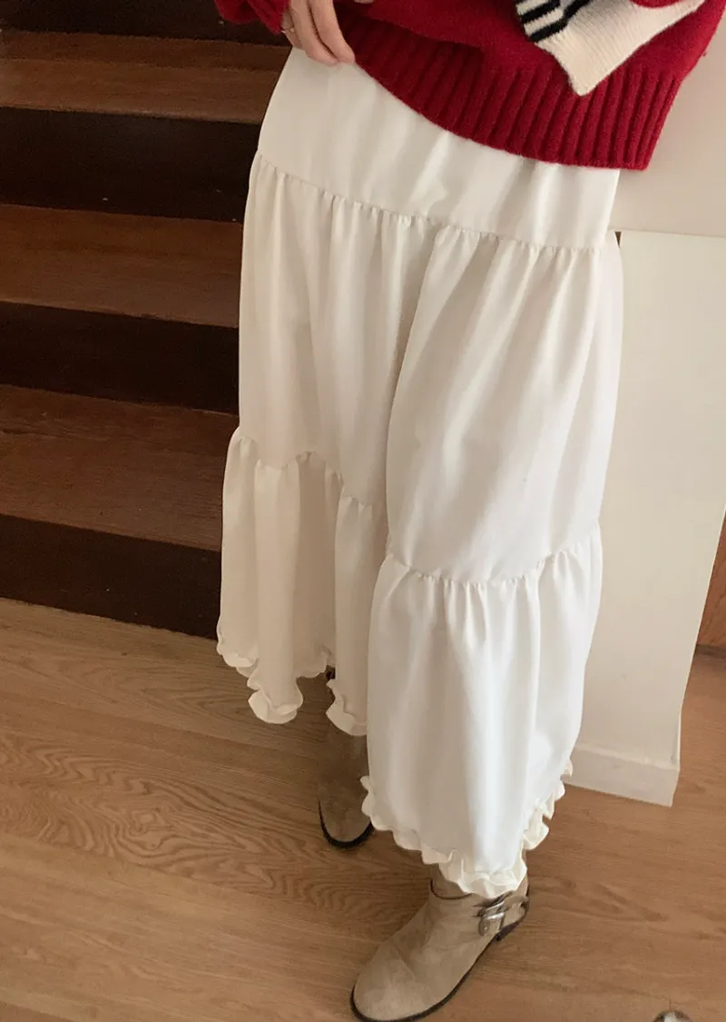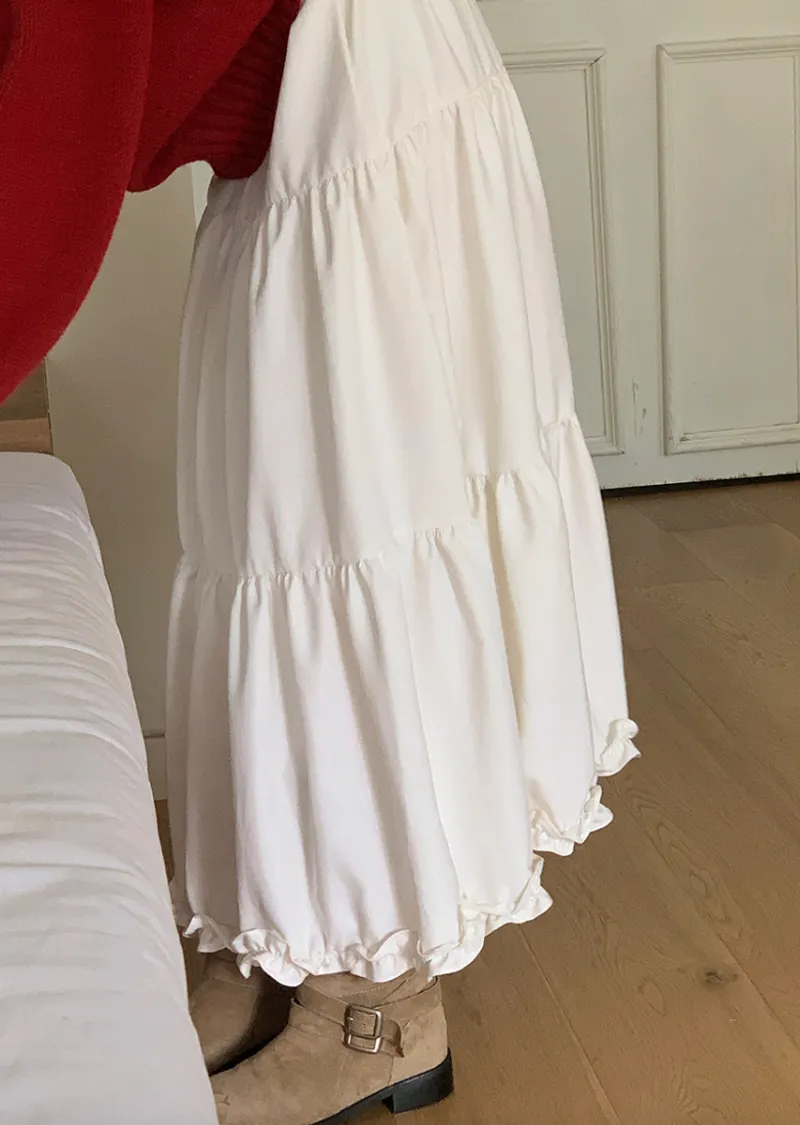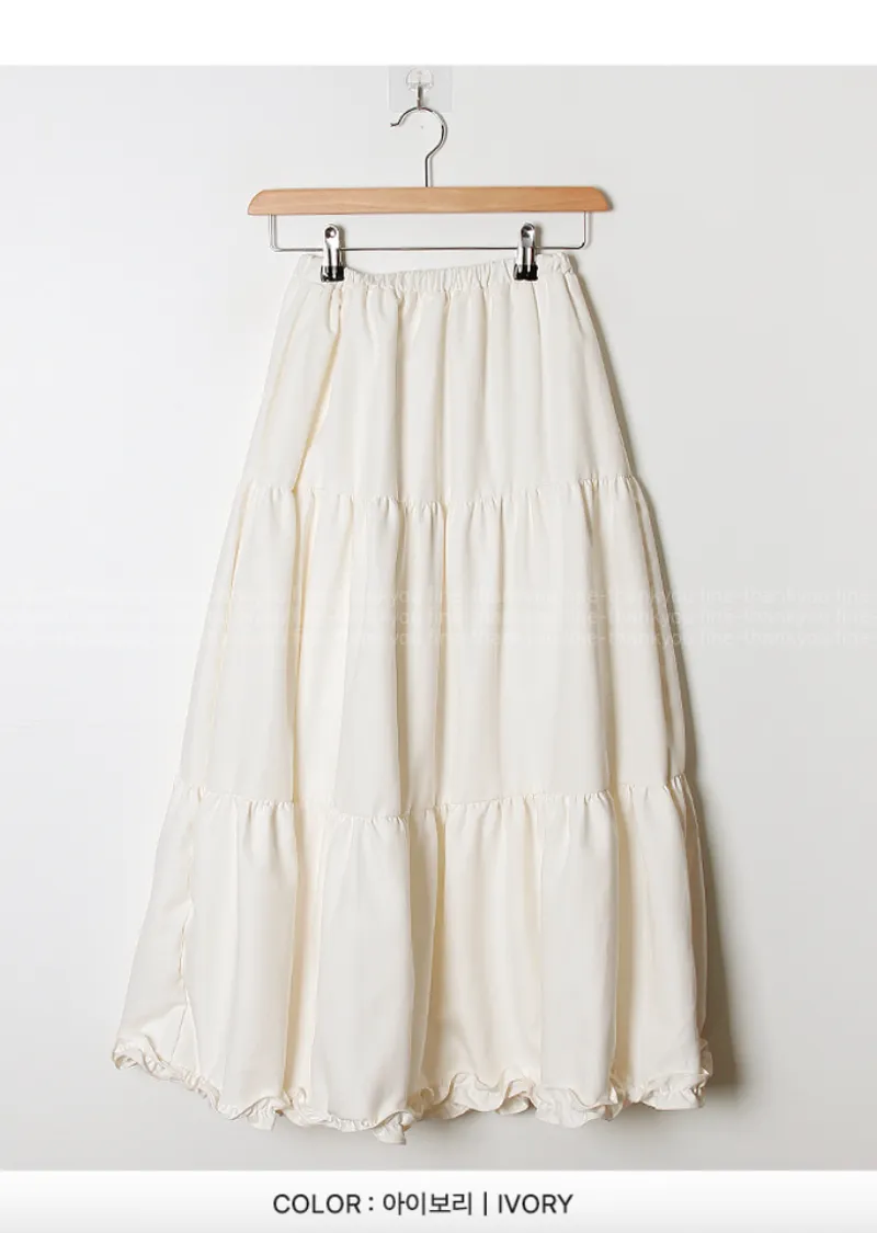 甜美氣息層次裙擺底部摺飾邊中長裙