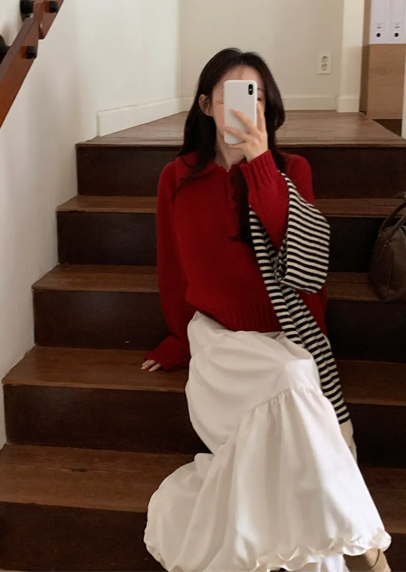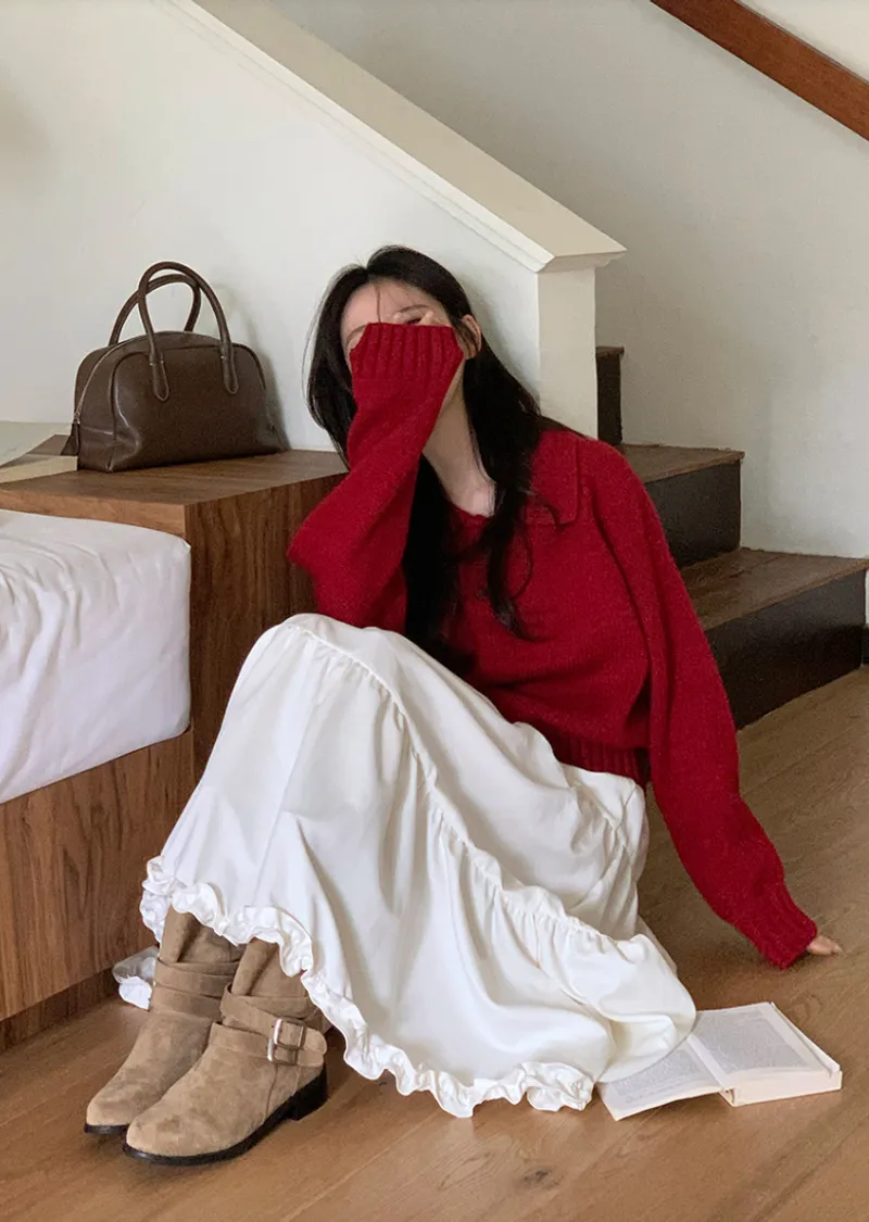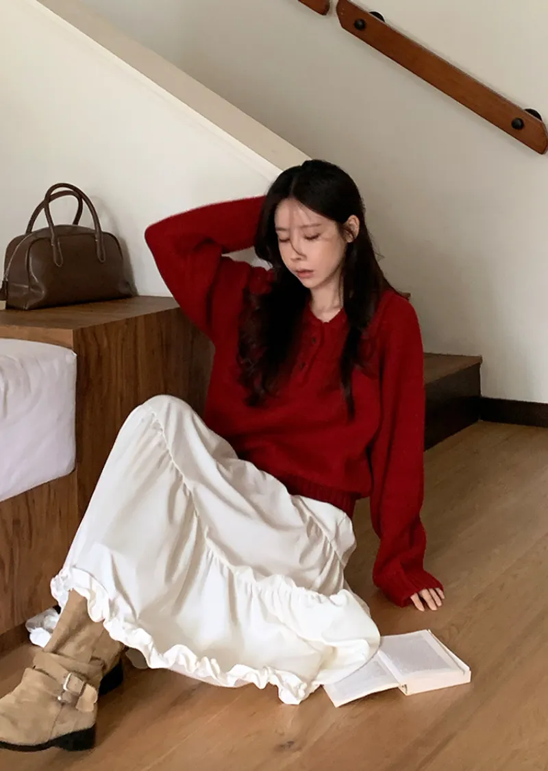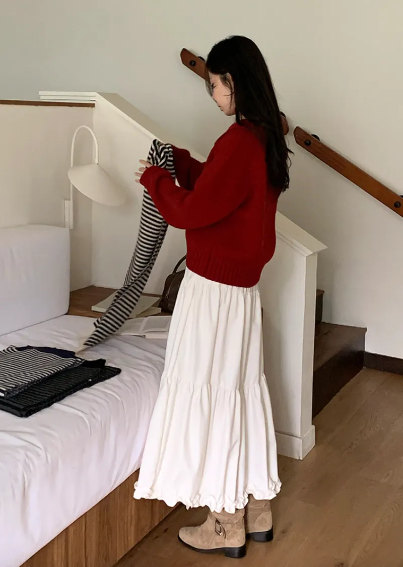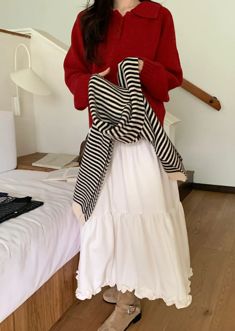 甜美氣息層次裙擺底部摺飾邊中長裙
