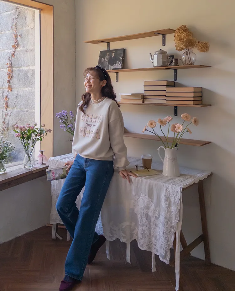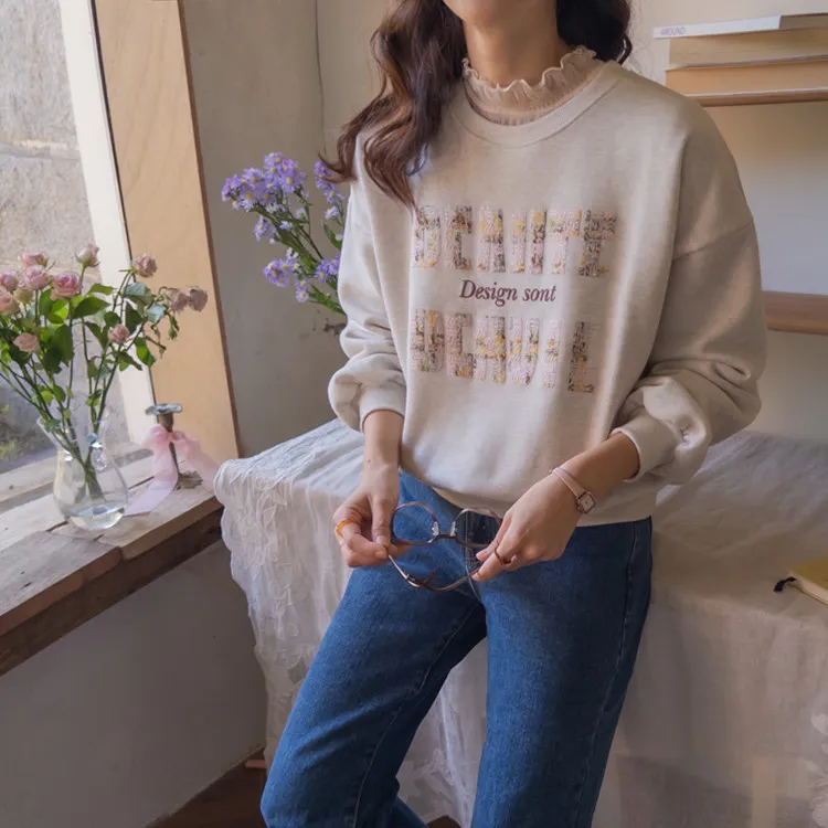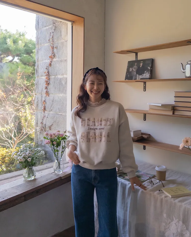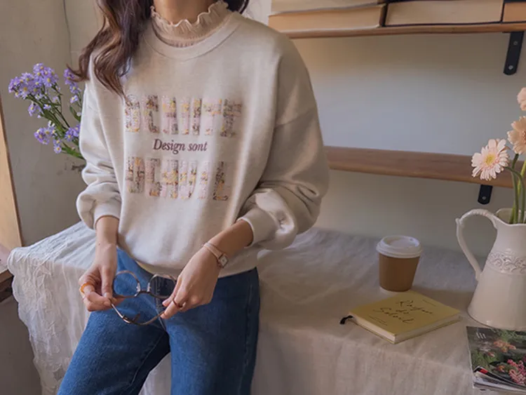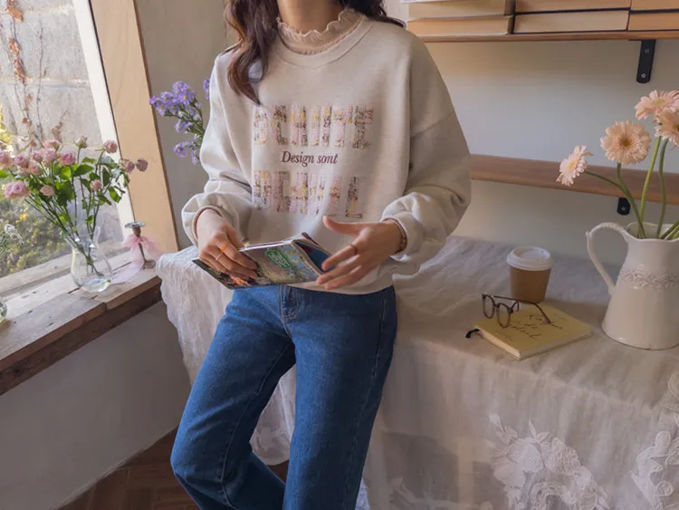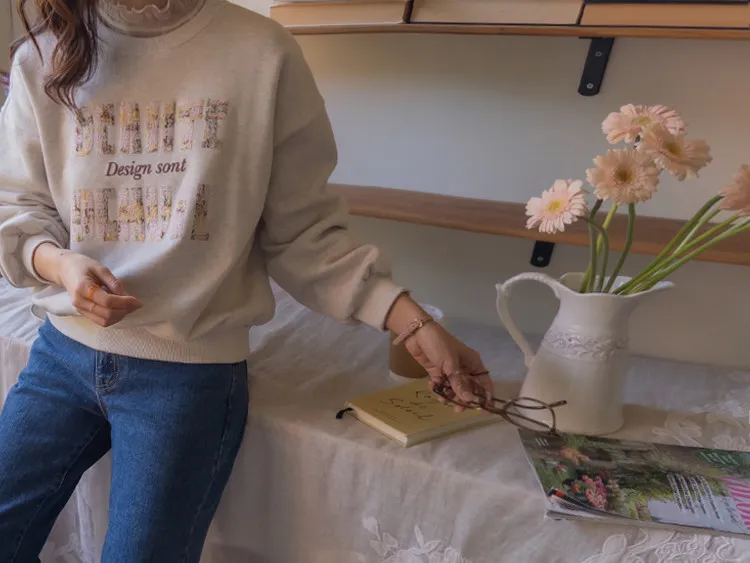 漂亮花呢字母印花穿搭上衣