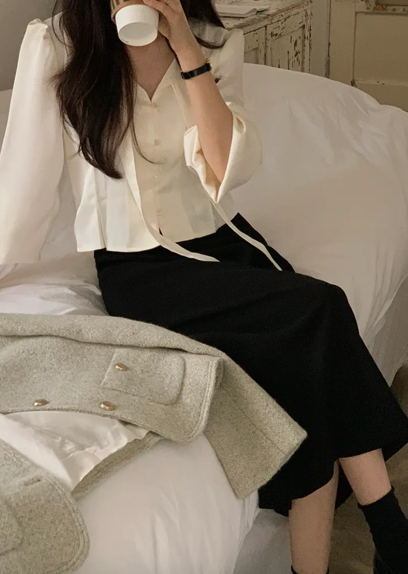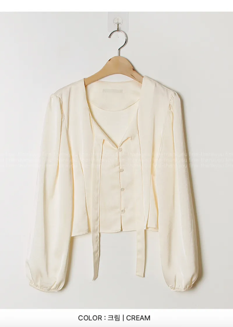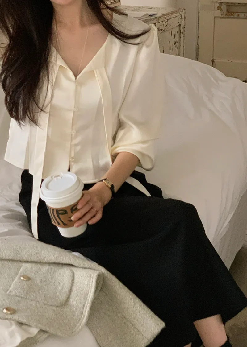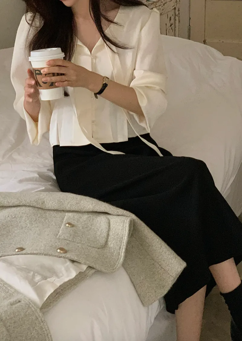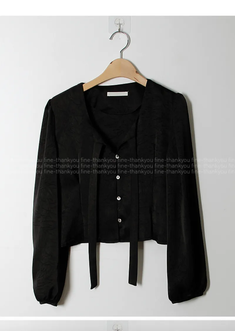 優雅迷人領綁帶腰線褶襉修身排扣上衣