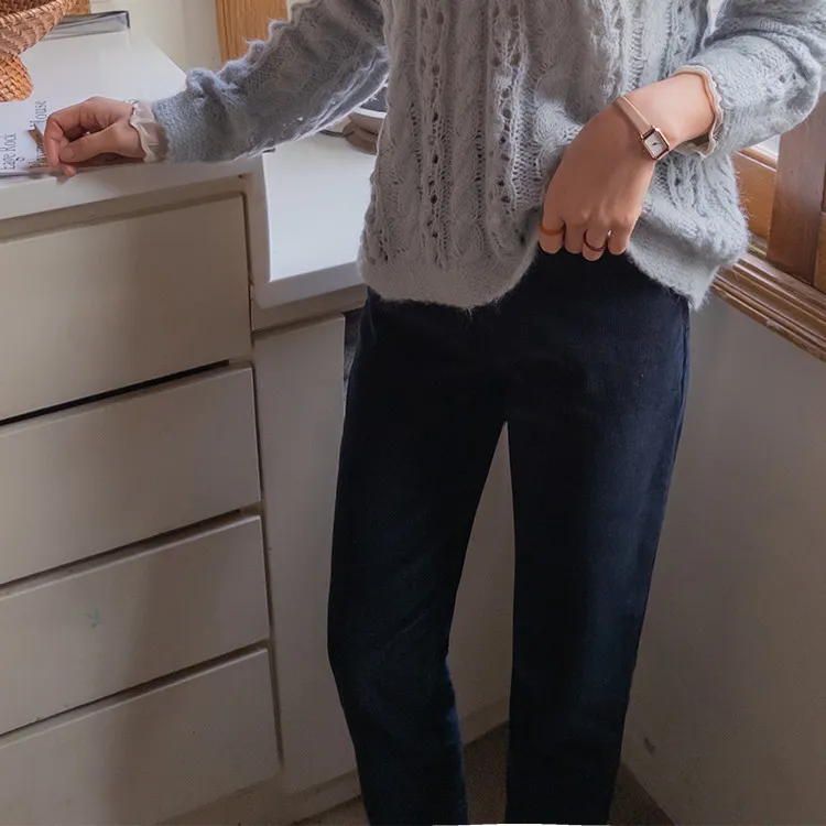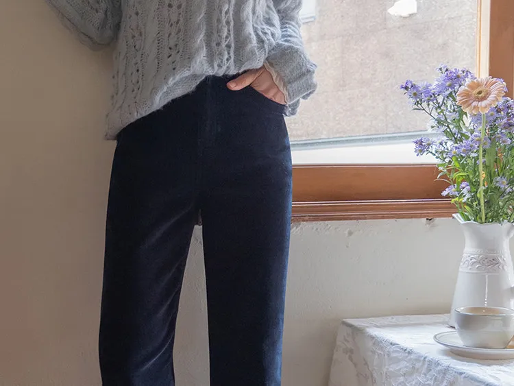 溫暖舒適修身直筒版型燈芯絨休閒褲