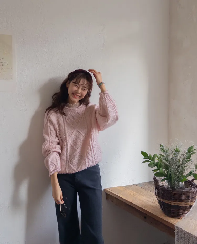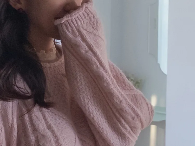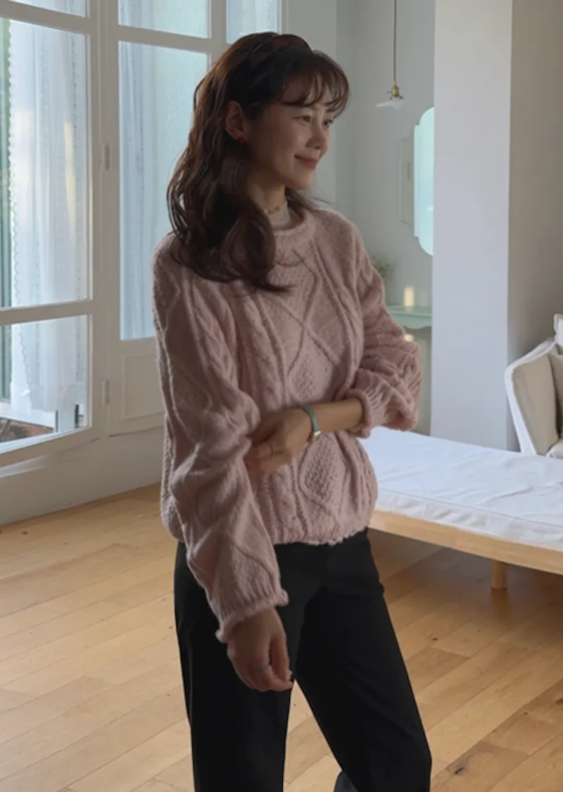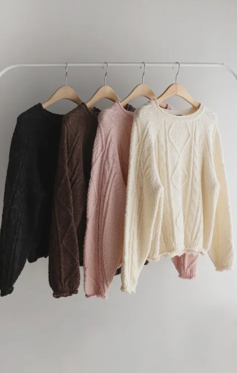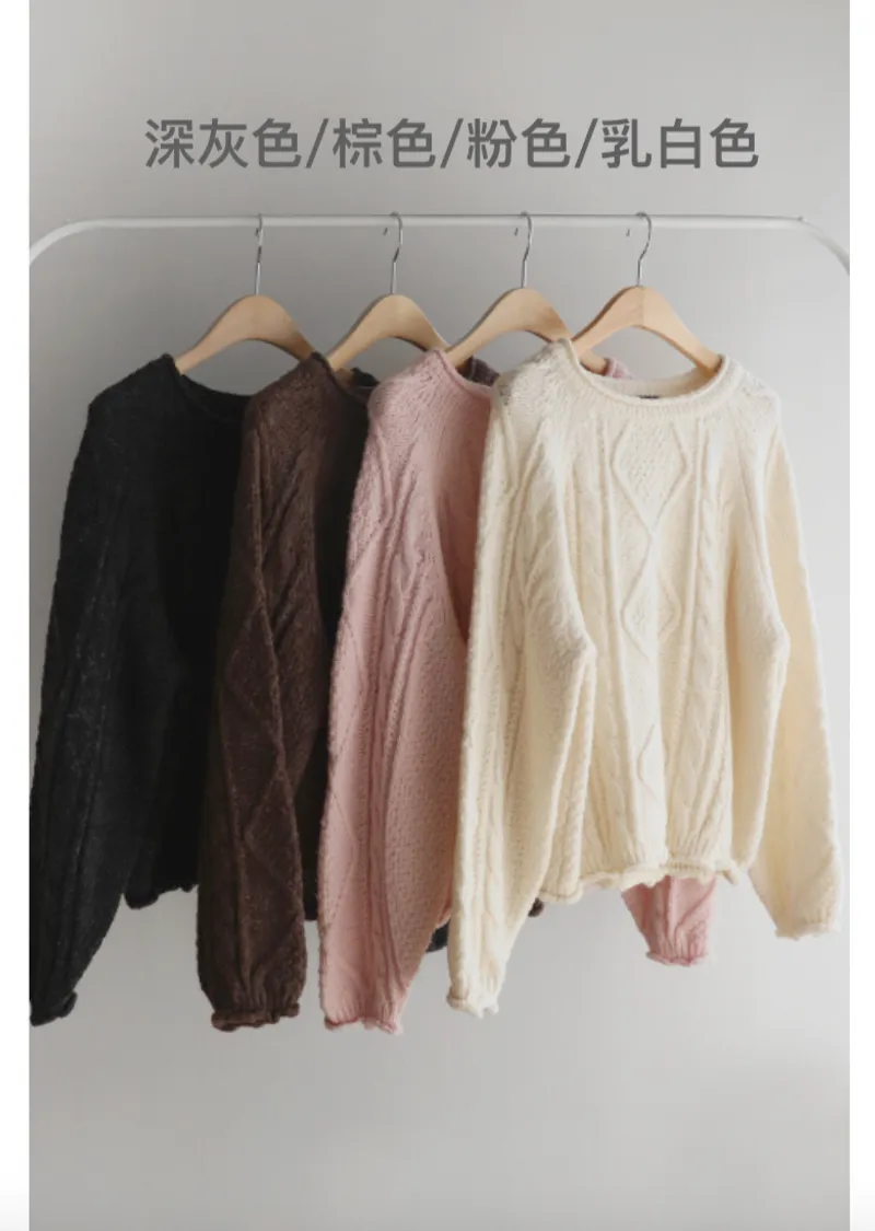 【蓬鬆柔軟~ 溫暖舒適】 【肩部線條精緻可愛 ^^】 【立體編織針織,打造百搭休閒造型】 【捲邊下擺和袖口~ 精緻細節】