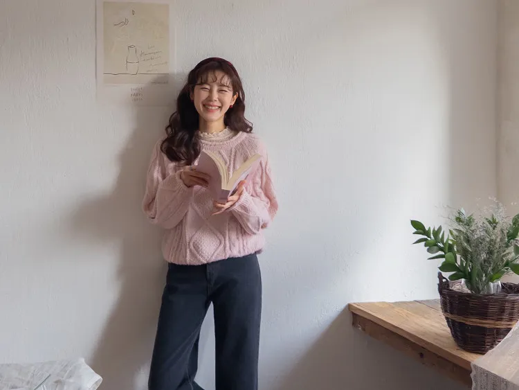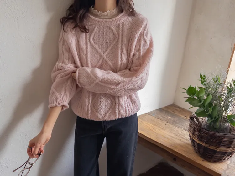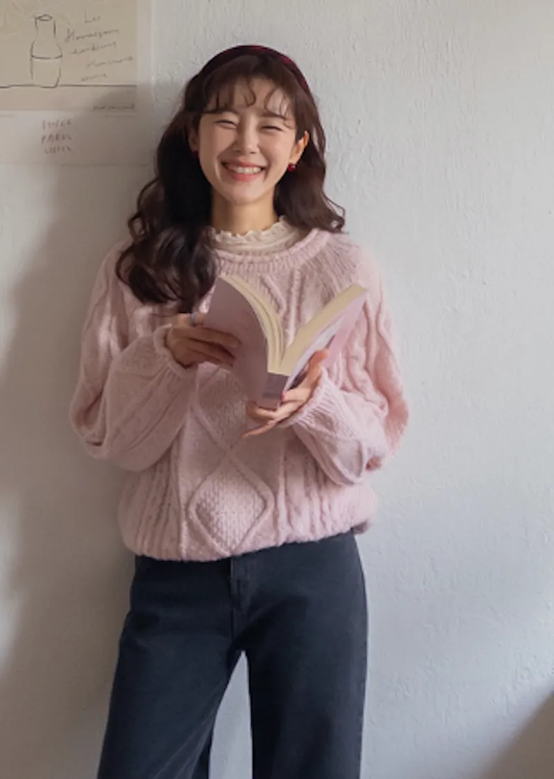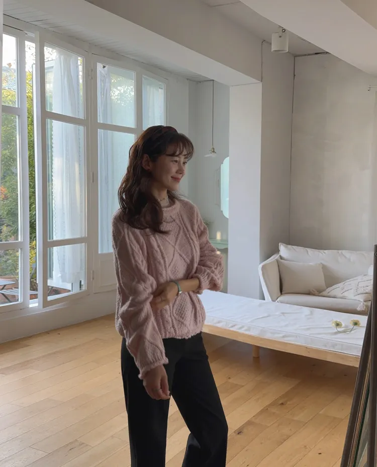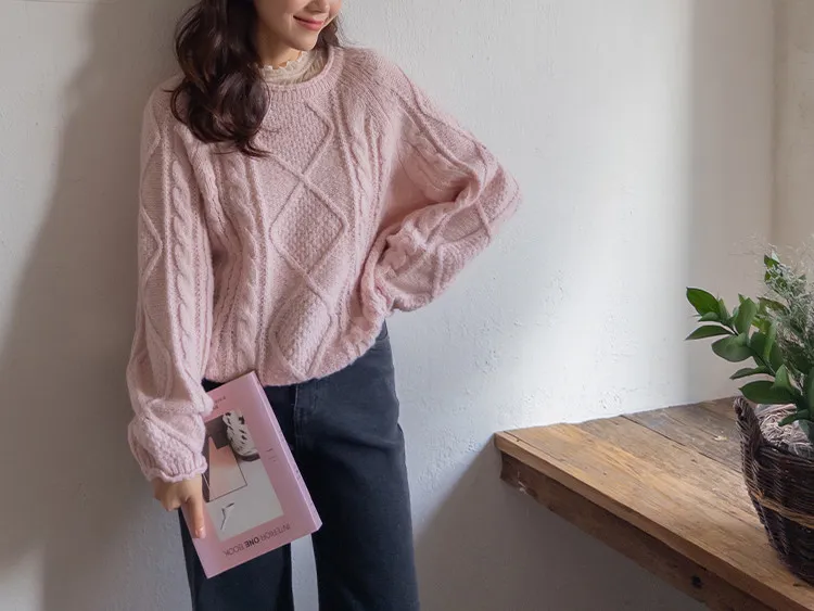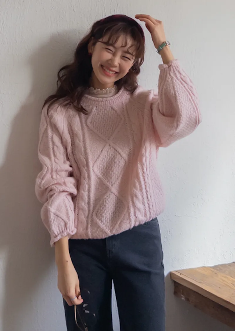 【蓬鬆柔軟~ 溫暖舒適】 【肩部線條精緻可愛 ^^】 【立體編織針織,打造百搭休閒造型】 【捲邊下擺和袖口~ 精緻細節】