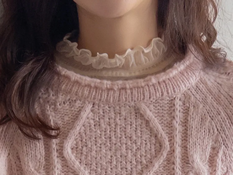 可愛微妙蕾絲線條波浪邊半高領內搭透膚上衣
