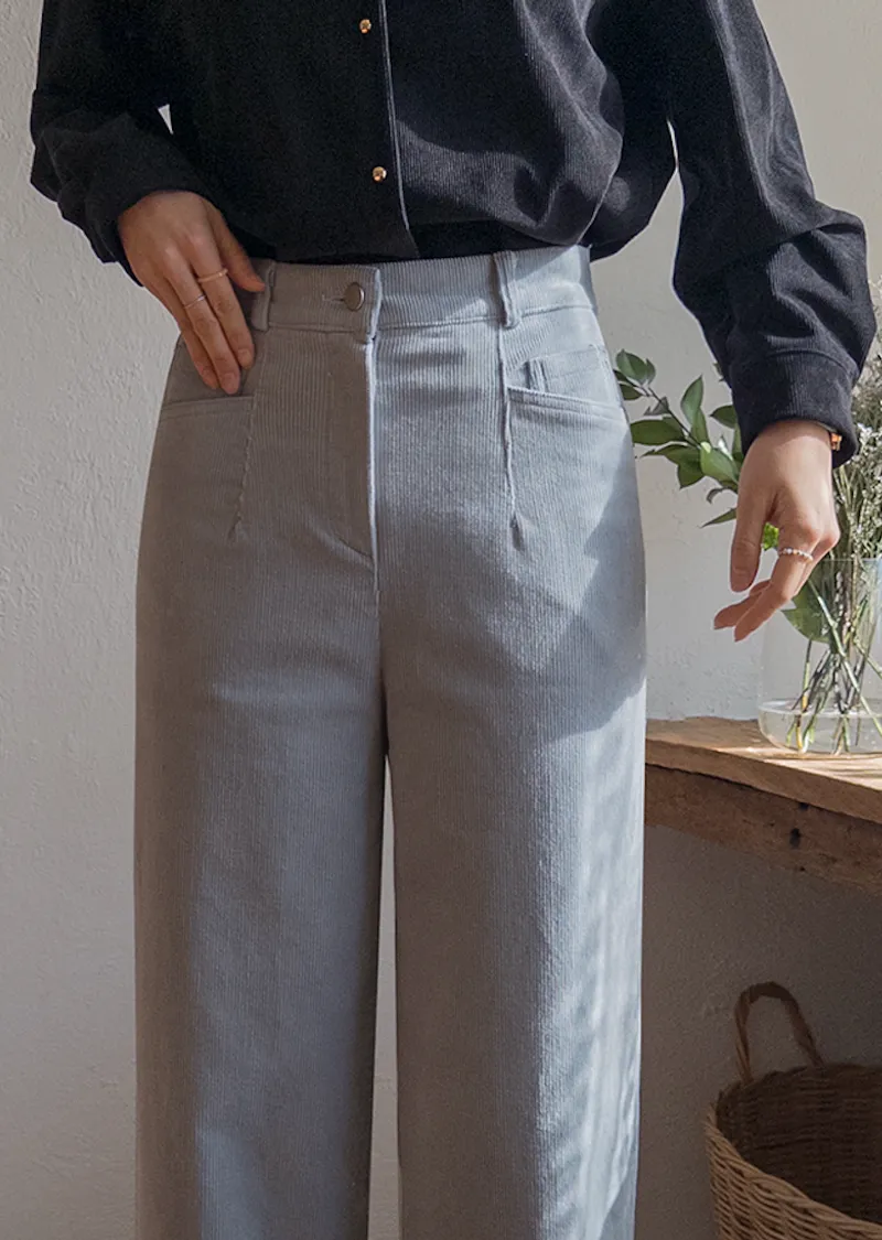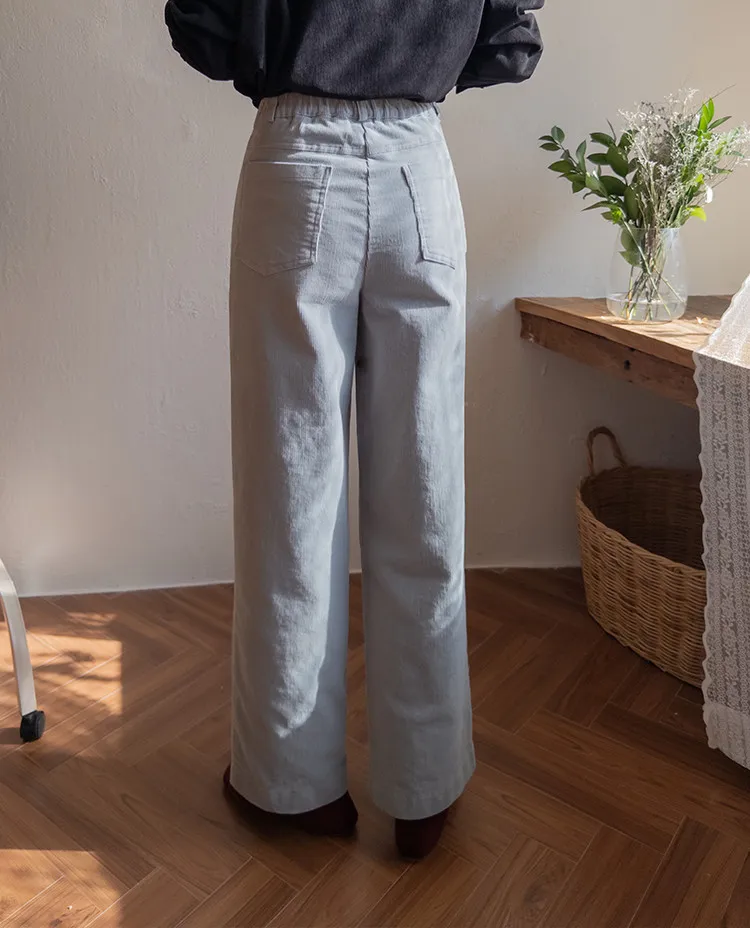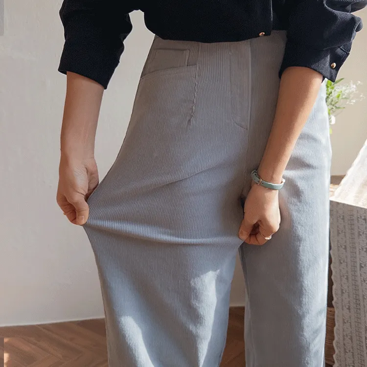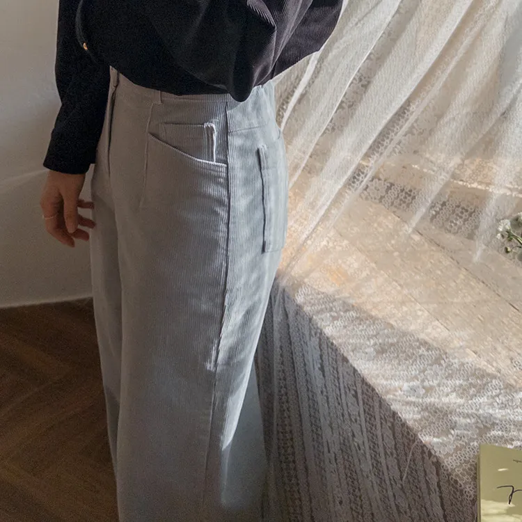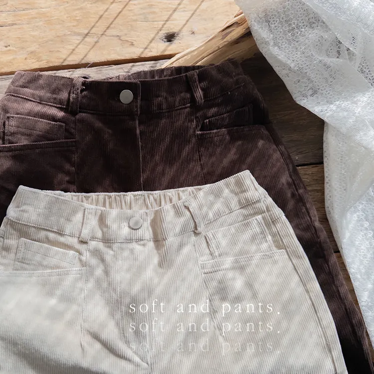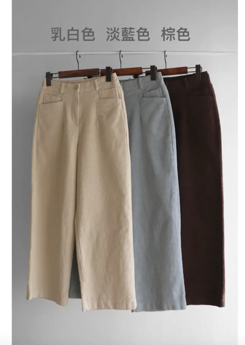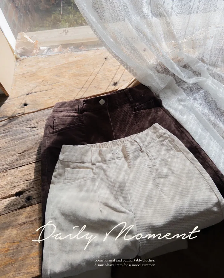 溫暖修長直筒版型獨特口袋剪裁設計燈芯絨休閒褲