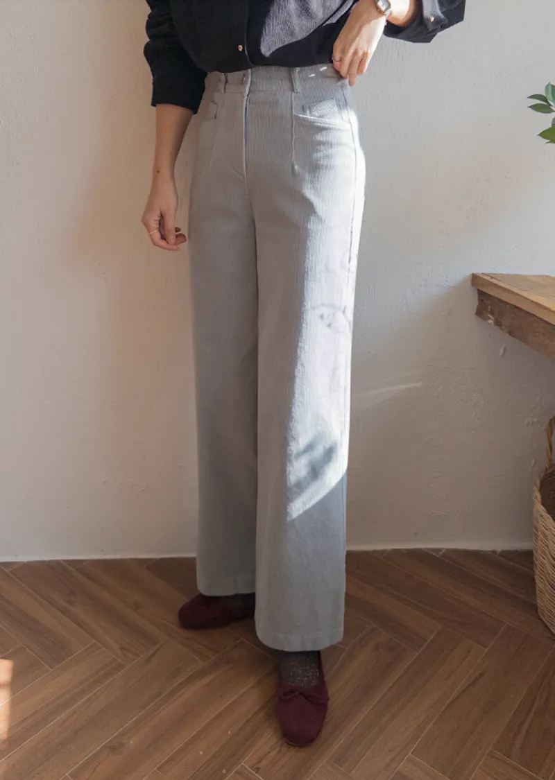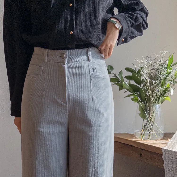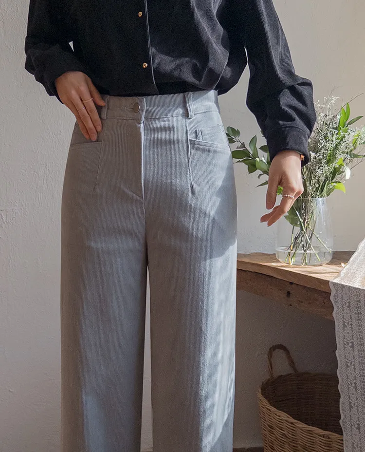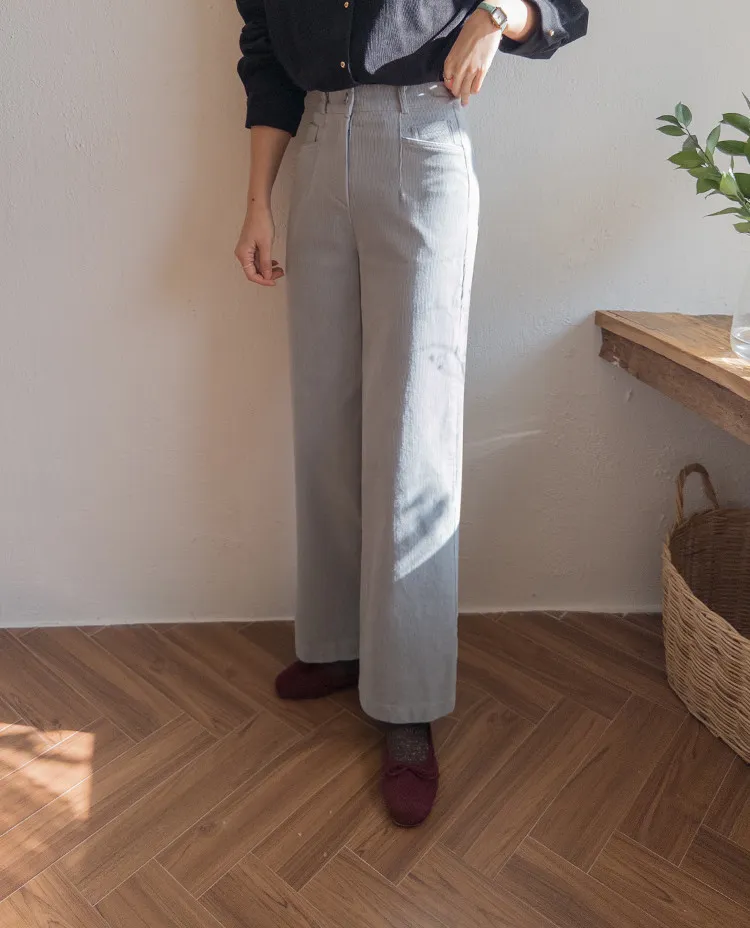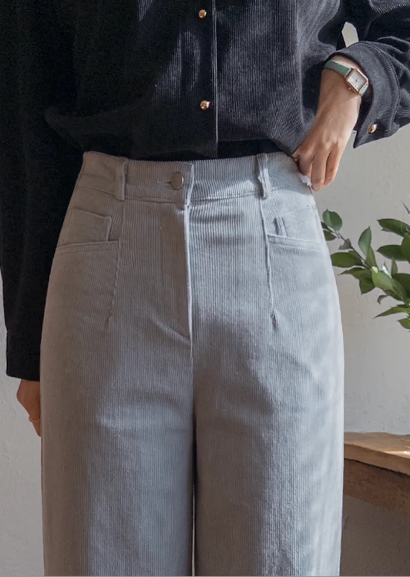 溫暖修長直筒版型獨特口袋剪裁設計燈芯絨休閒褲