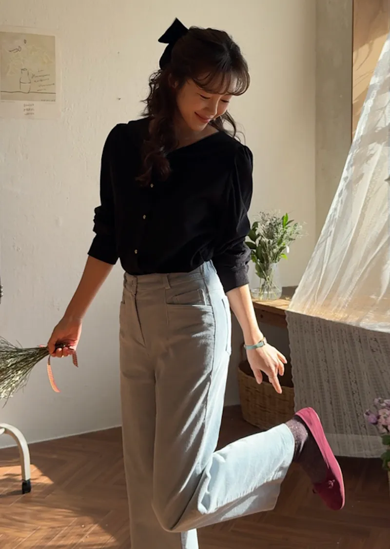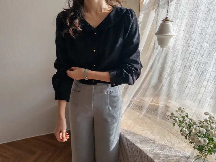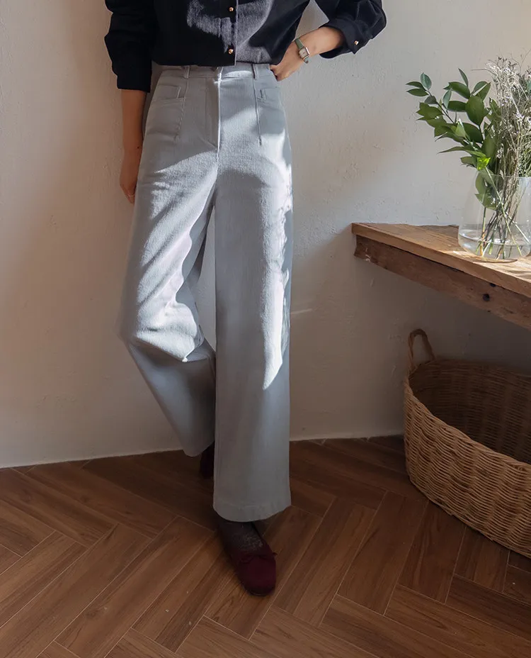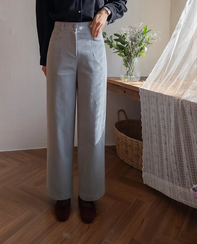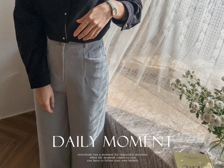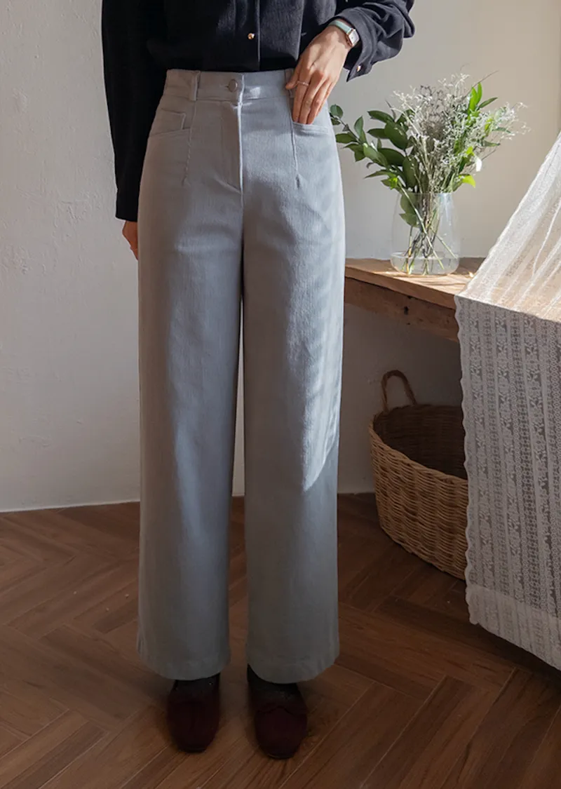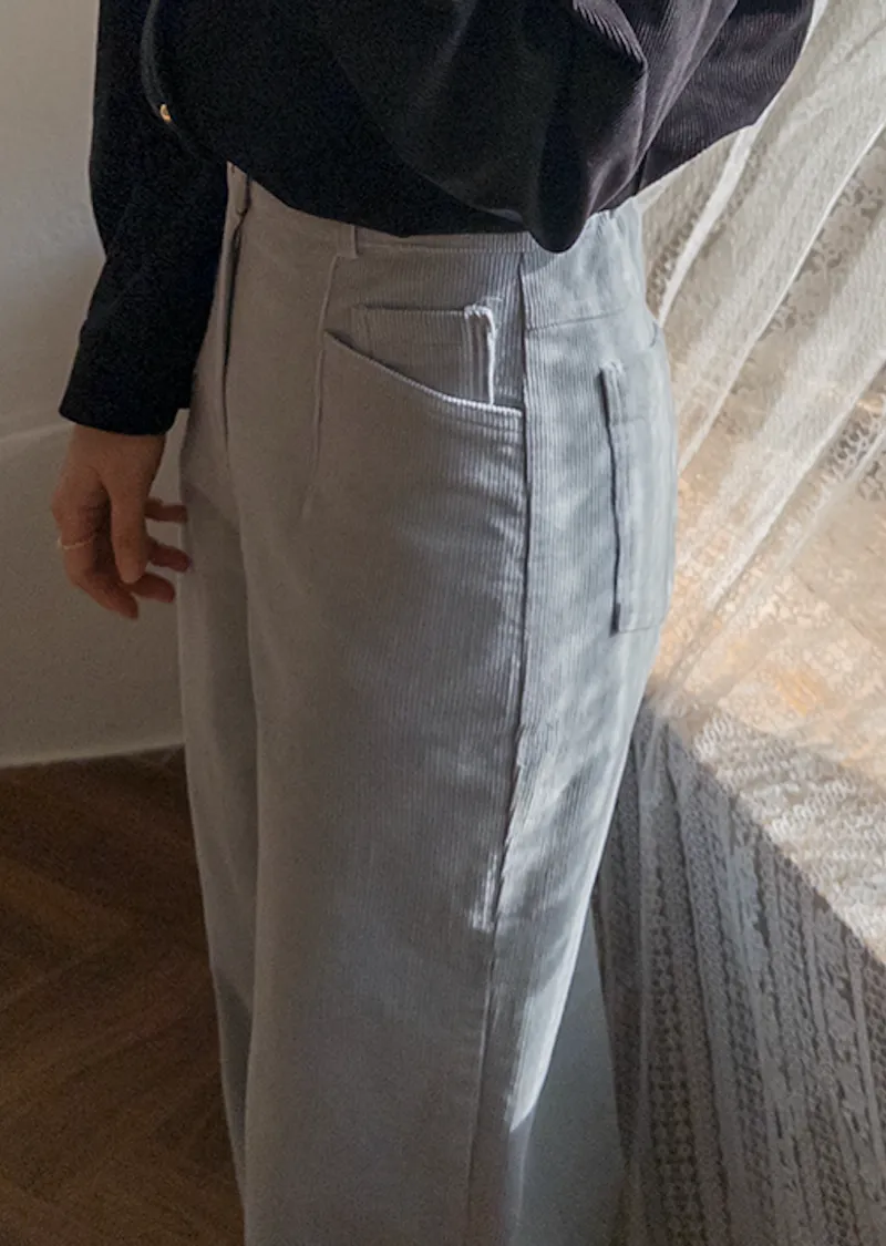 溫暖修長直筒版型獨特口袋剪裁設計燈芯絨休閒褲
