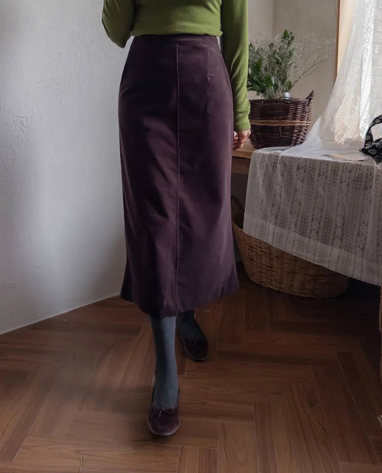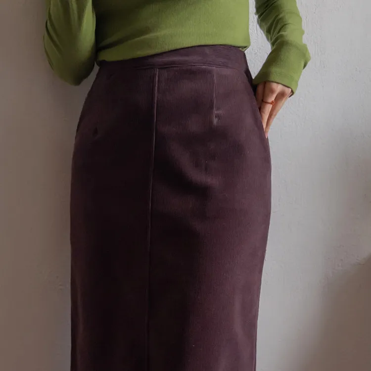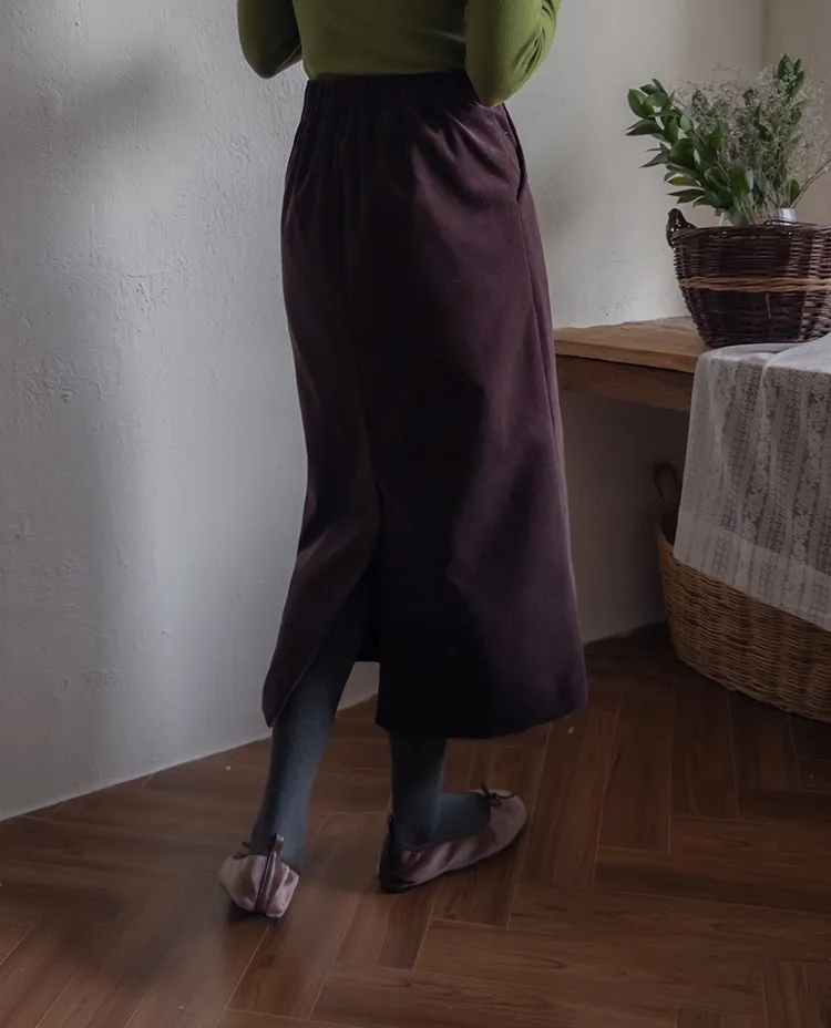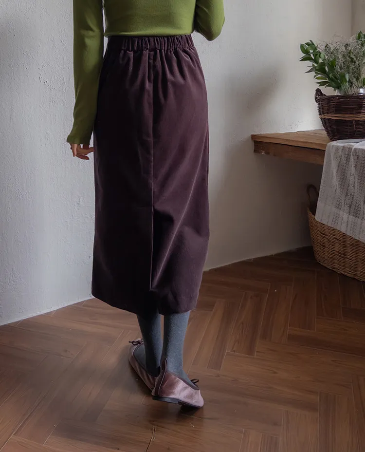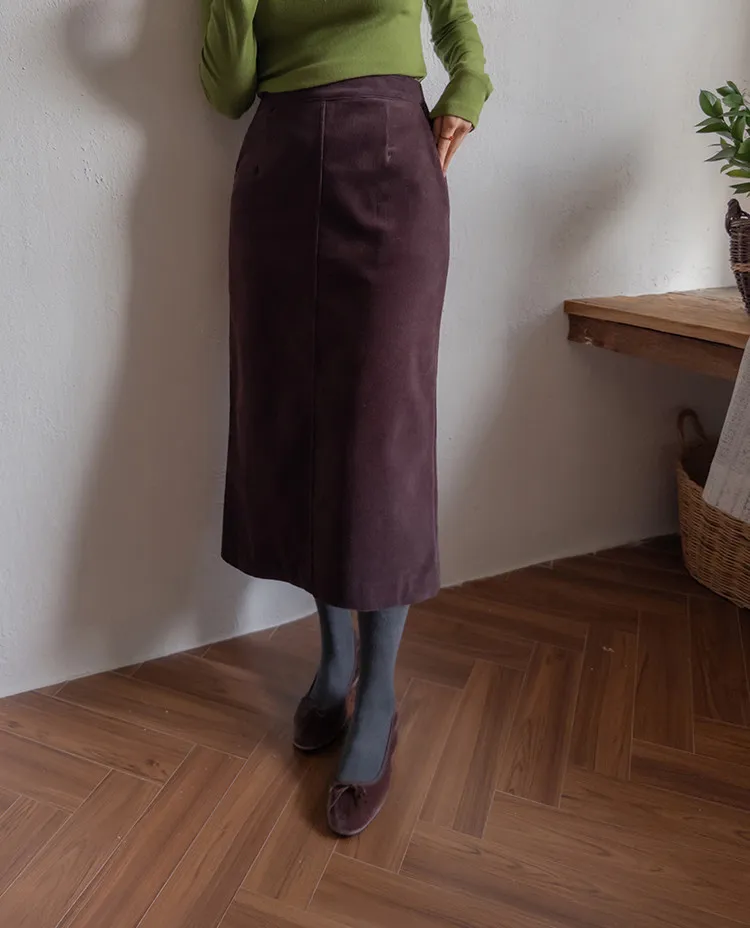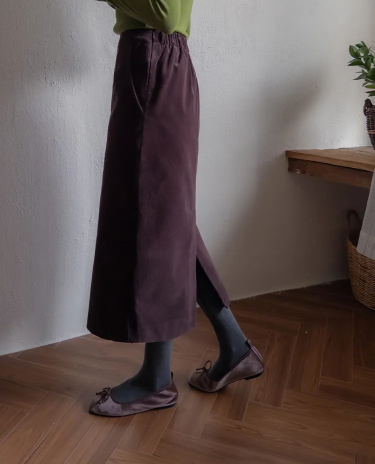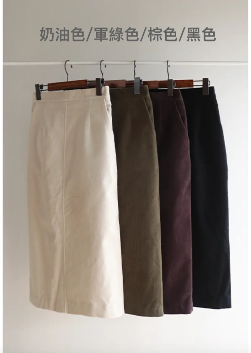 舒適羅紋修身版型H剪裁後開衩中長裙