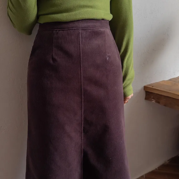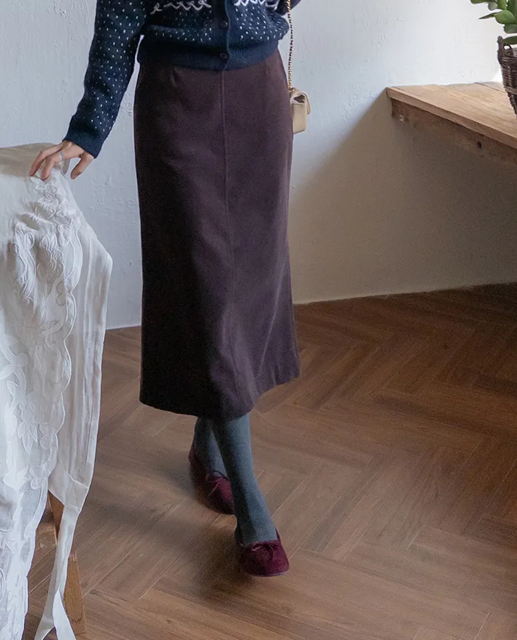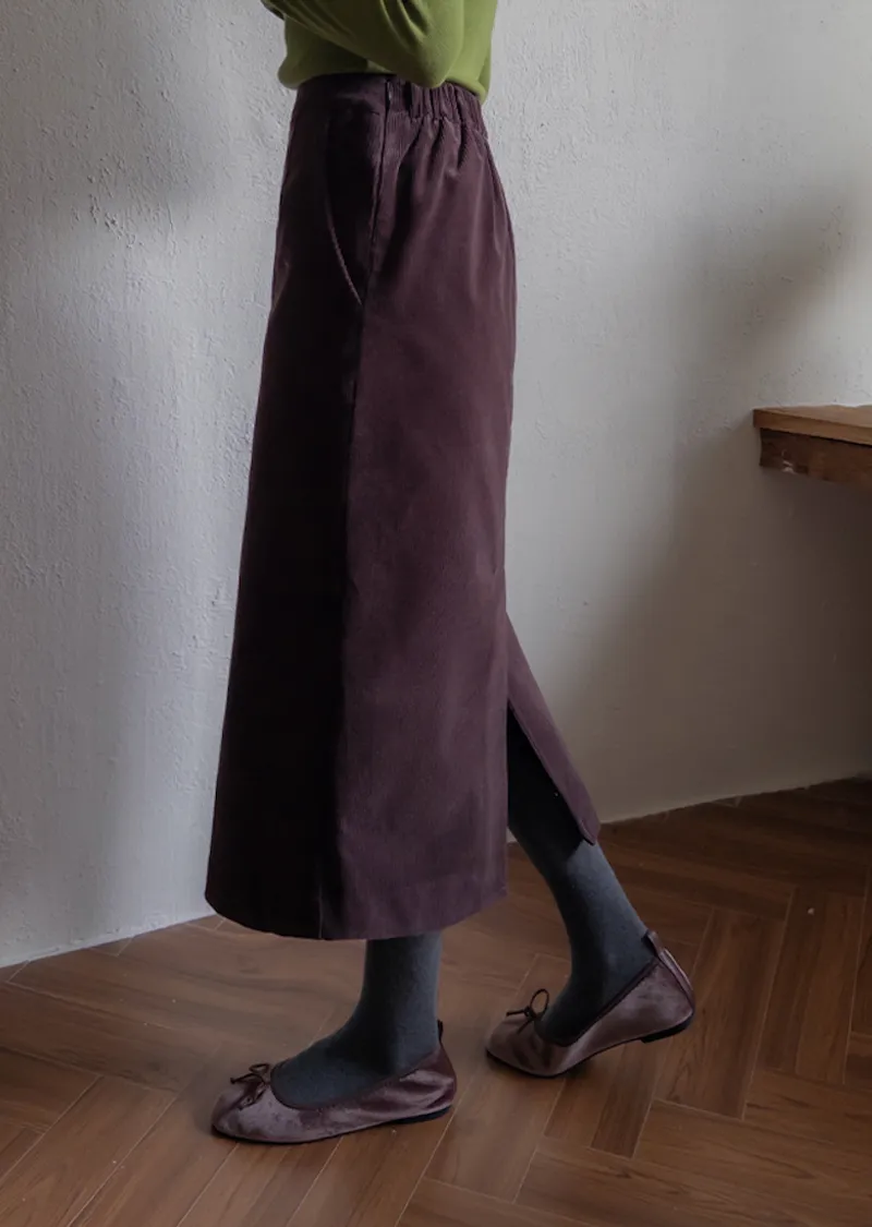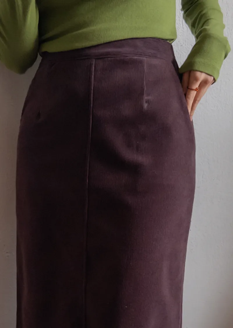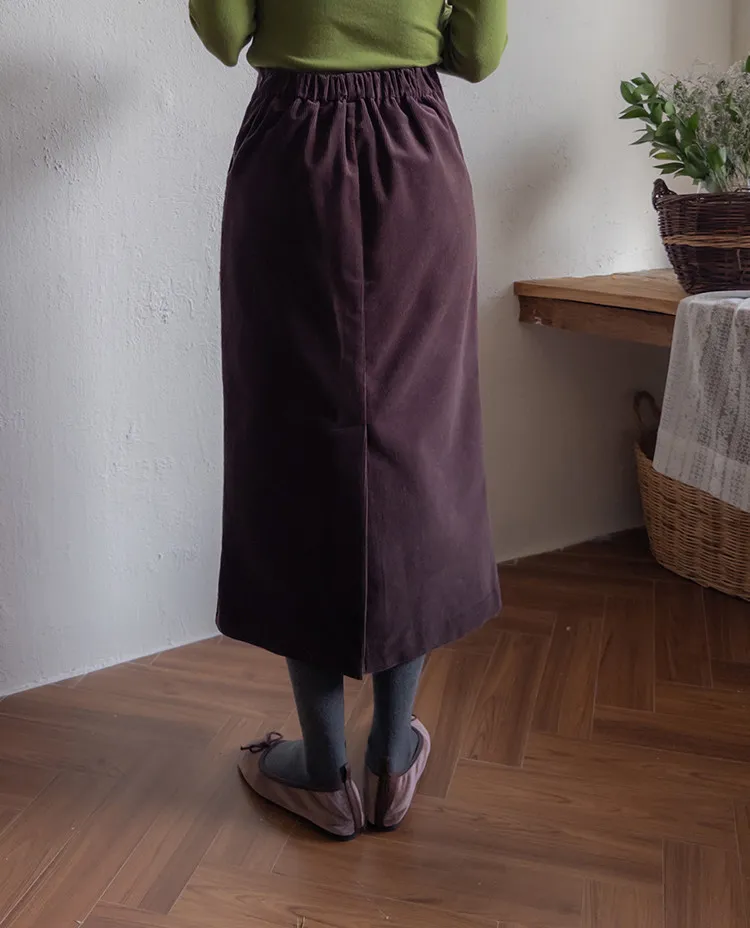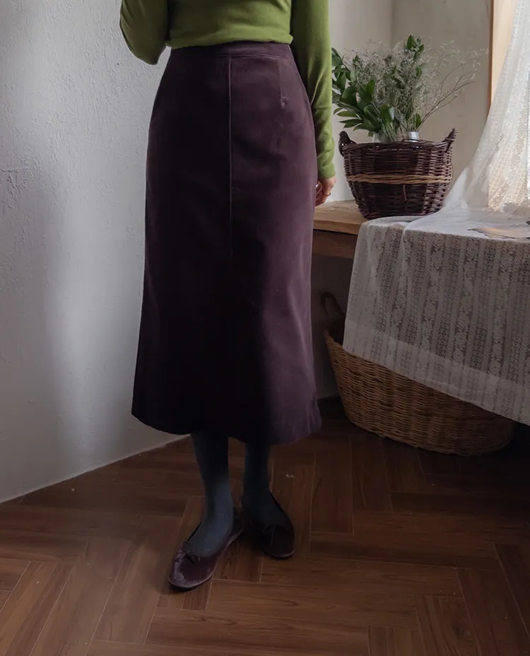 舒適羅紋修身版型H剪裁後開衩中長裙