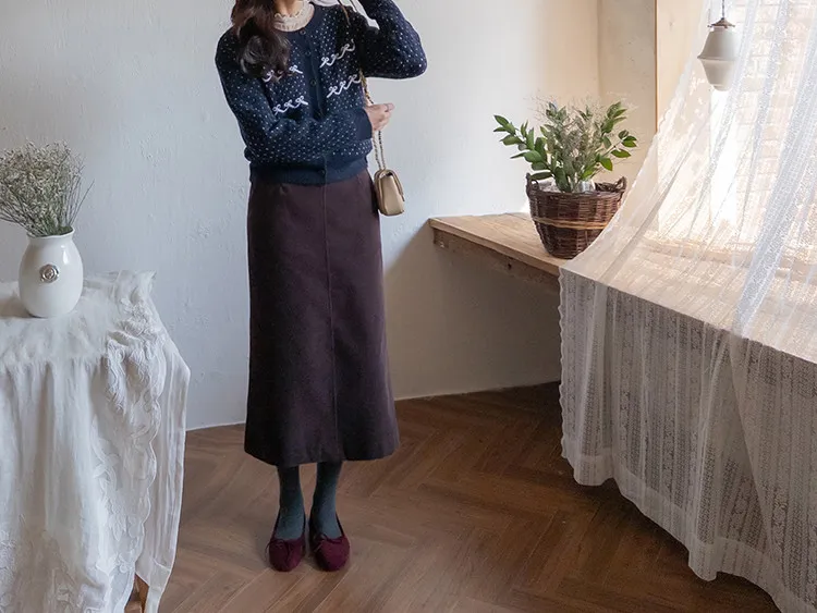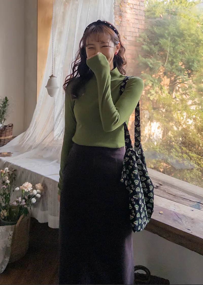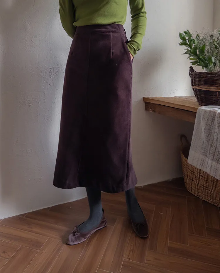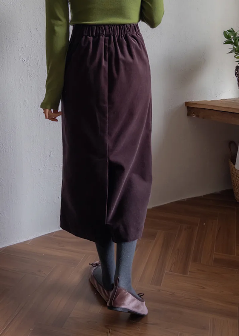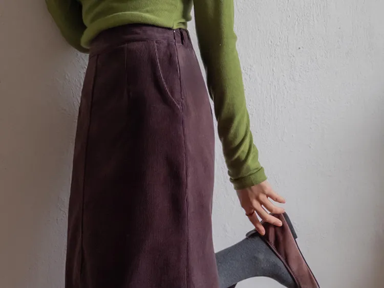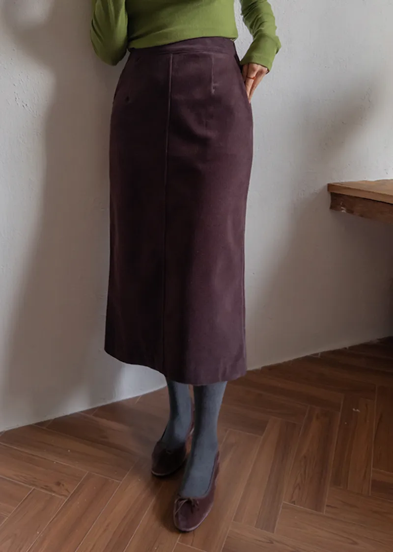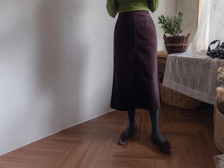 舒適羅紋修身版型H剪裁後開衩中長裙