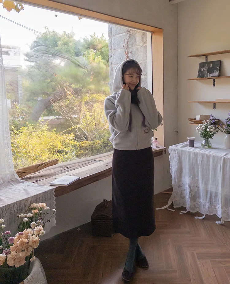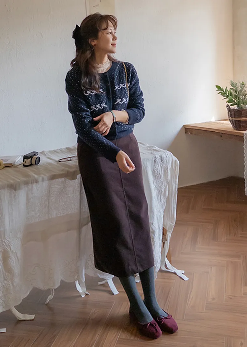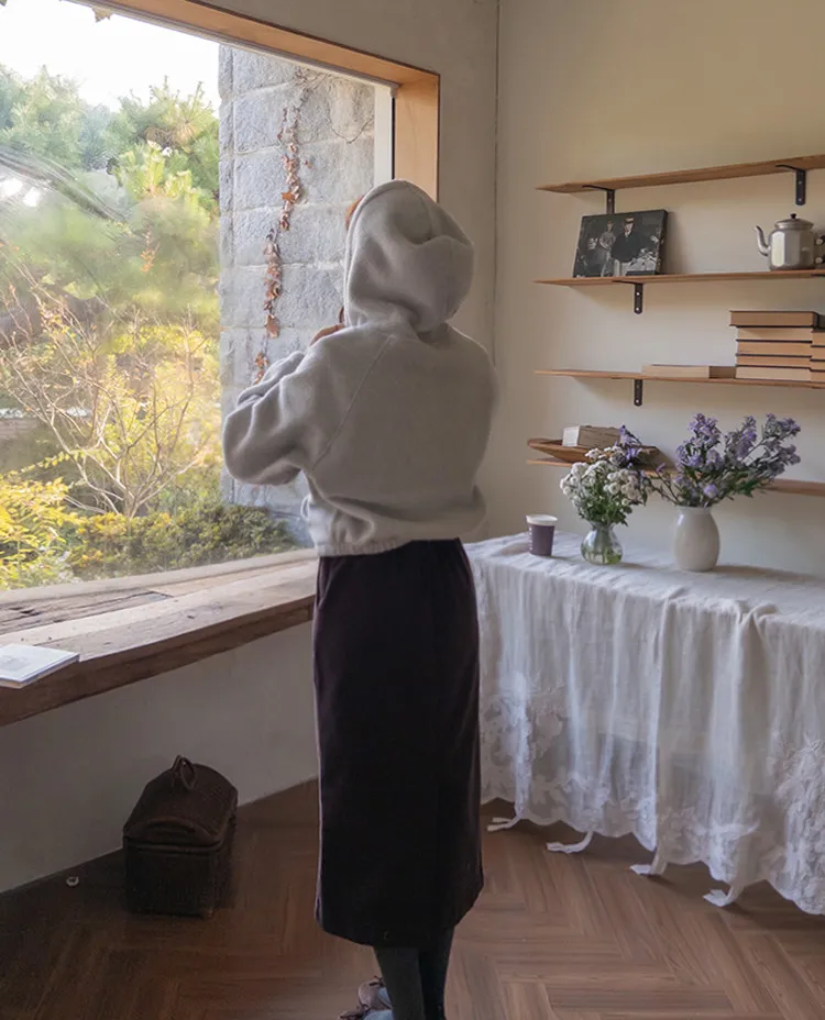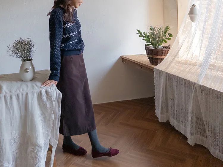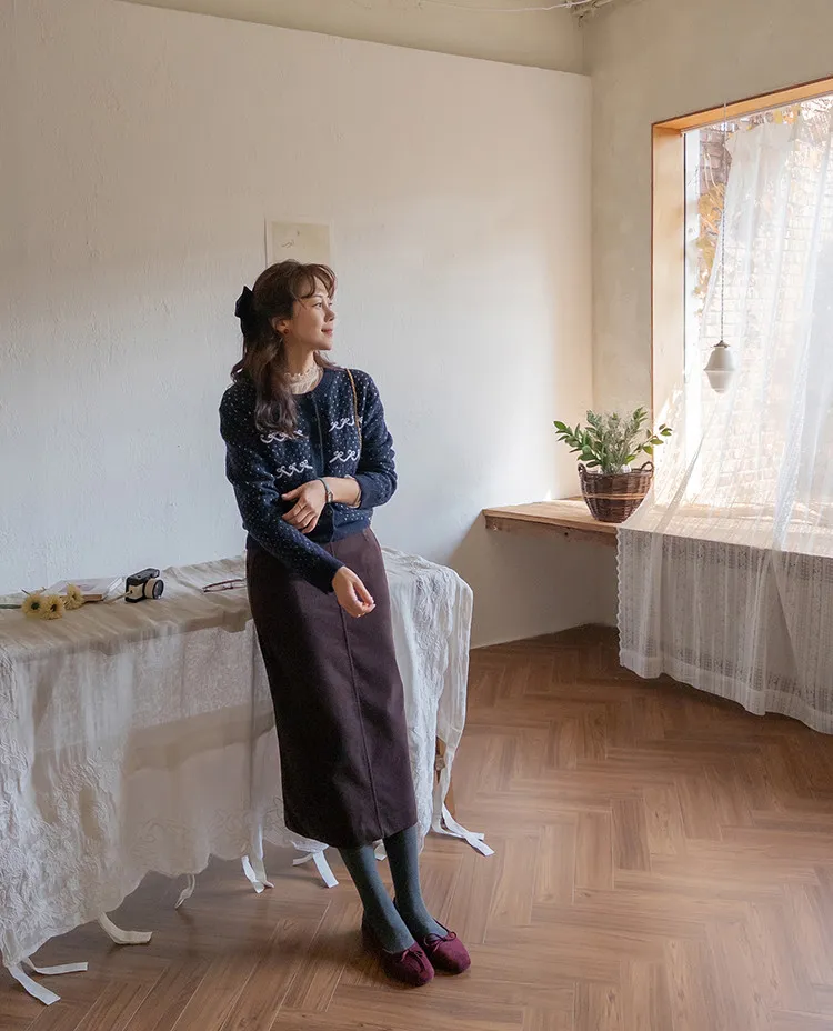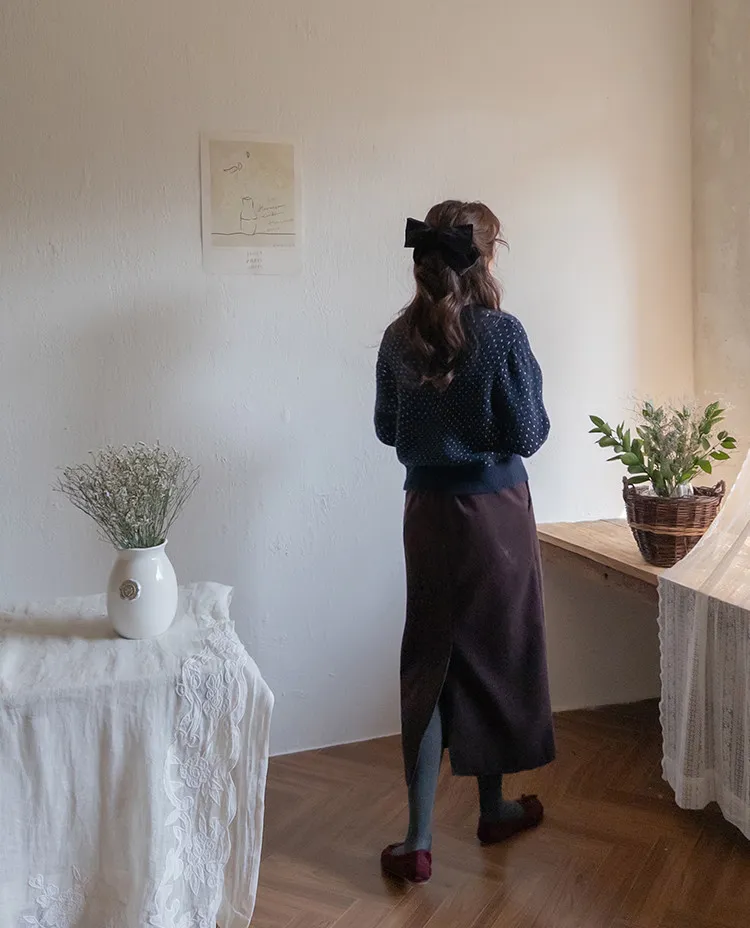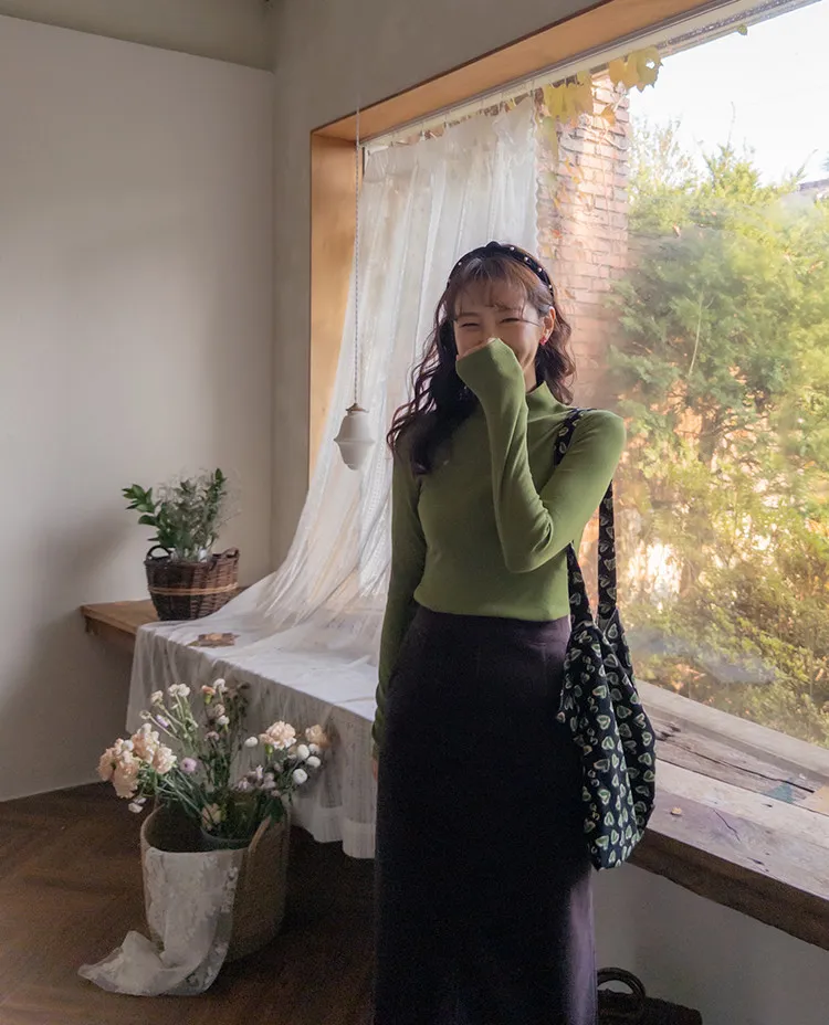 舒適羅紋修身版型H剪裁後開衩中長裙