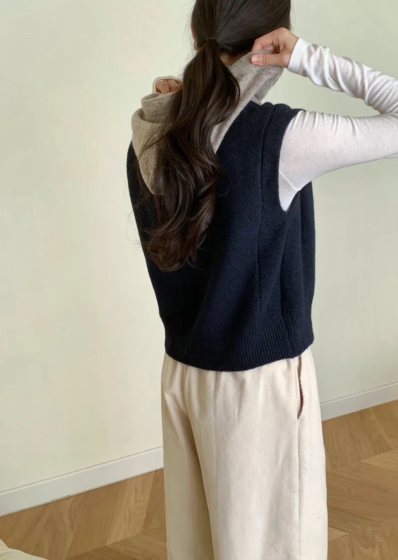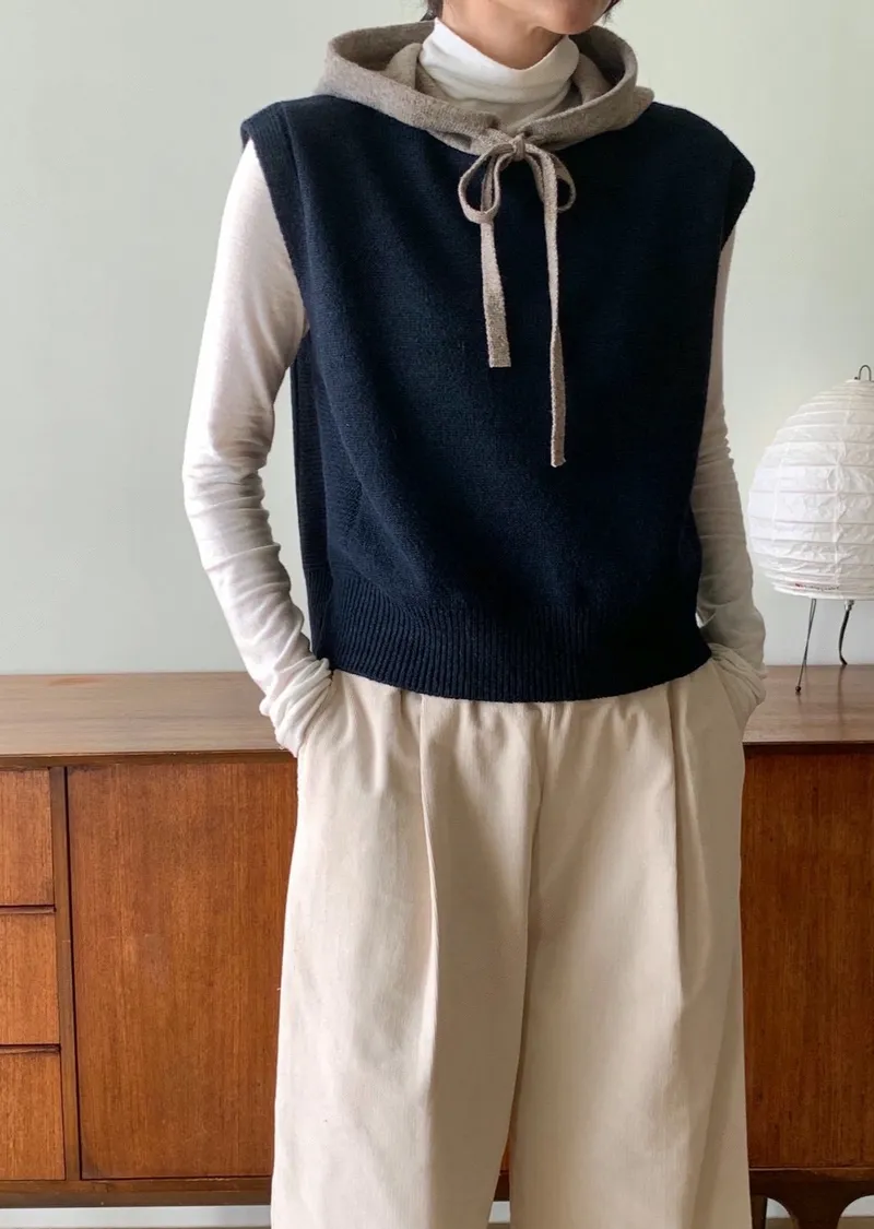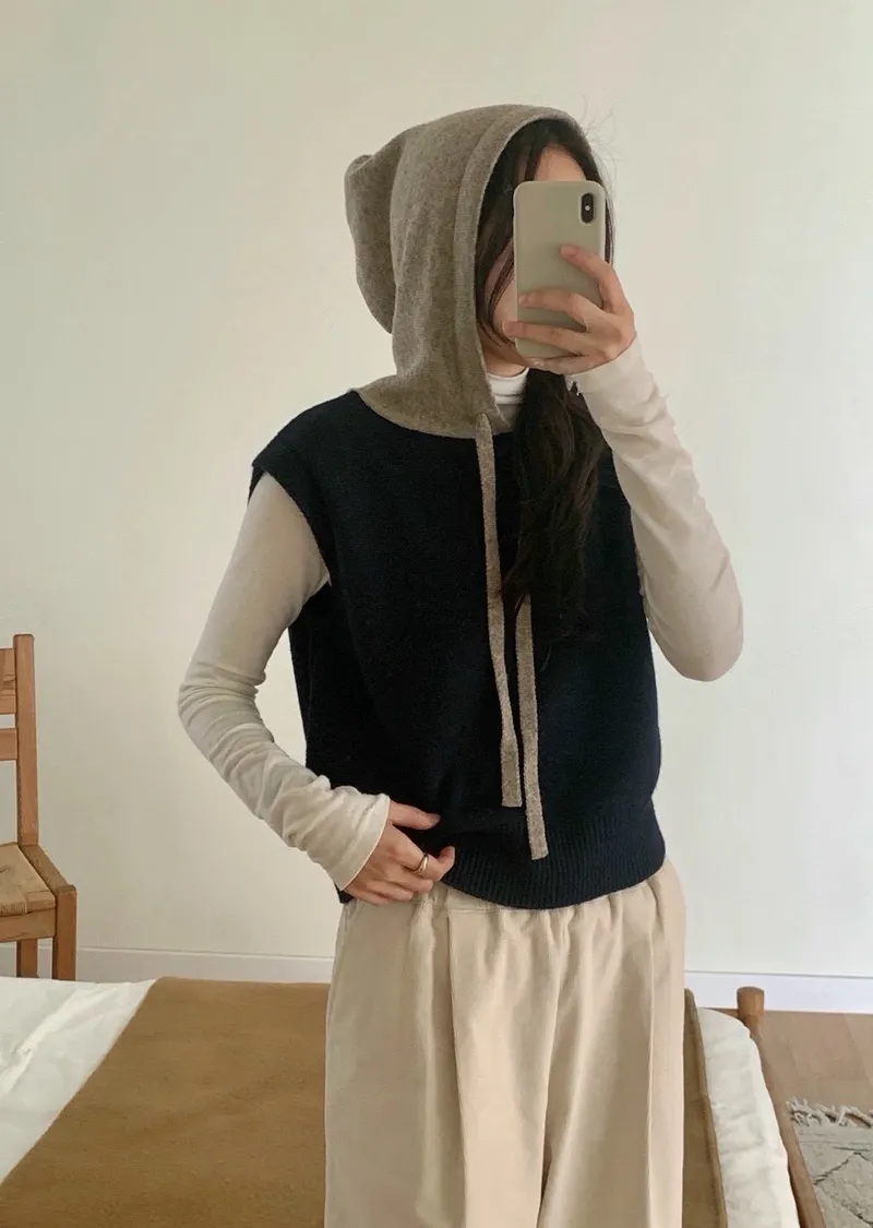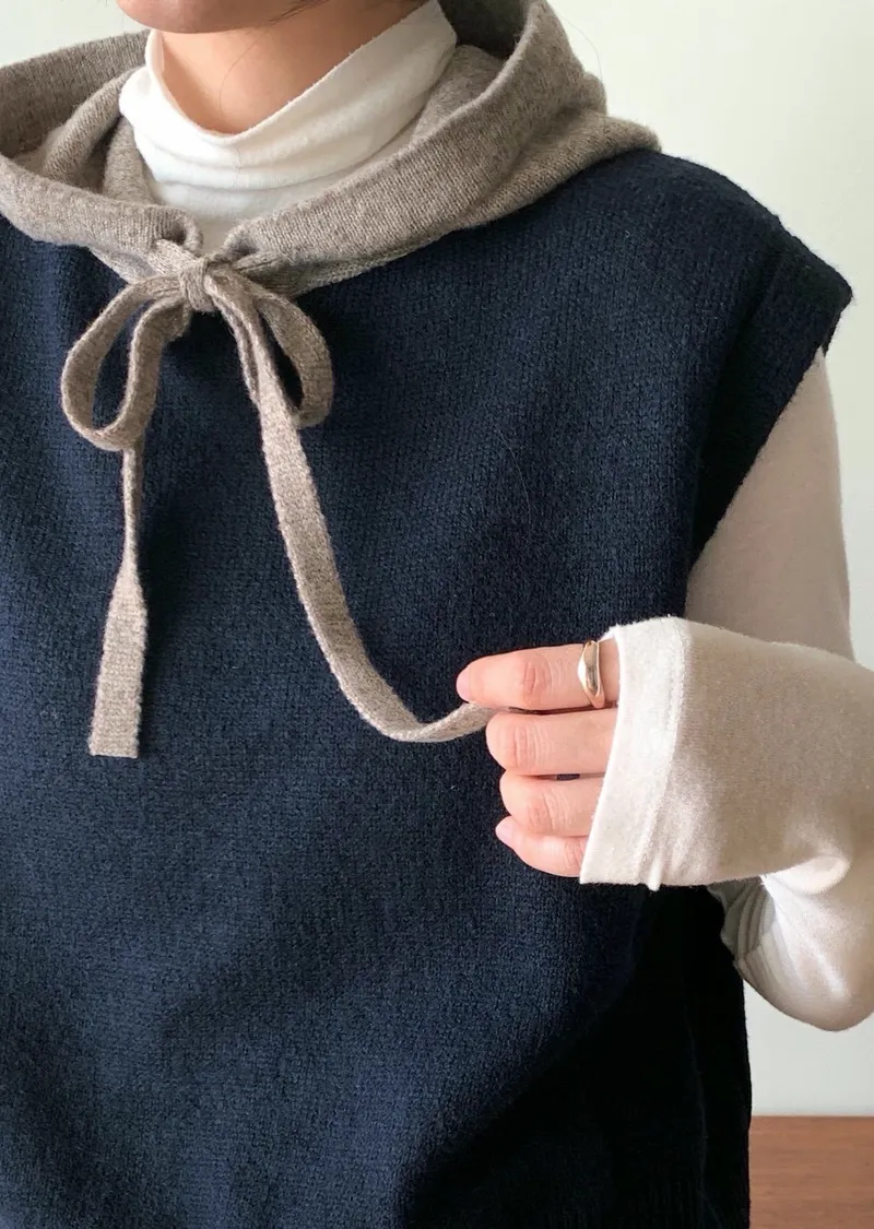 可愛疊穿配色連帽針織背心