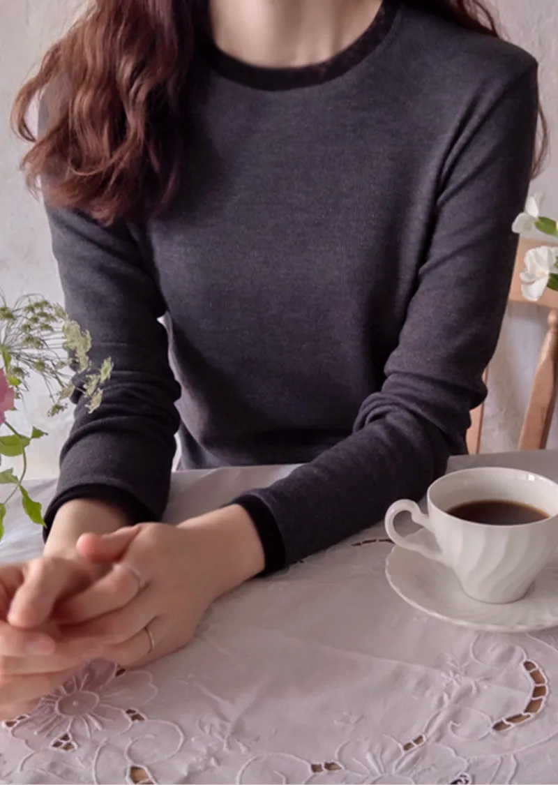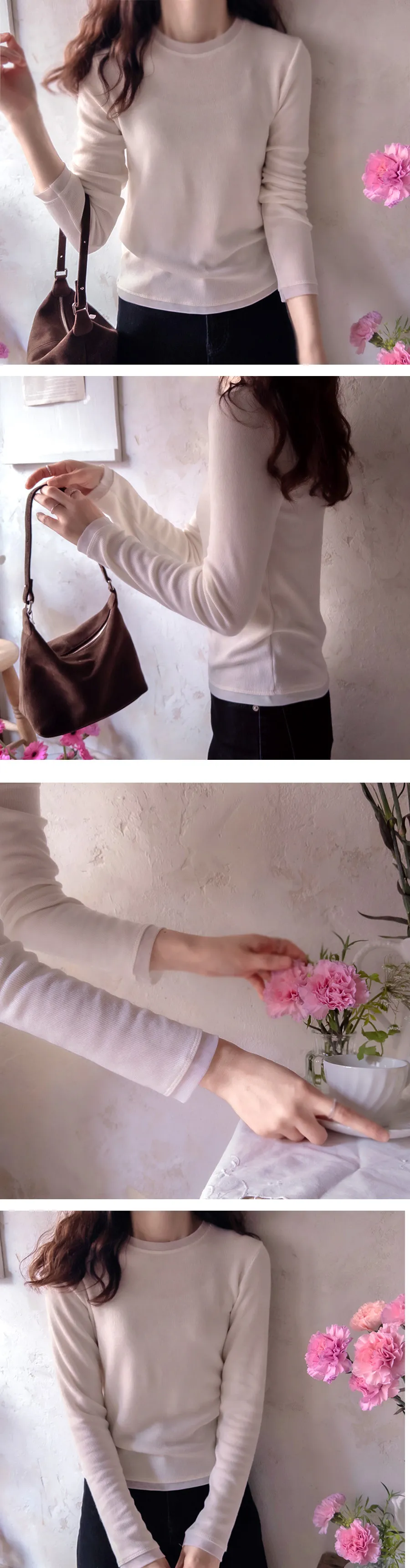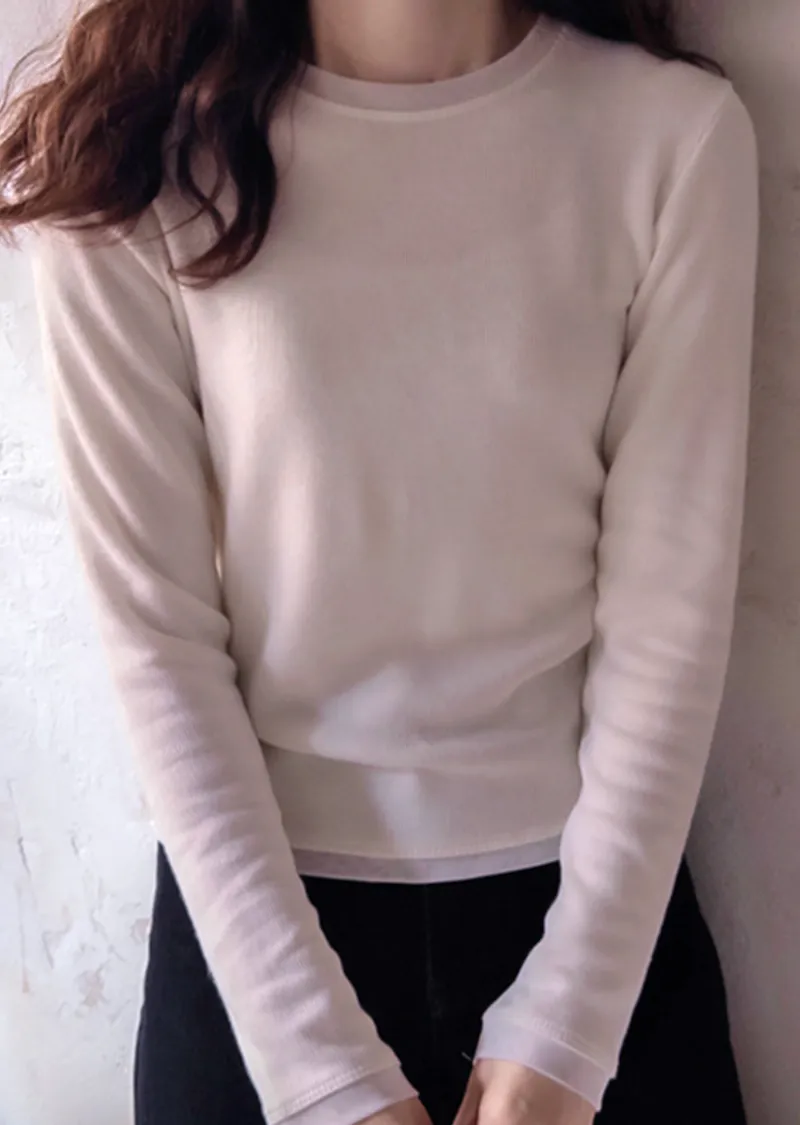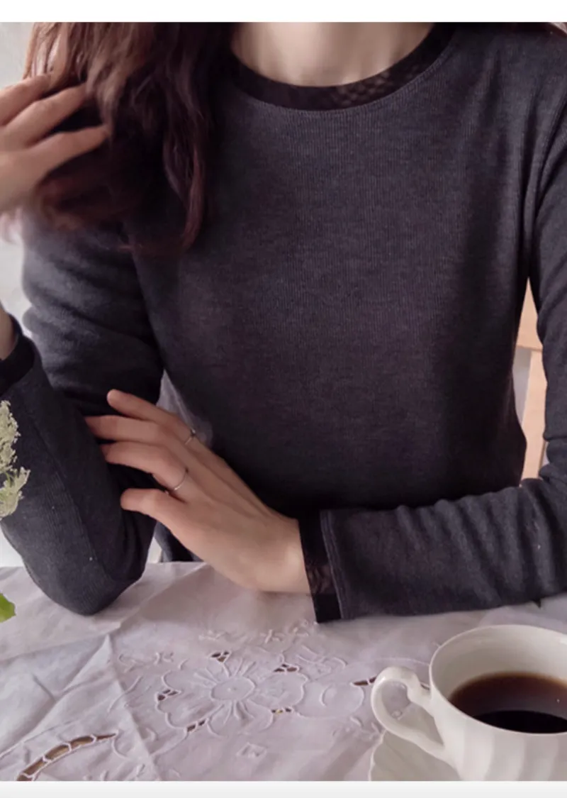 漂亮領口袖末網眼點綴保暖舒適上衣