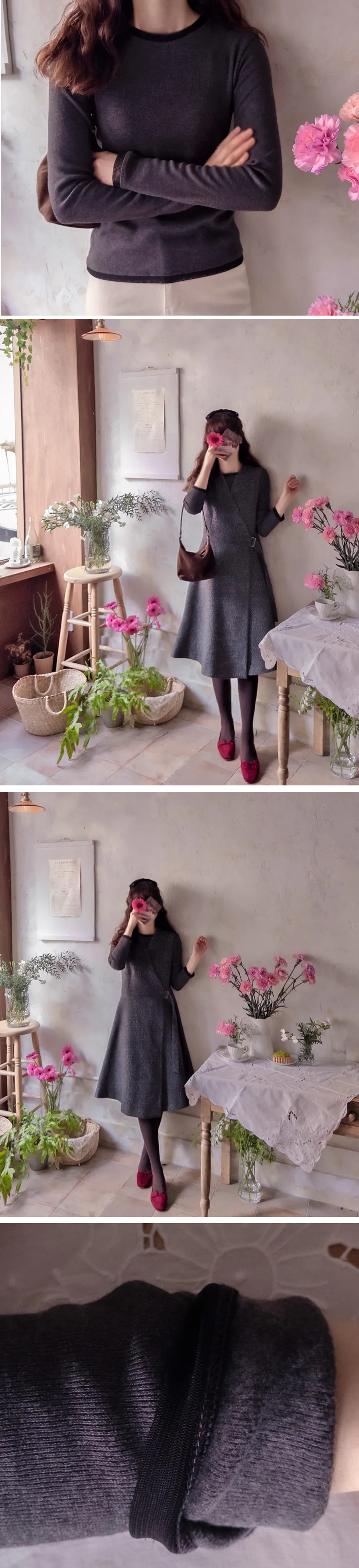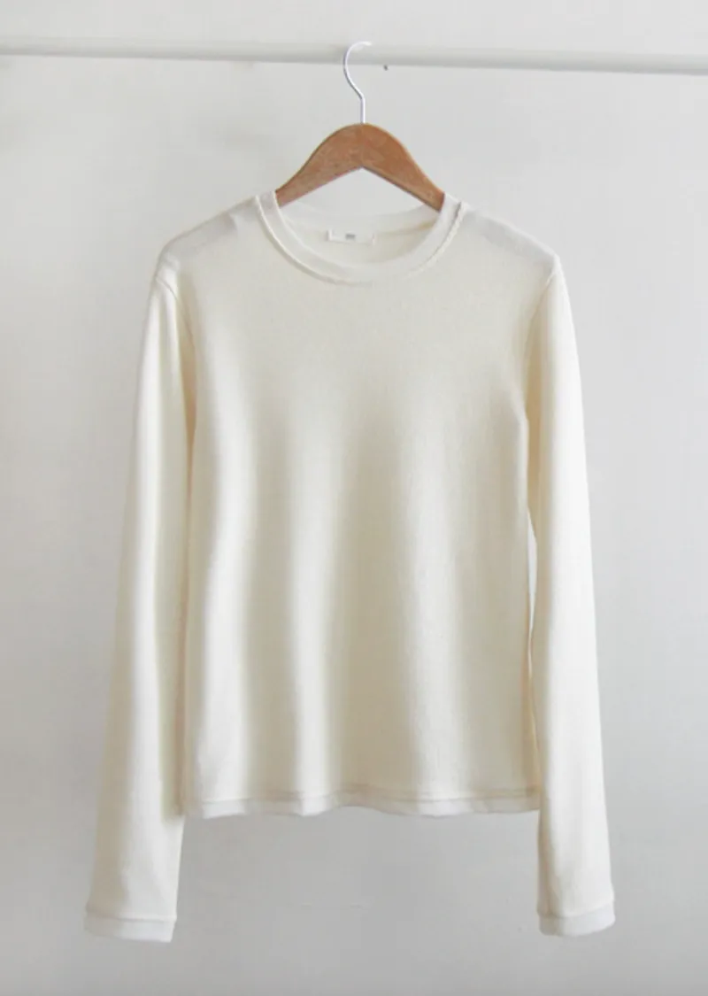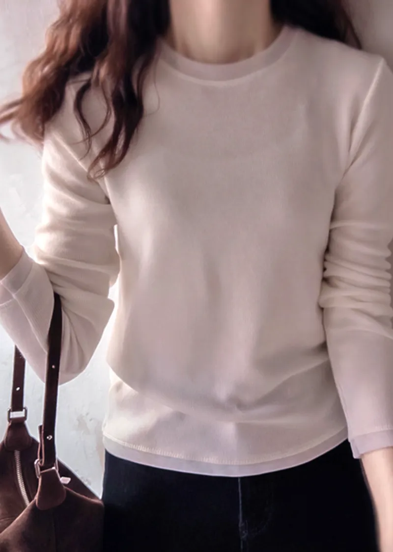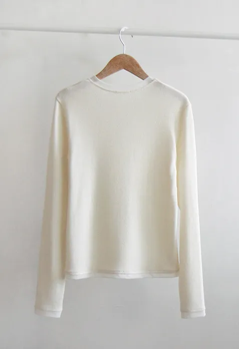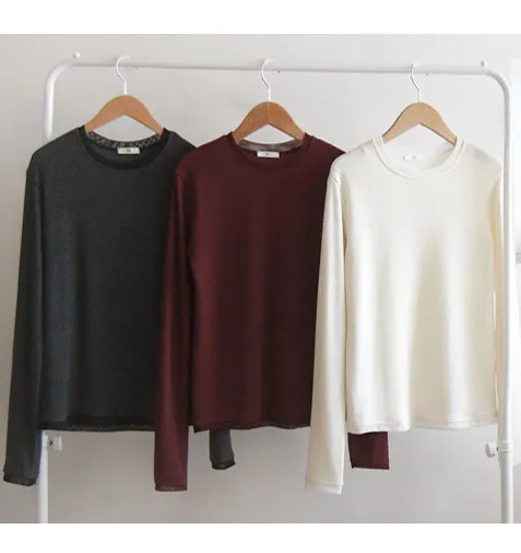 漂亮領口袖末網眼點綴保暖舒適上衣