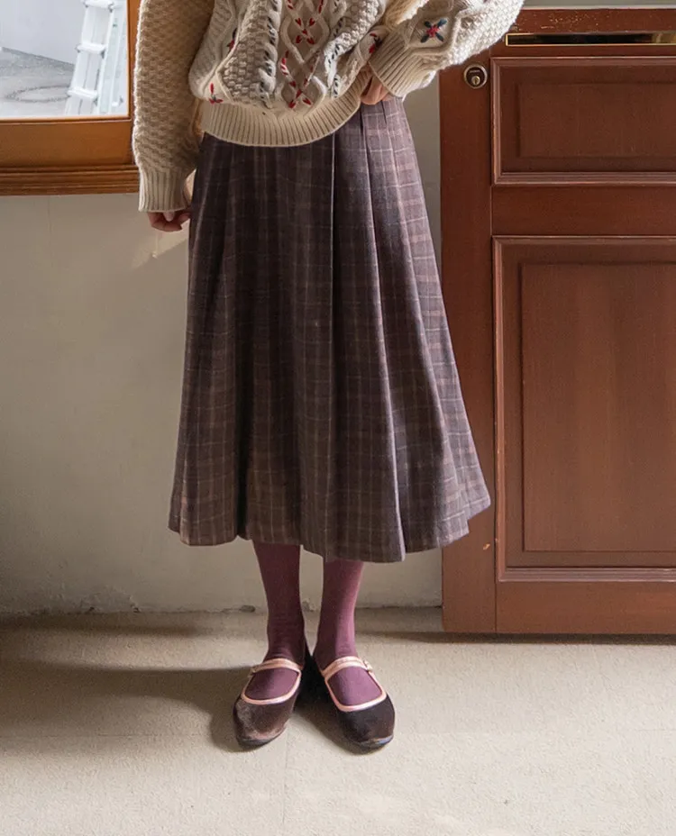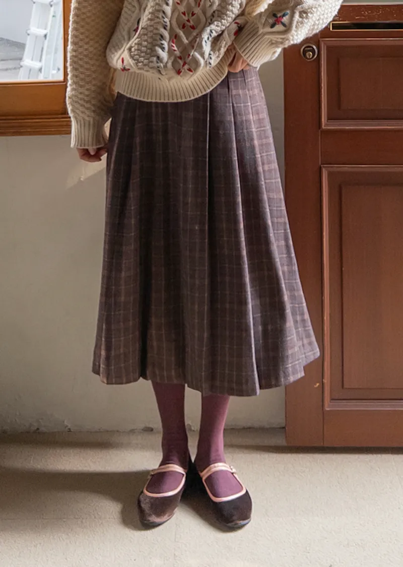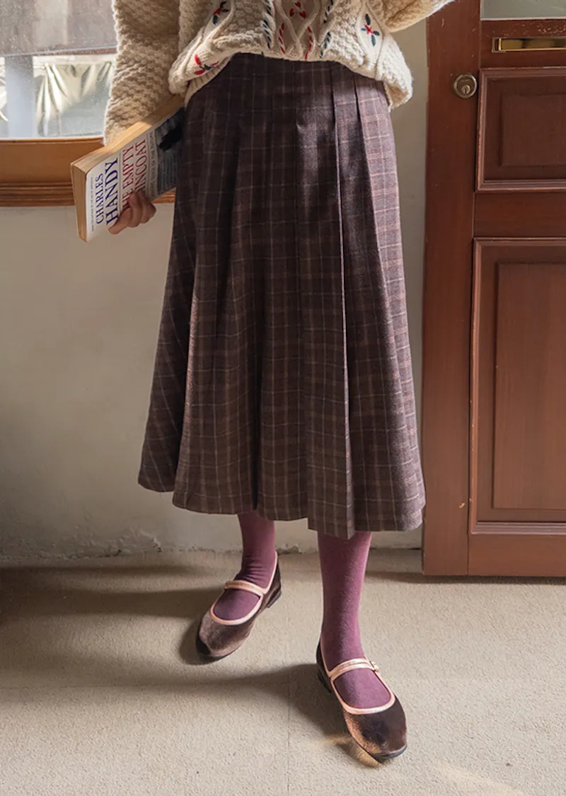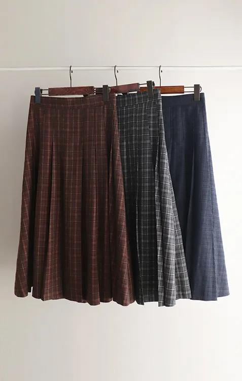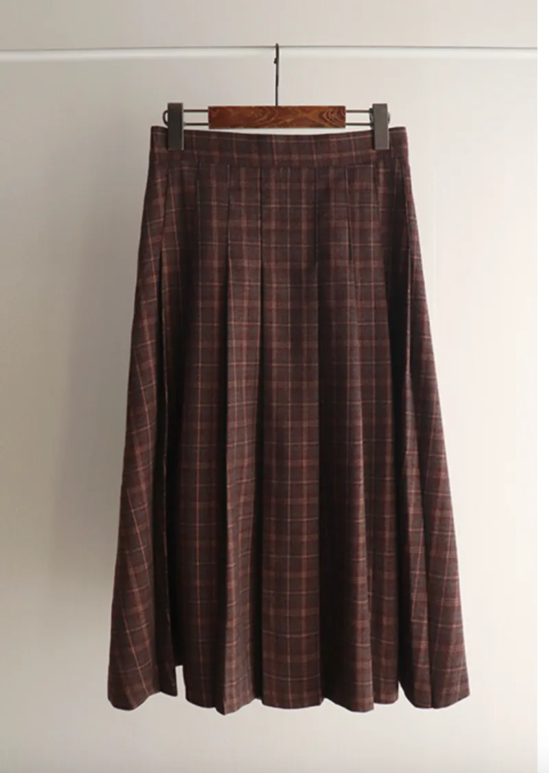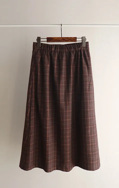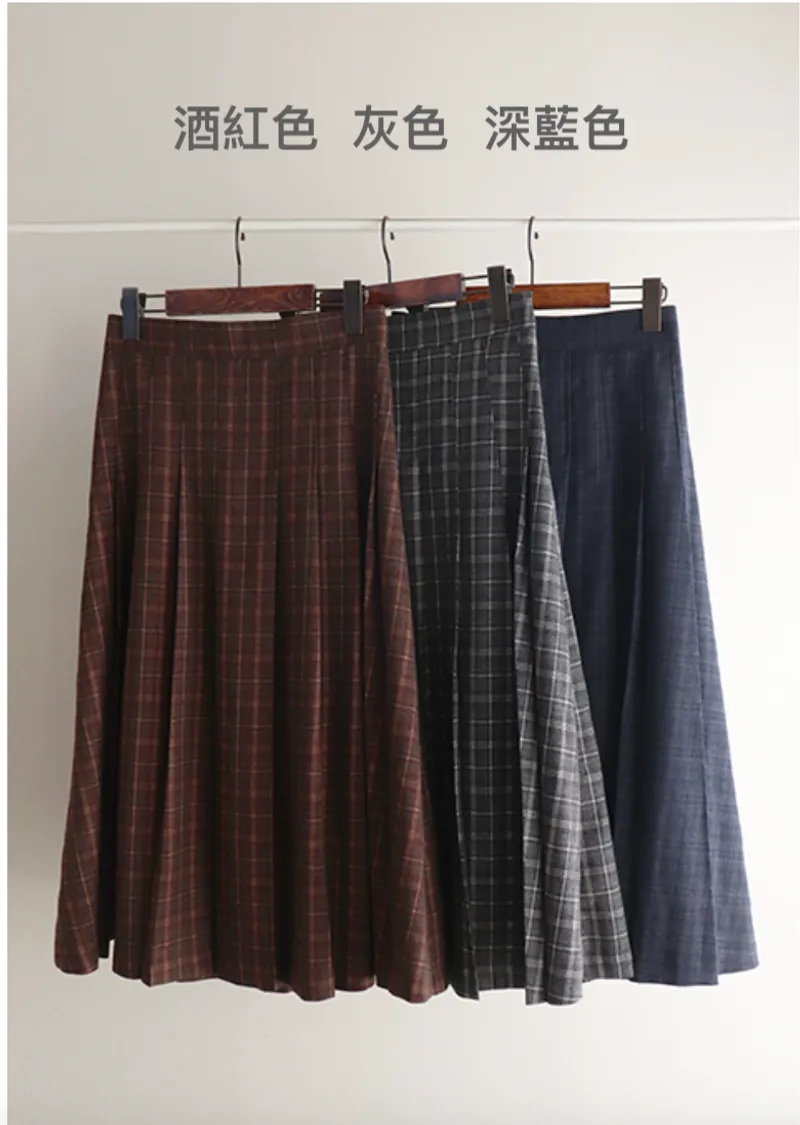 【一款顏色沉穩百搭的格紋裙♡】【百搭單品,輕鬆駕馭各種造型~♬】【厚實加長的裙擺,即使在冬天也能保暖♨】【彈性腰帶,穿著舒適】