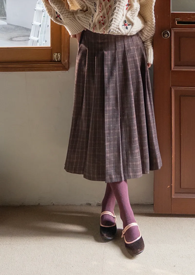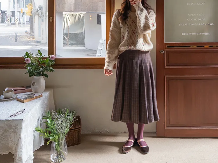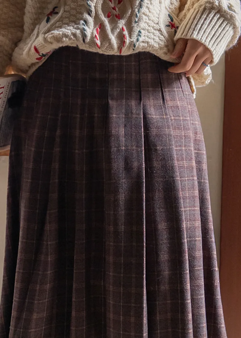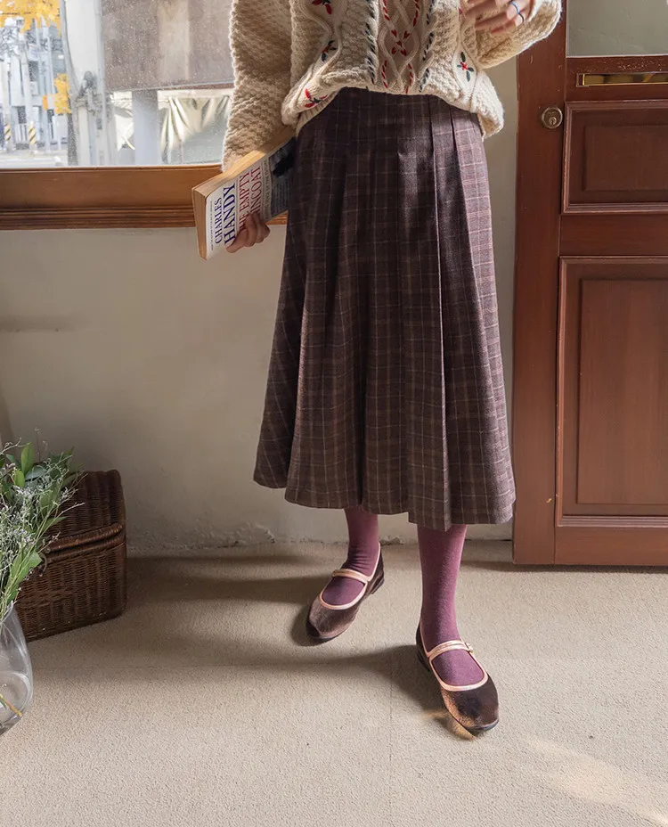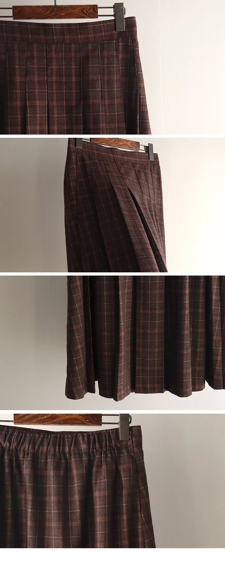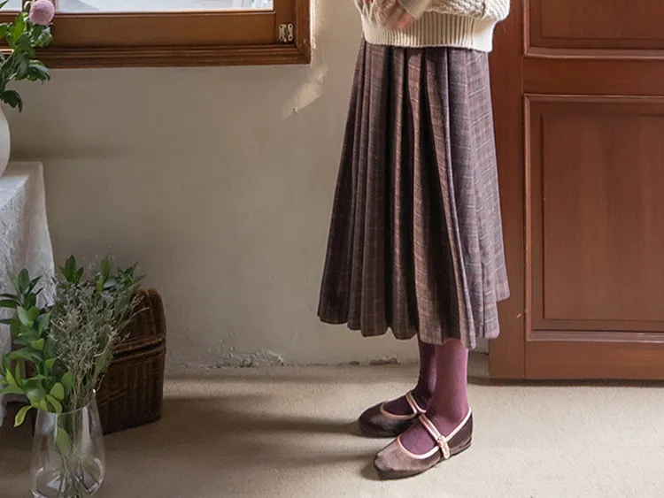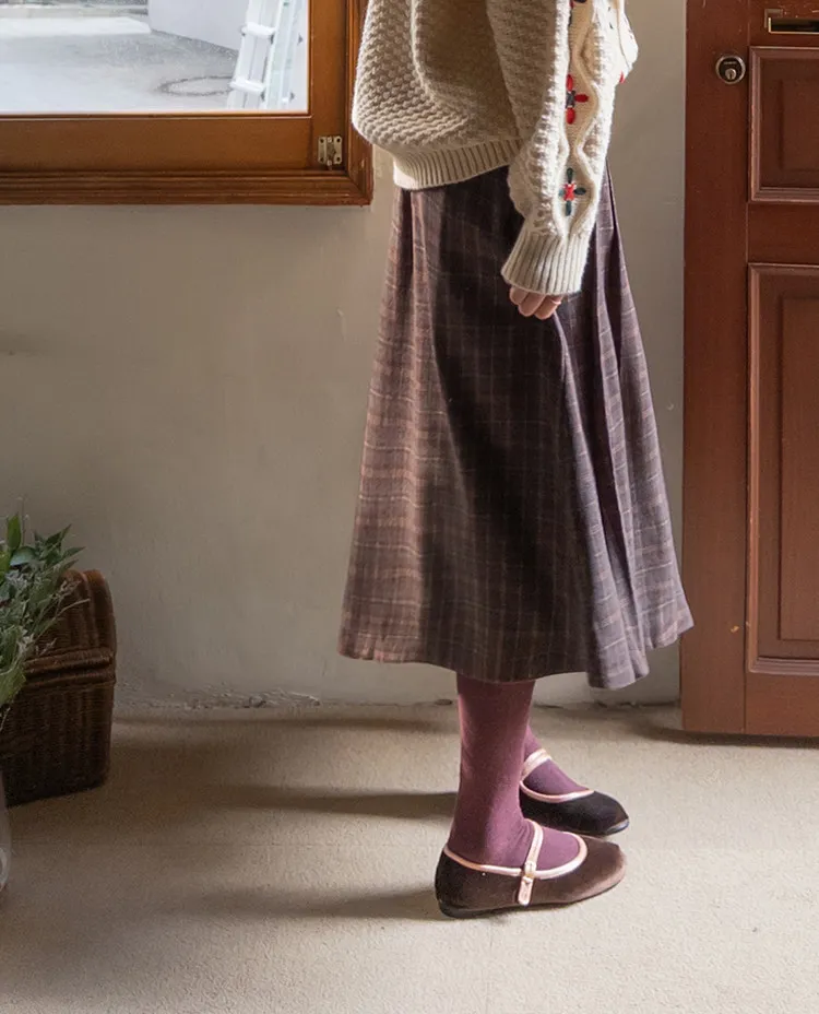 【一款顏色沉穩百搭的格紋裙♡】【百搭單品,輕鬆駕馭各種造型~♬】【厚實加長的裙擺,即使在冬天也能保暖♨】【彈性腰帶,穿著舒適】