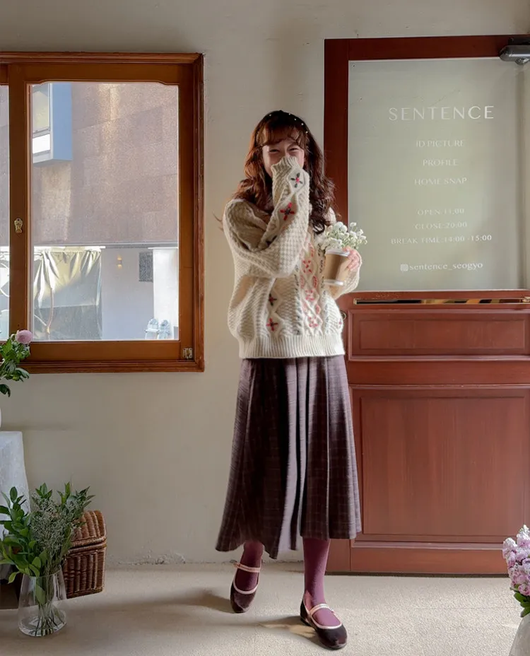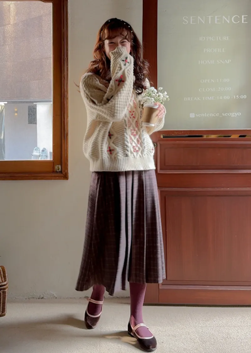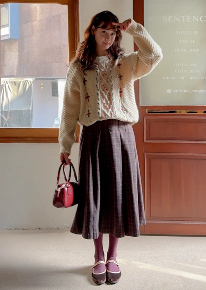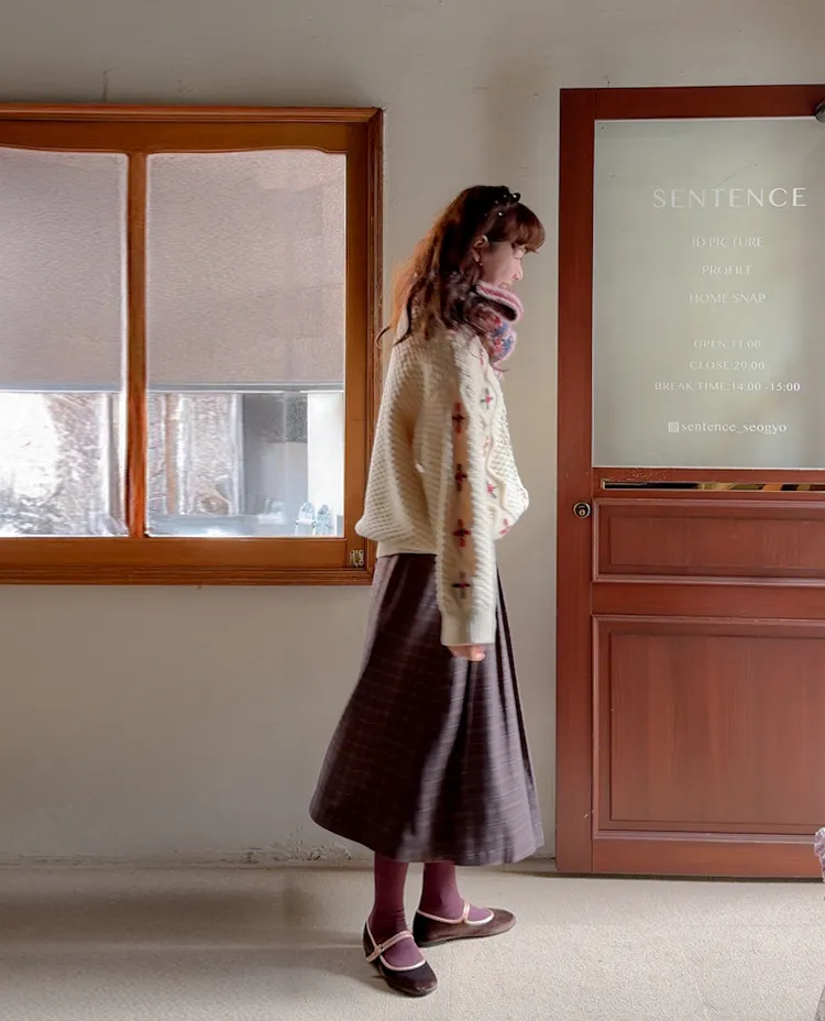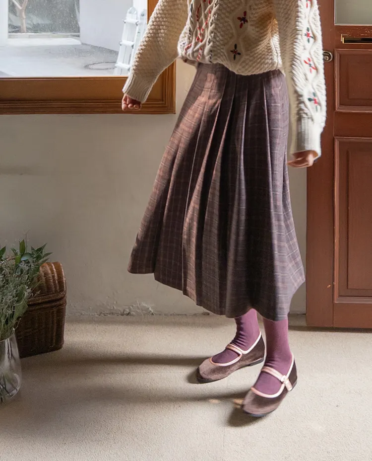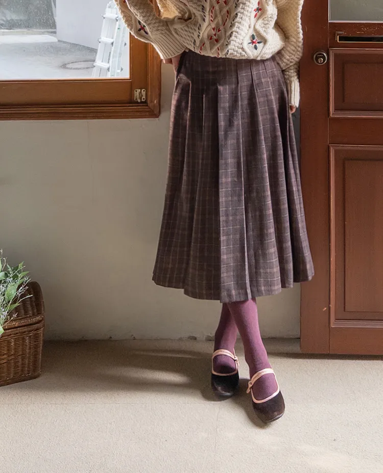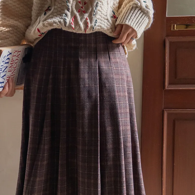 【一款顏色沉穩百搭的格紋裙♡】【百搭單品,輕鬆駕馭各種造型~♬】【厚實加長的裙擺,即使在冬天也能保暖♨】【彈性腰帶,穿著舒適】