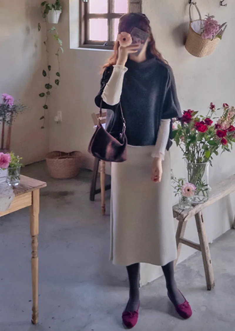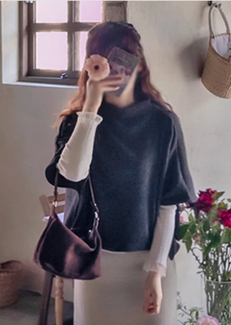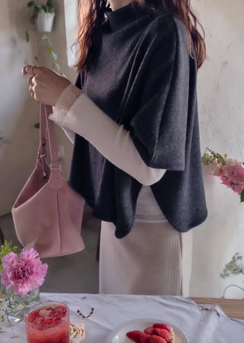 輕柔垂墜半高領穿搭披肩