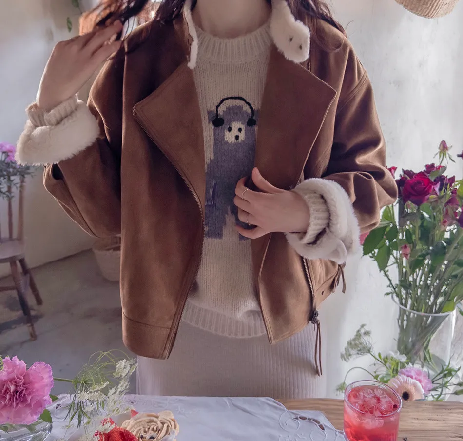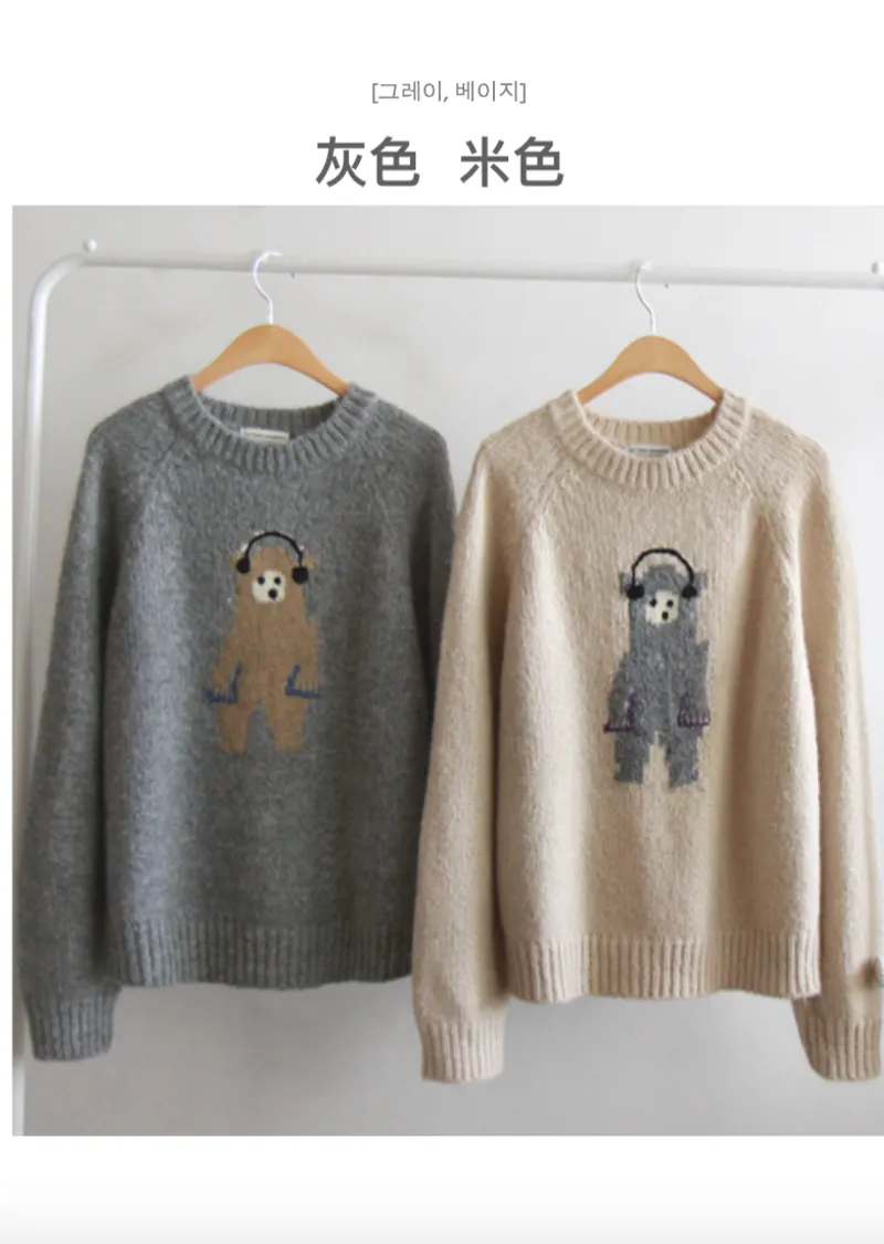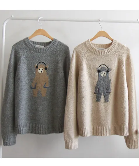 保暖舒適可愛小熊柔軟彈性針織上衣