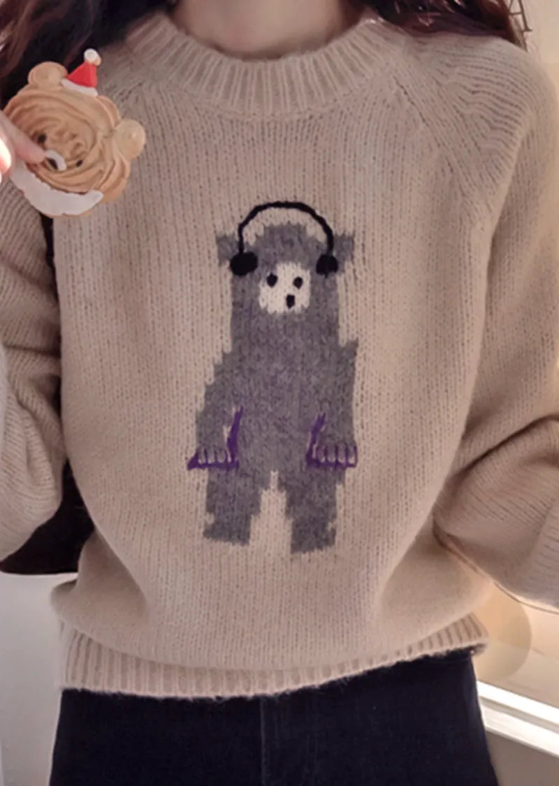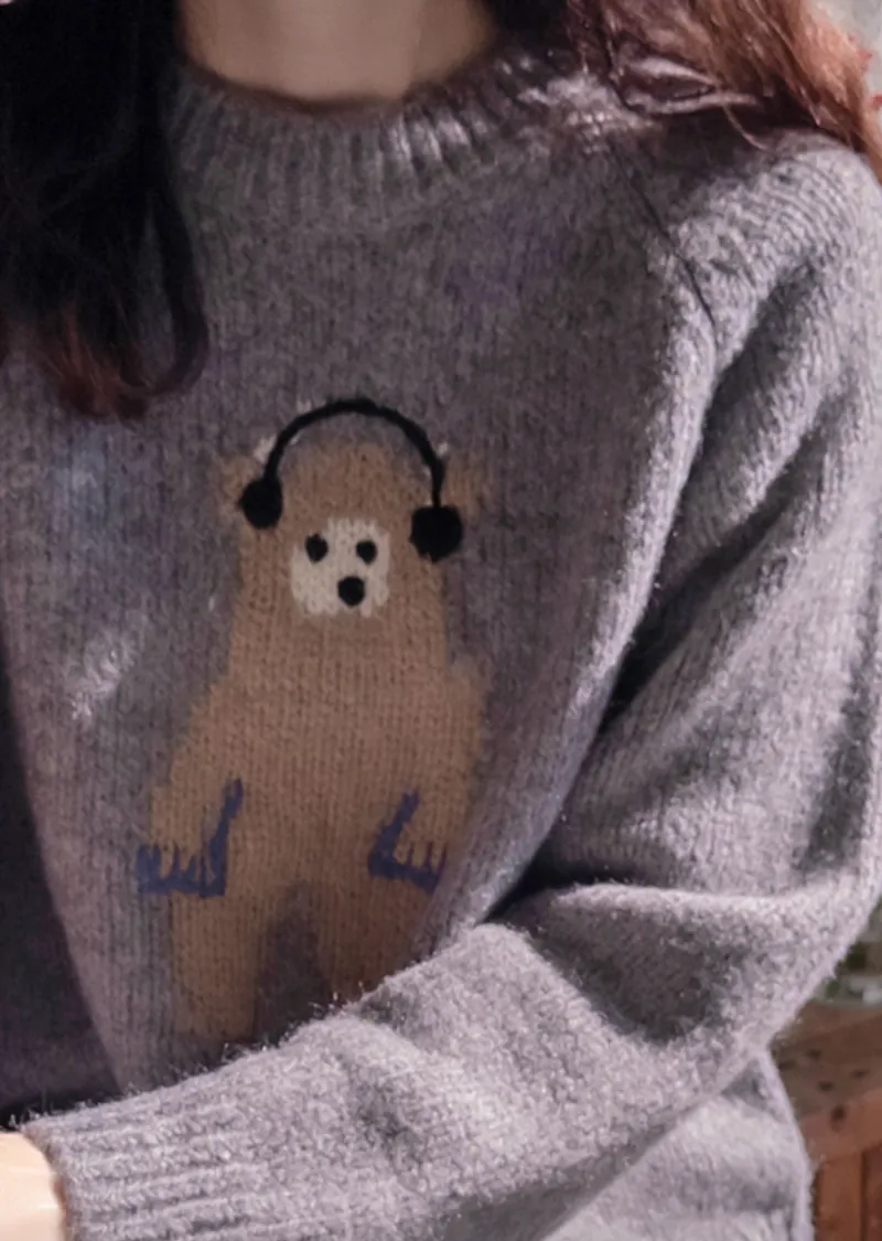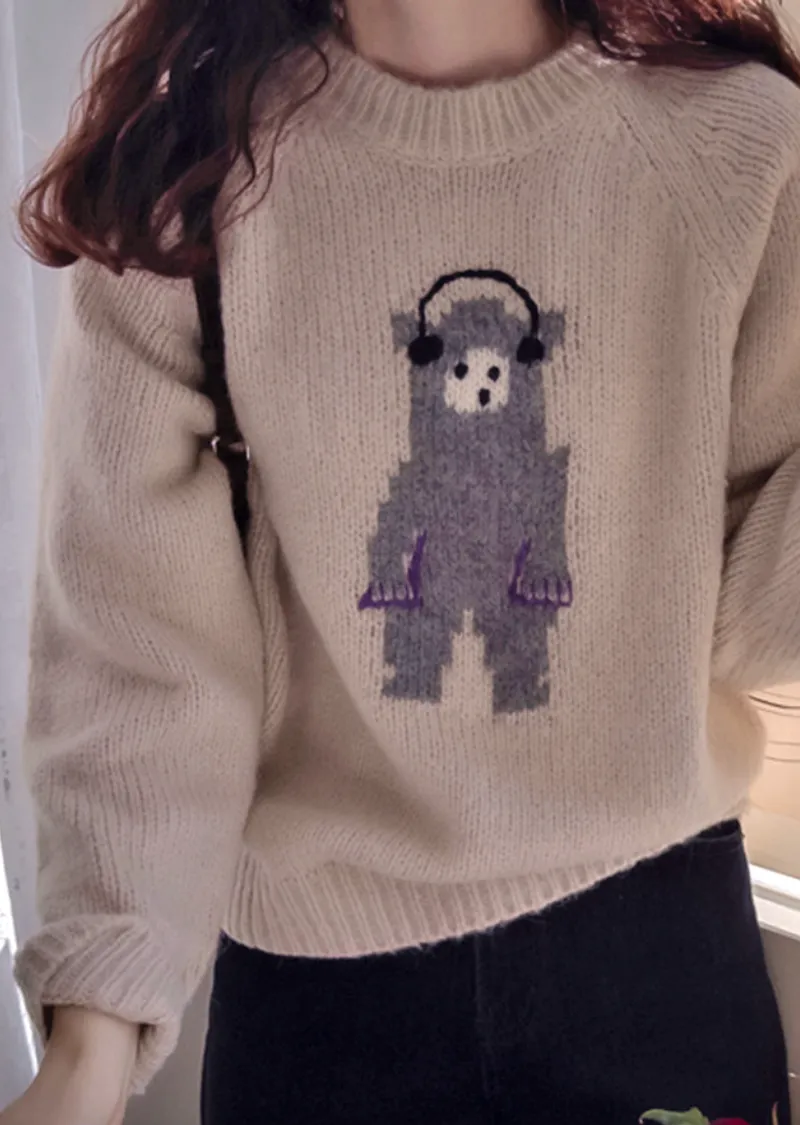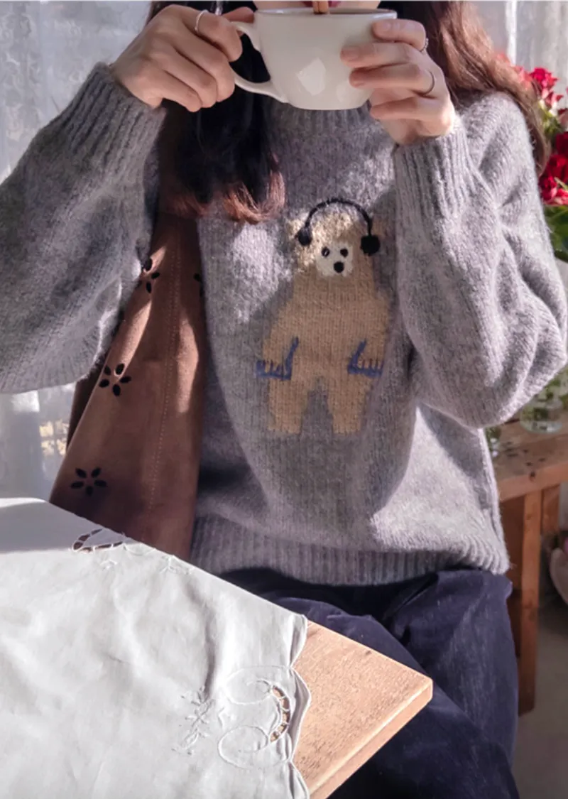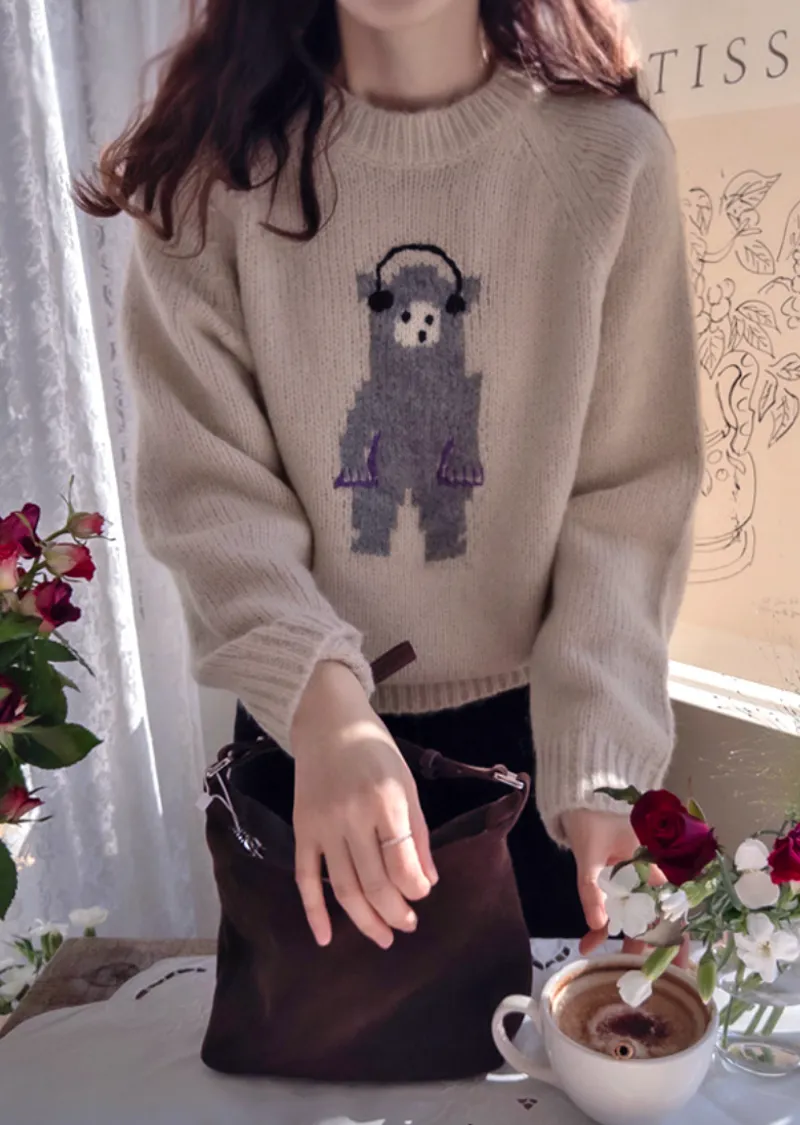 【含70%羊毛】【柔軟彈性針織】【色調非常漂亮】【可愛的小熊圖案,點綴完美,搭配外套,更顯時尚】【修身剪裁,完美針織】【保暖舒適,日常穿著的理想之選】