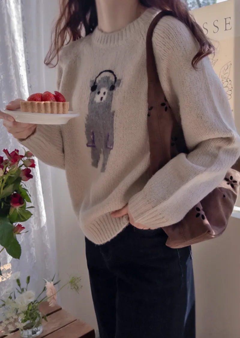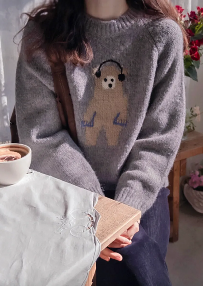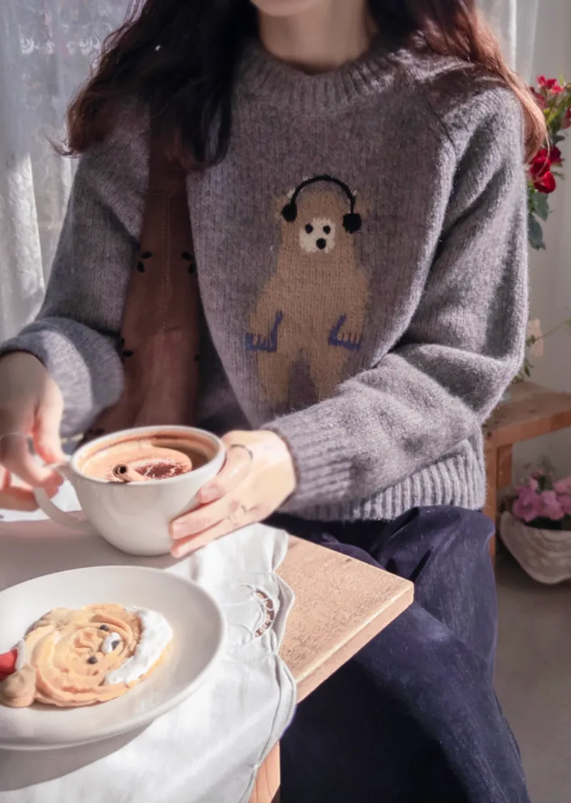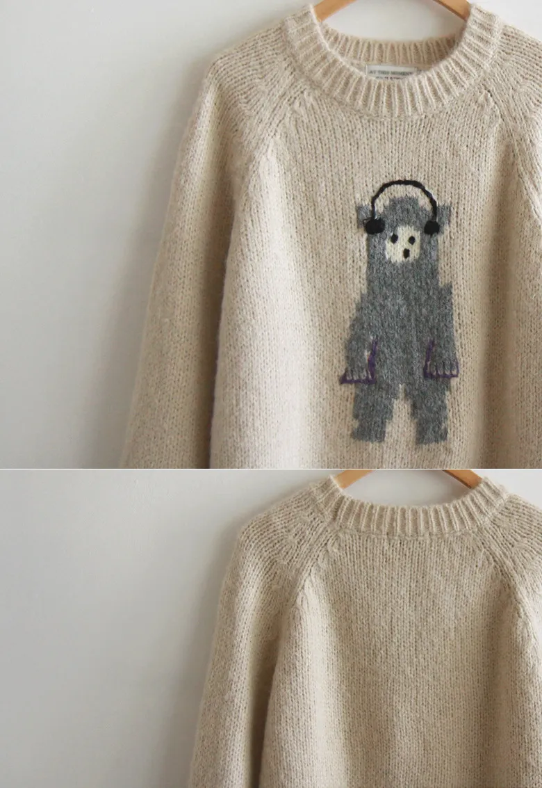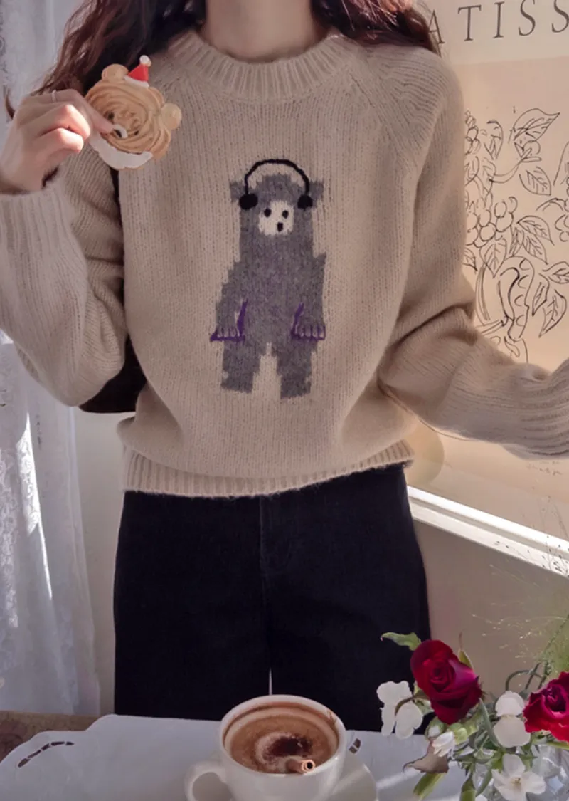 【含70%羊毛】【柔軟彈性針織】【色調非常漂亮】【可愛的小熊圖案,點綴完美,搭配外套,更顯時尚】【修身剪裁,完美針織】【保暖舒適,日常穿著的理想之選】