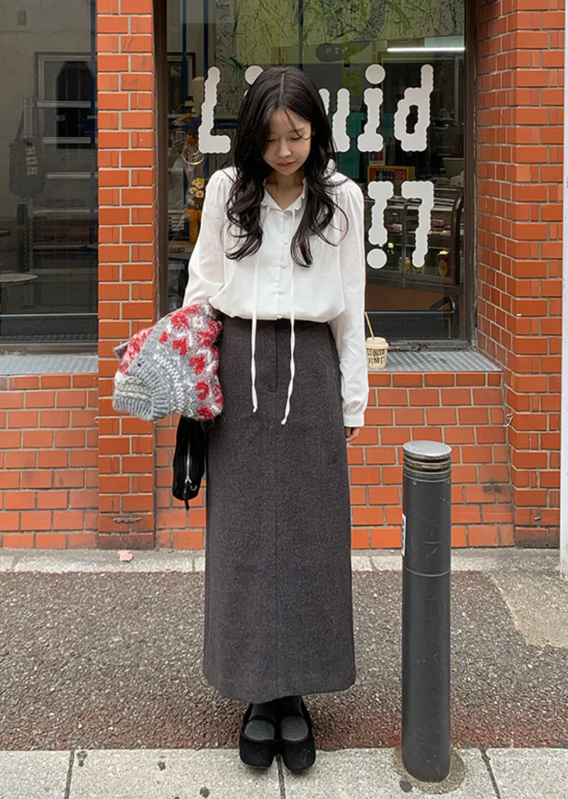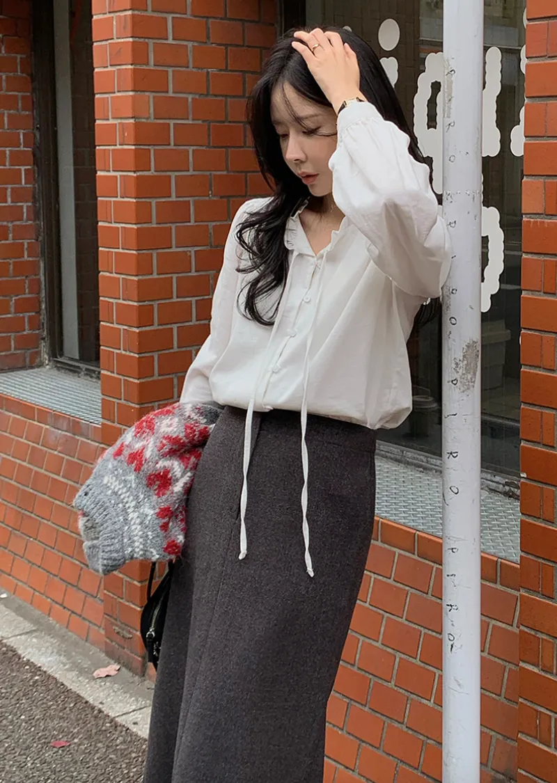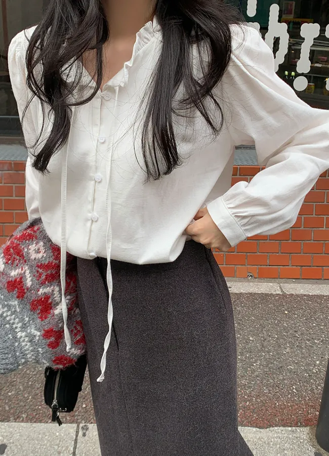 柔美摺邊領口自然隨性綁帶排扣上衣
