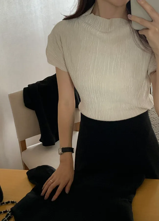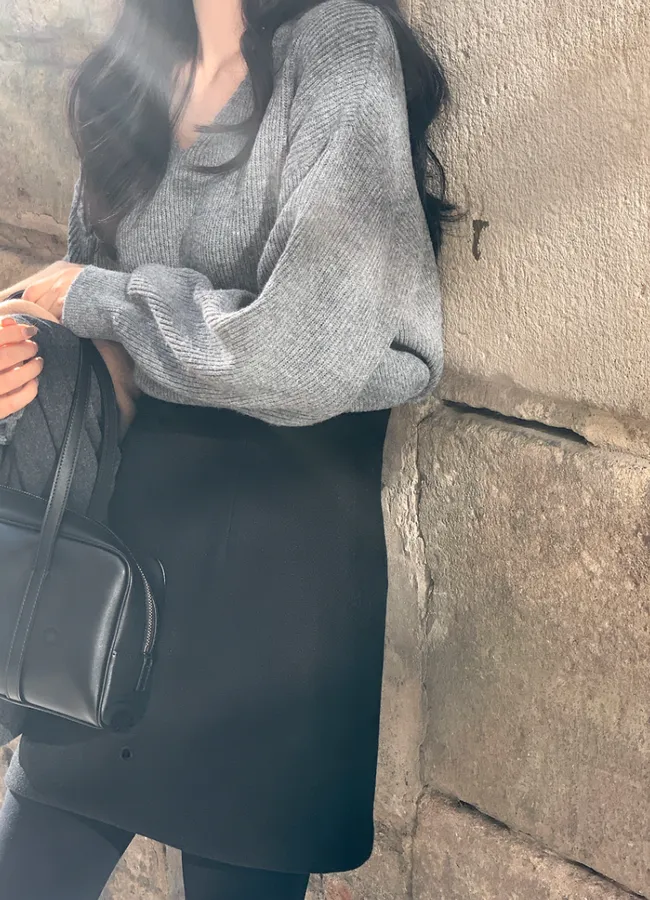 獨特魅力不對稱肩部剪裁方領針織上衣