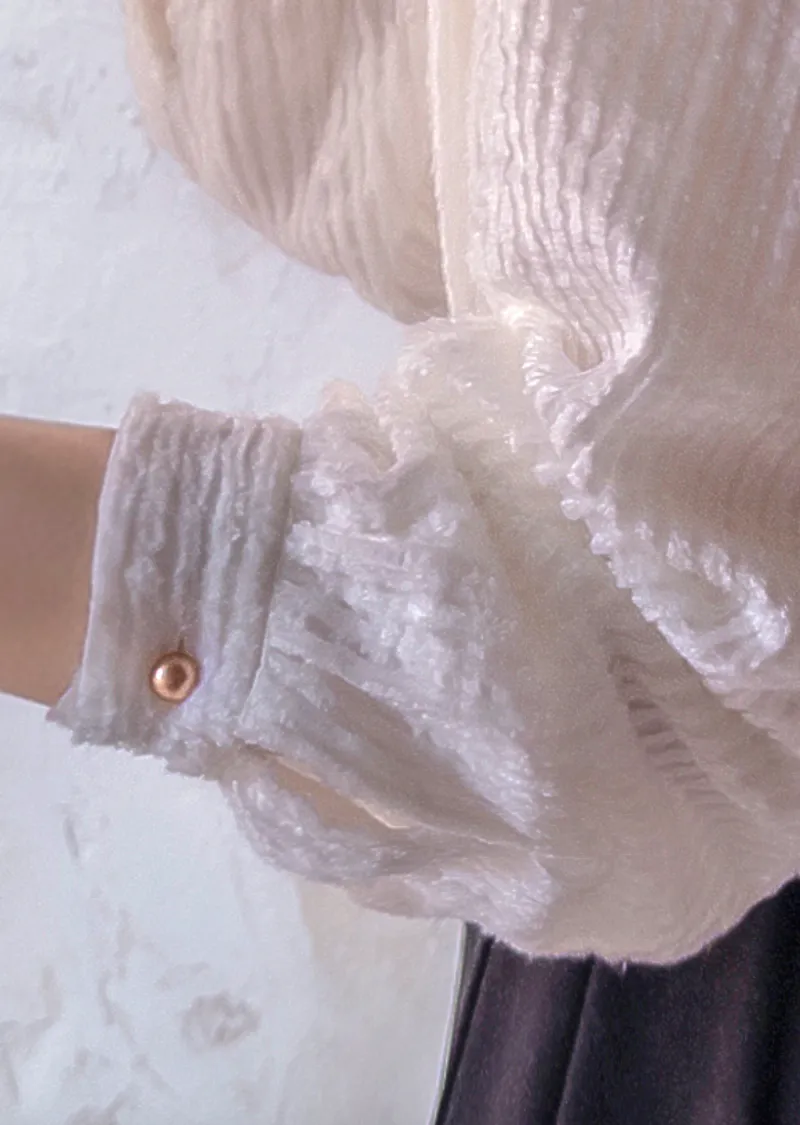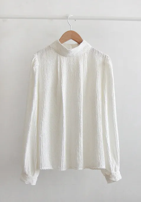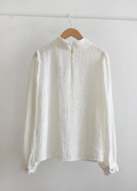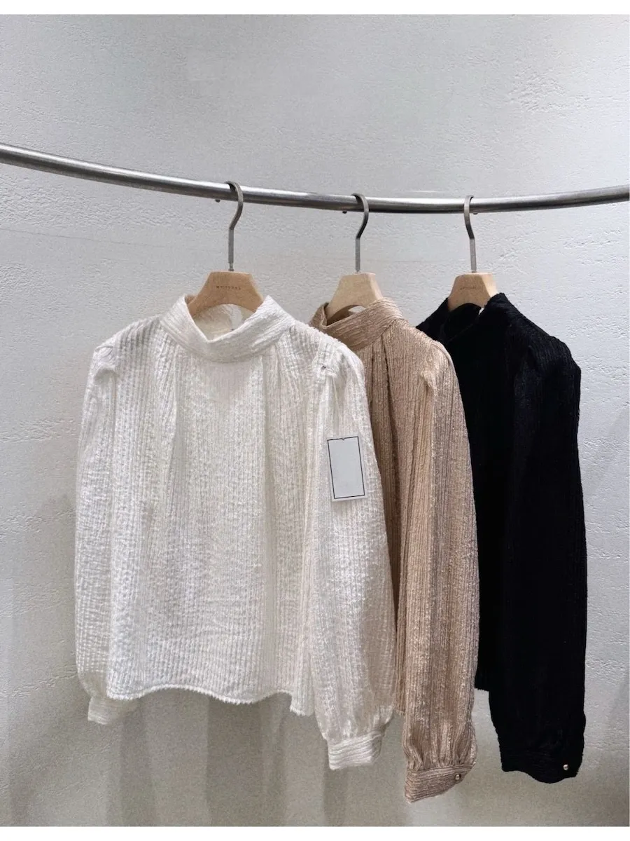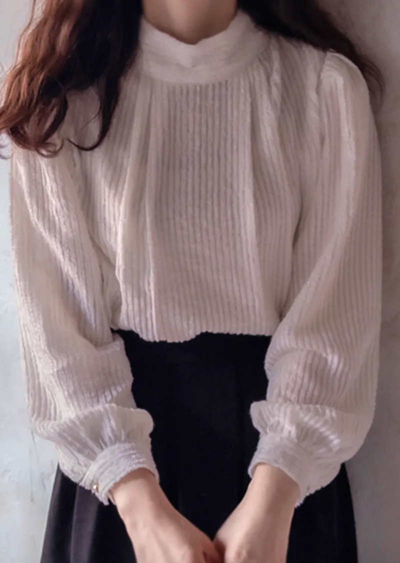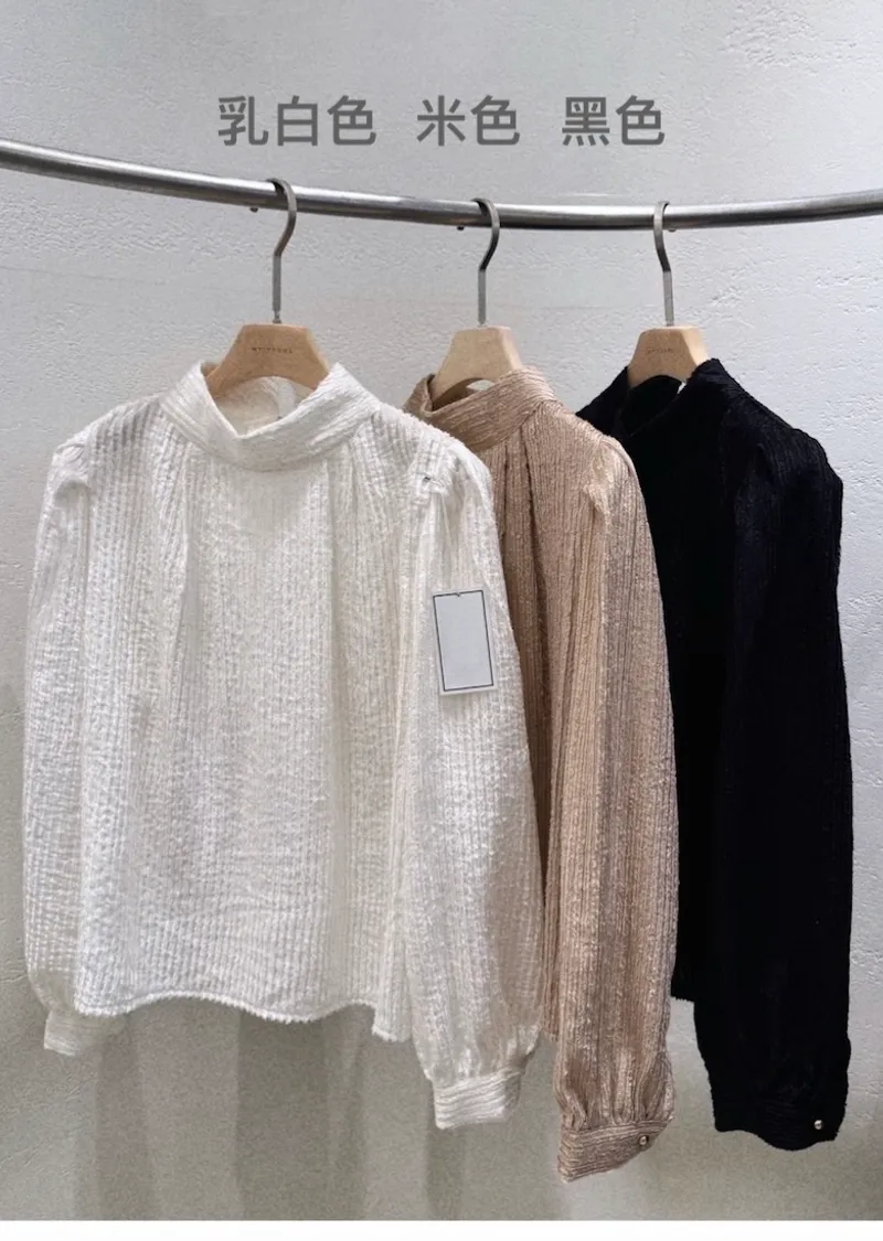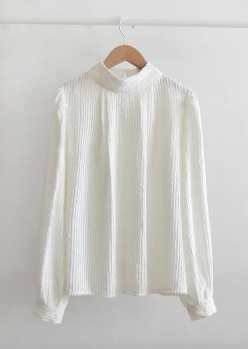【飾以精緻純淨的豎條紋絲絨圖案上衣】【採用半極性面料,面料本身的特性營造出柔美氣質】【袖口鈕扣設計亦為亮點】【寬鬆舒適的版型,打造完美搭配】【是一款適合換季穿著的百搭絲絨上衣】