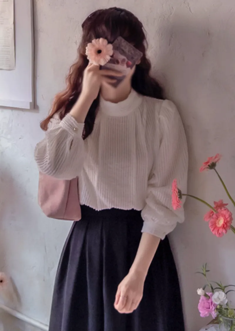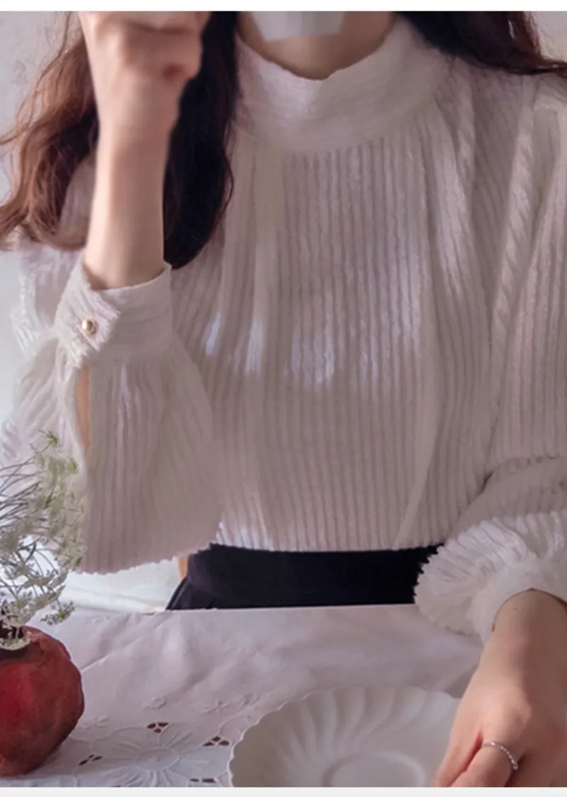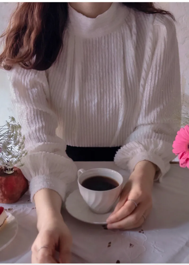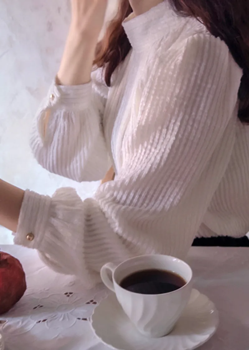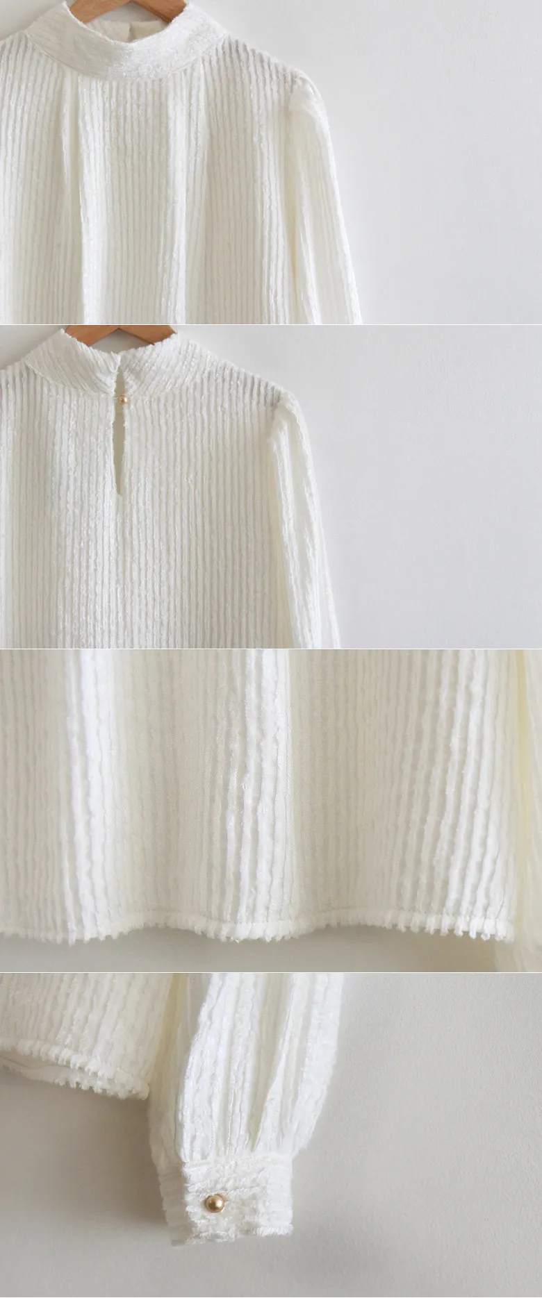 【飾以精緻純淨的豎條紋絲絨圖案上衣】【採用半極性面料,面料本身的特性營造出柔美氣質】【袖口鈕扣設計亦為亮點】【寬鬆舒適的版型,打造完美搭配】【是一款適合換季穿著的百搭絲絨上衣】