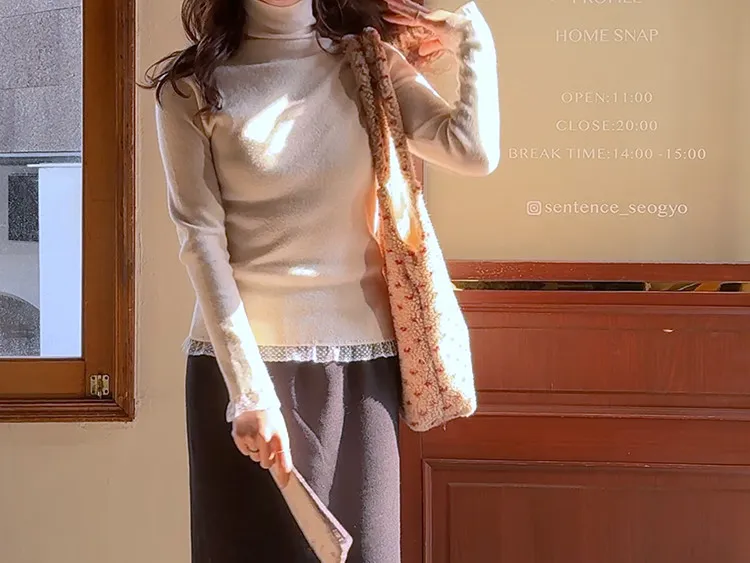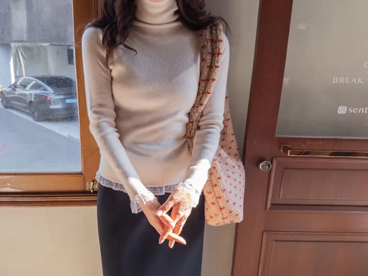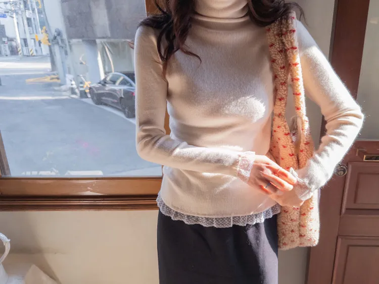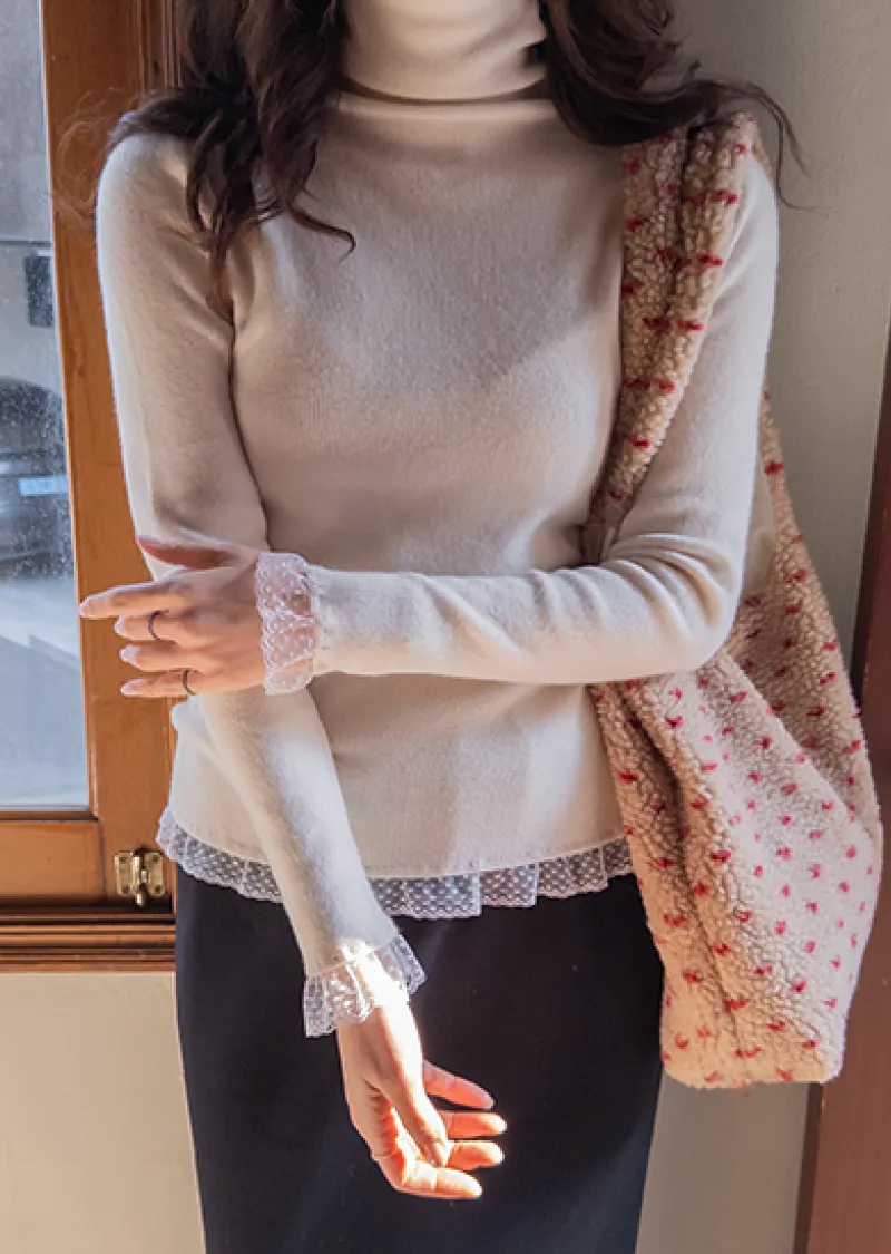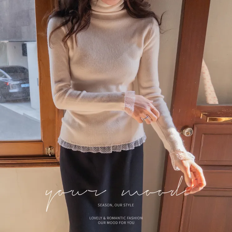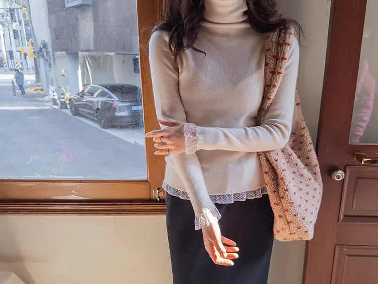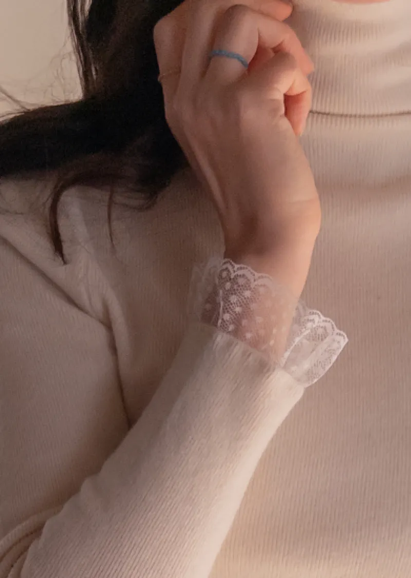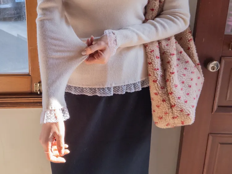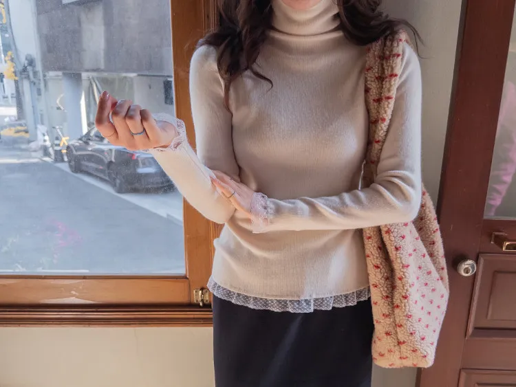 柔美點綴末端蕾絲柔軟保暖上衣