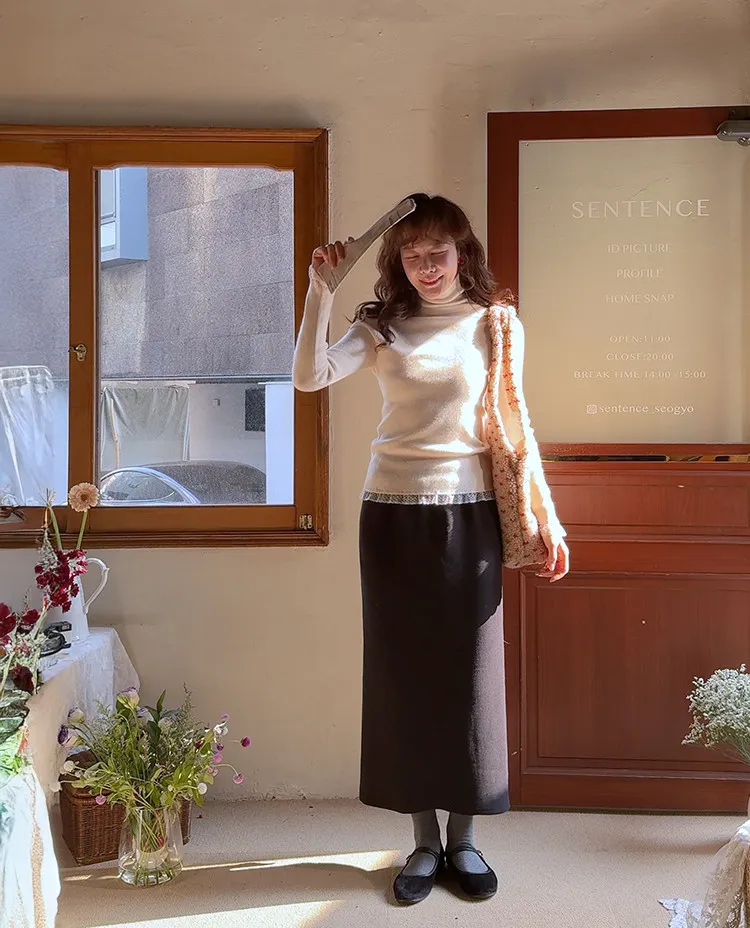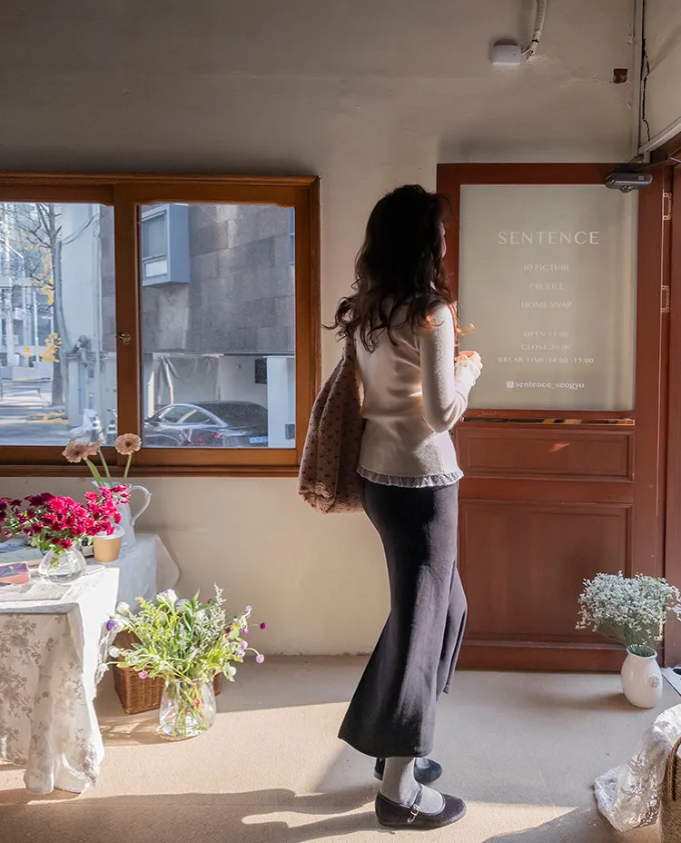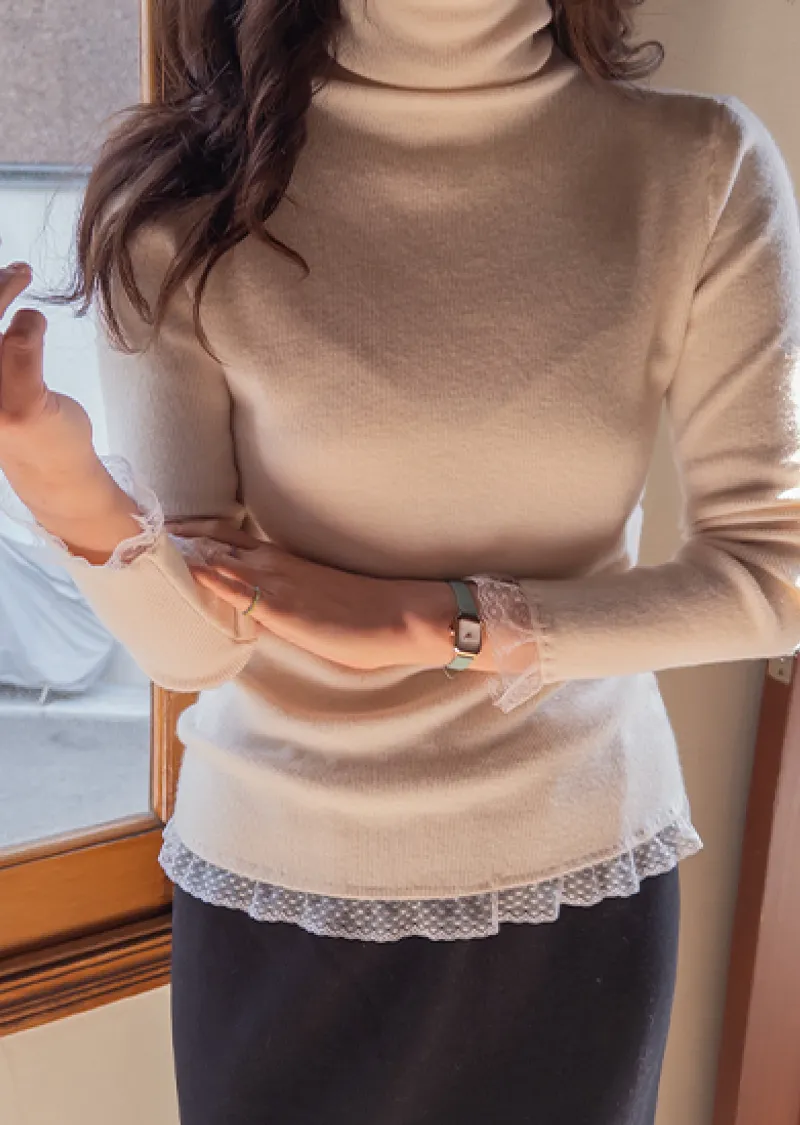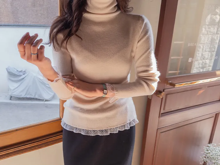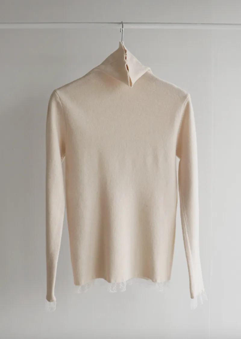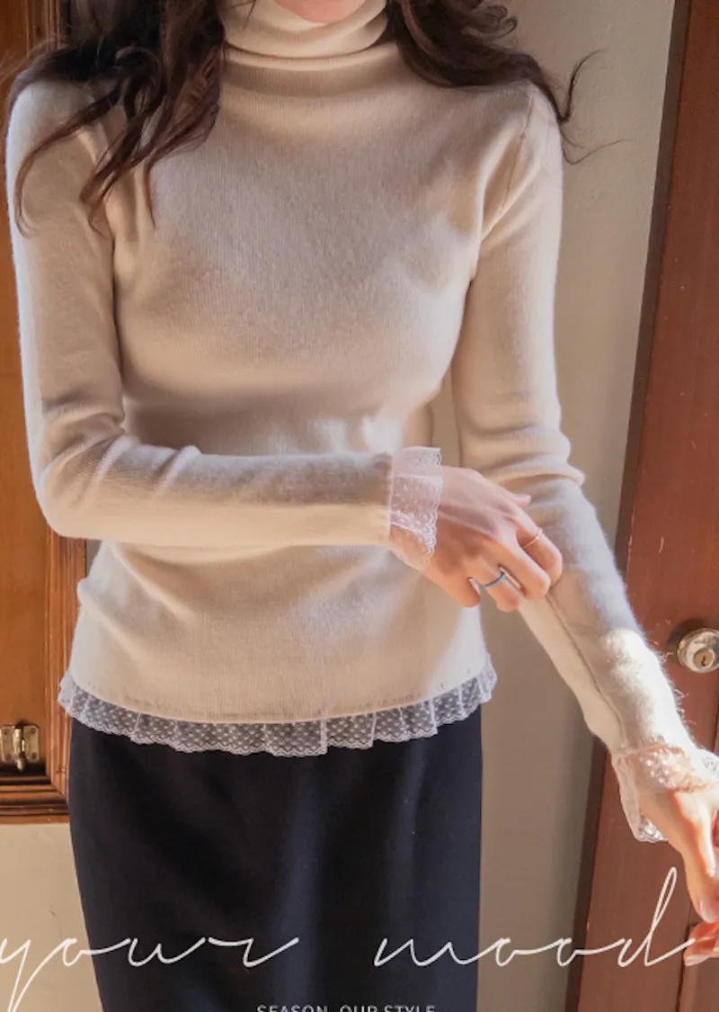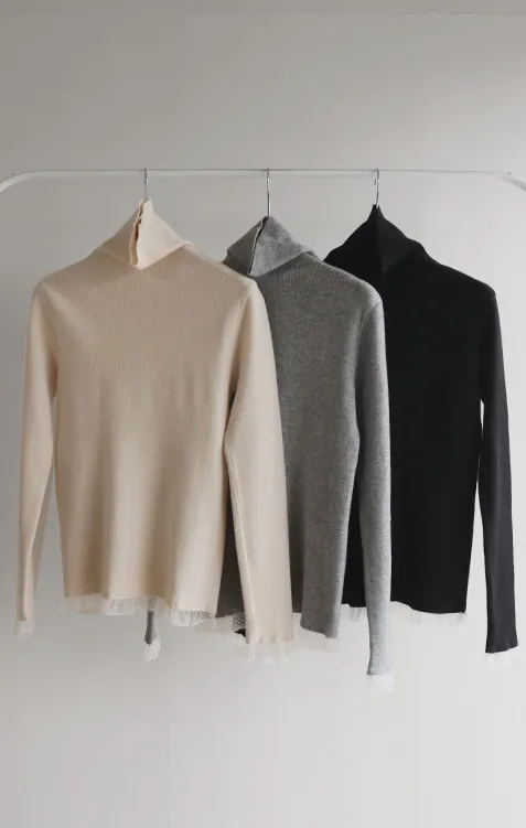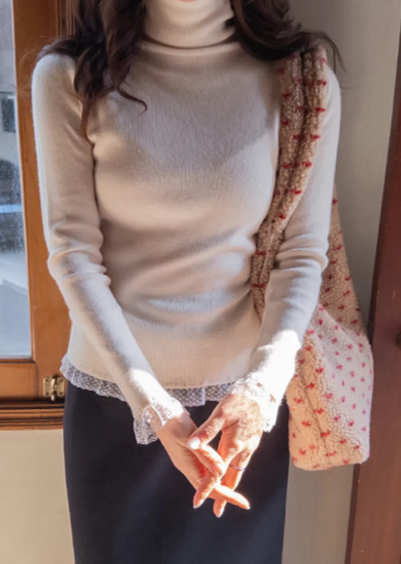 柔美點綴末端蕾絲柔軟保暖上衣