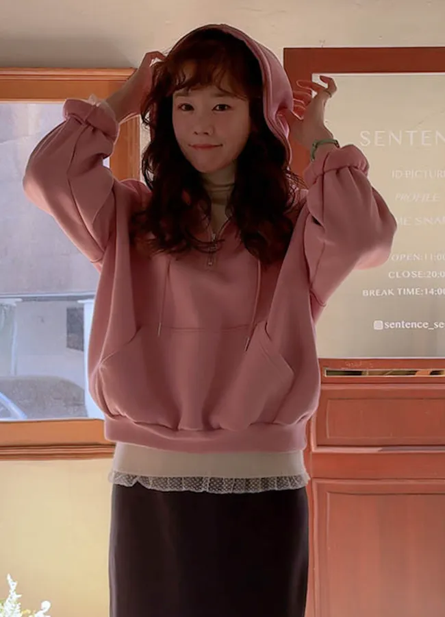 可愛溫暖字母刺繡半拉鏈連帽休閒上衣