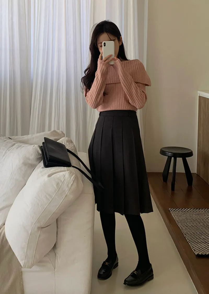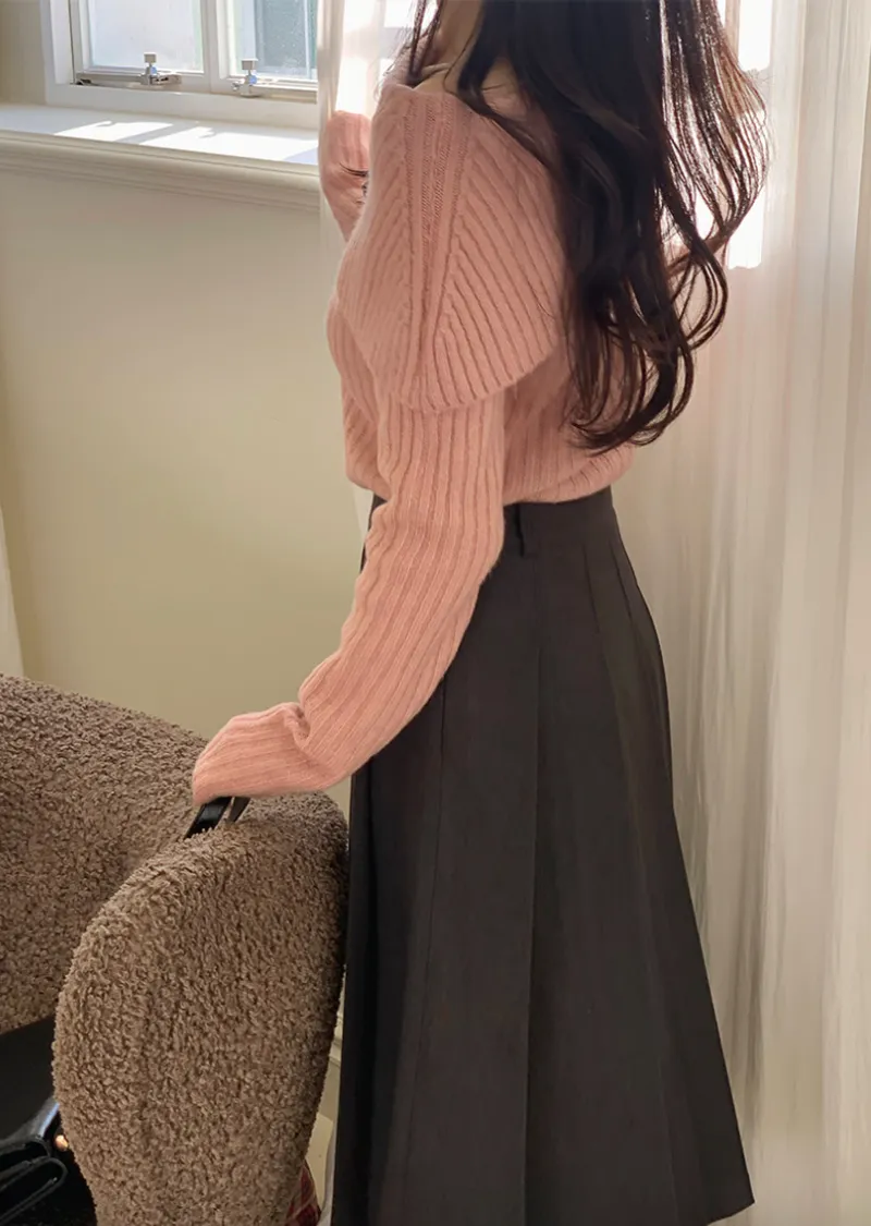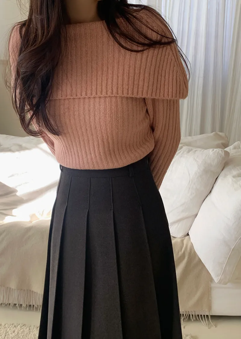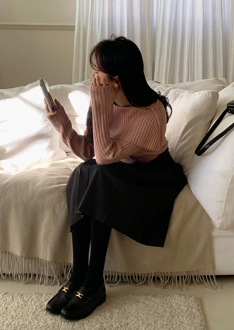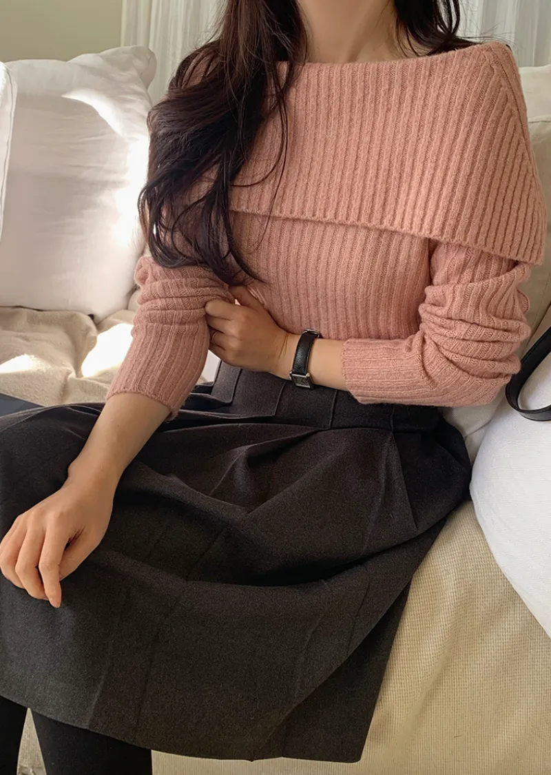 露肩羅紋針織衫,絕對是吸睛單品 !