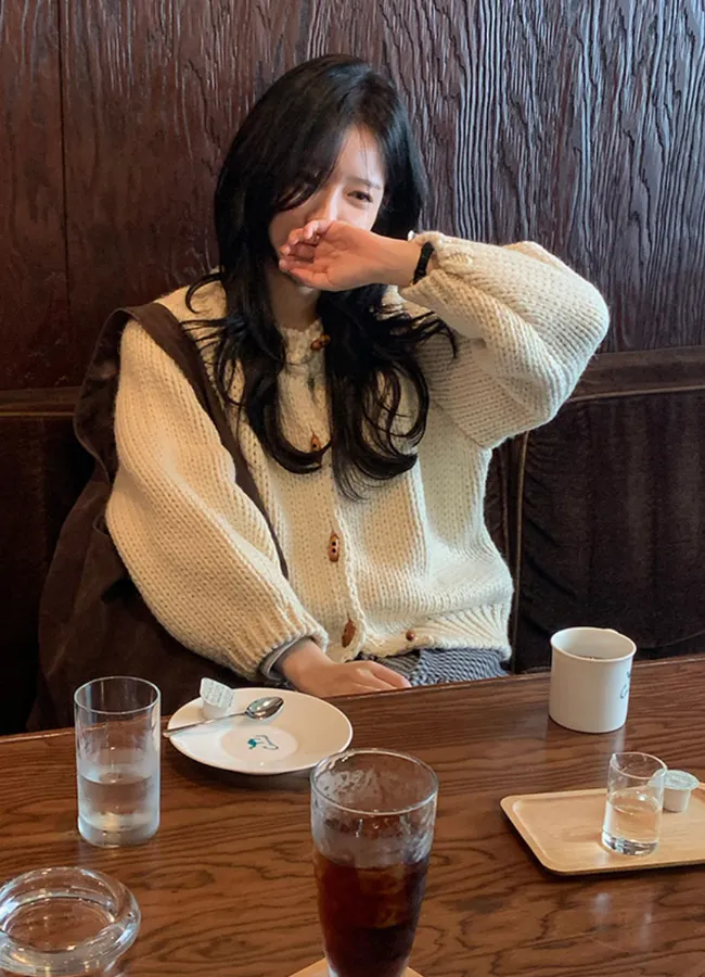 冬日氣息可愛鈕扣設計編織開衫