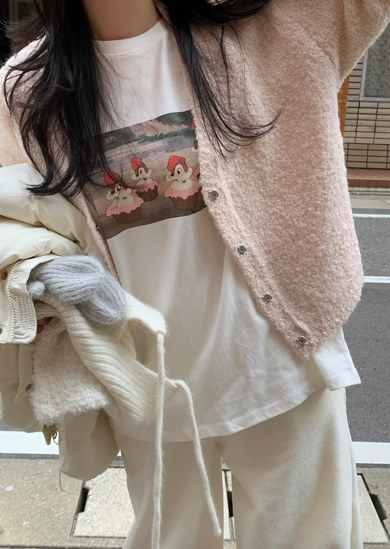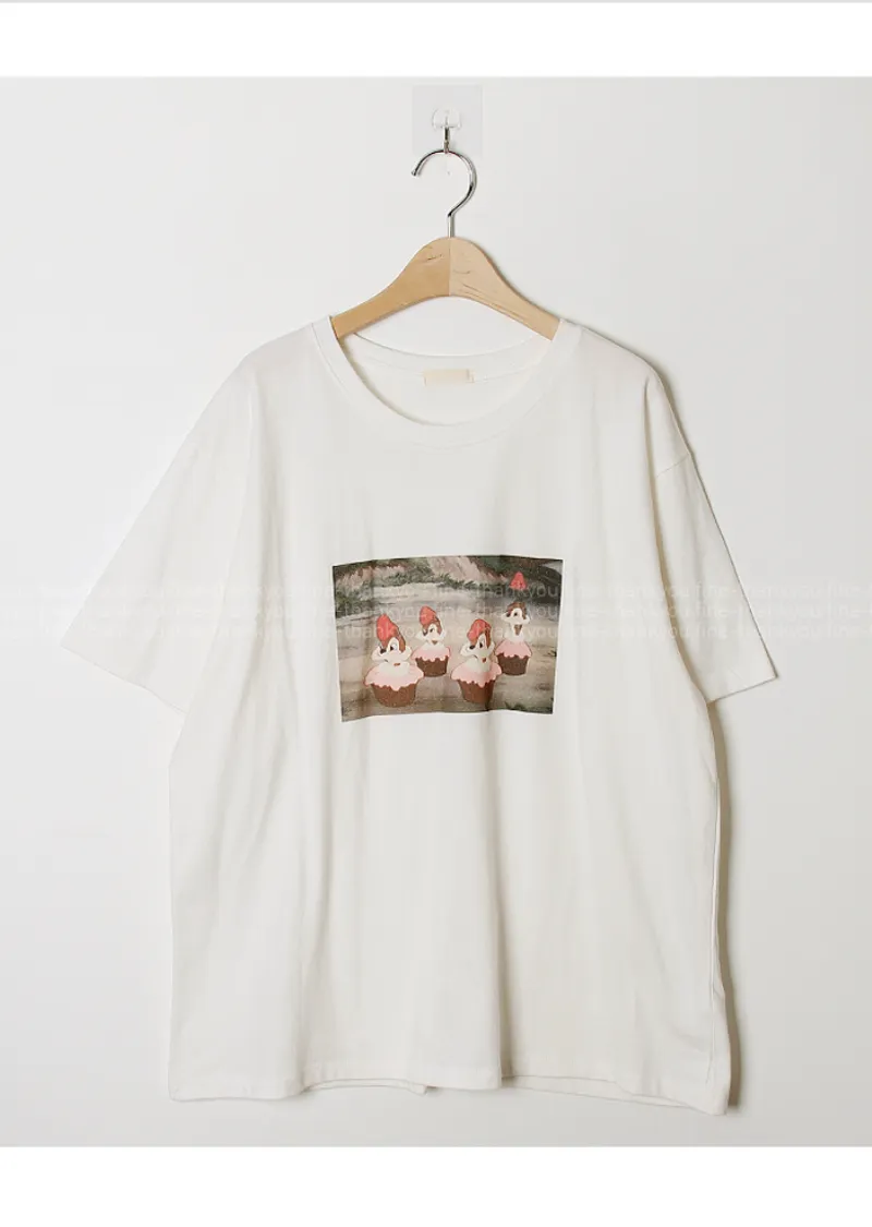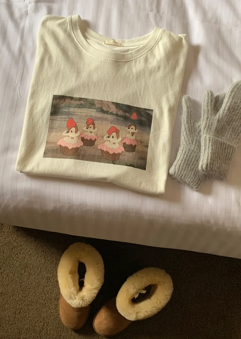 可愛小松鼠印花絨質短袖上衣