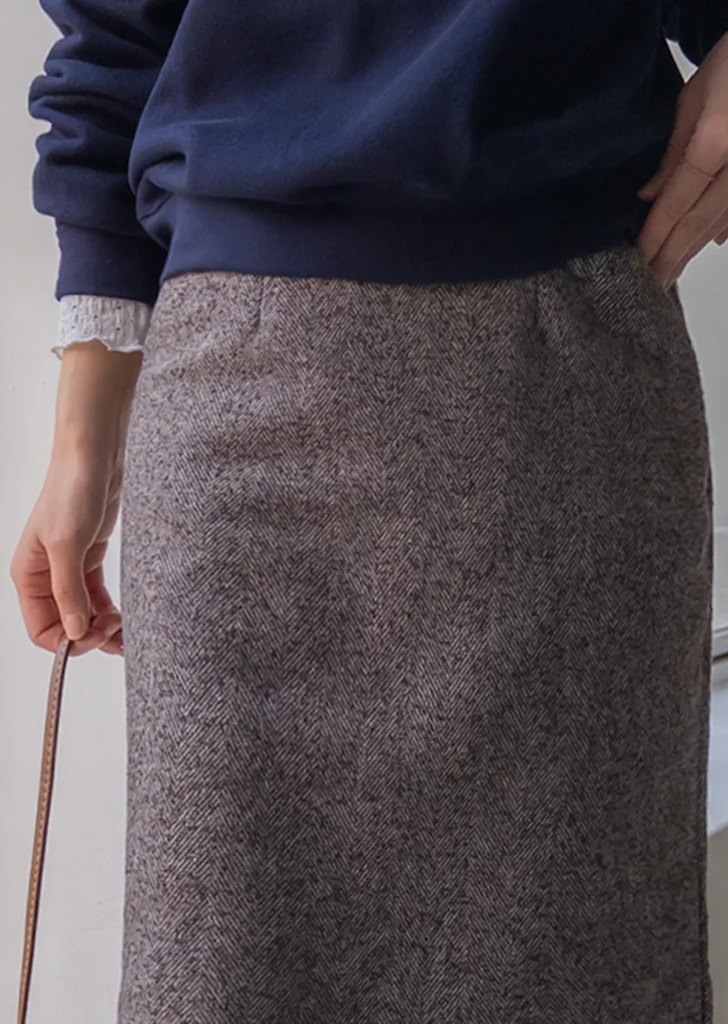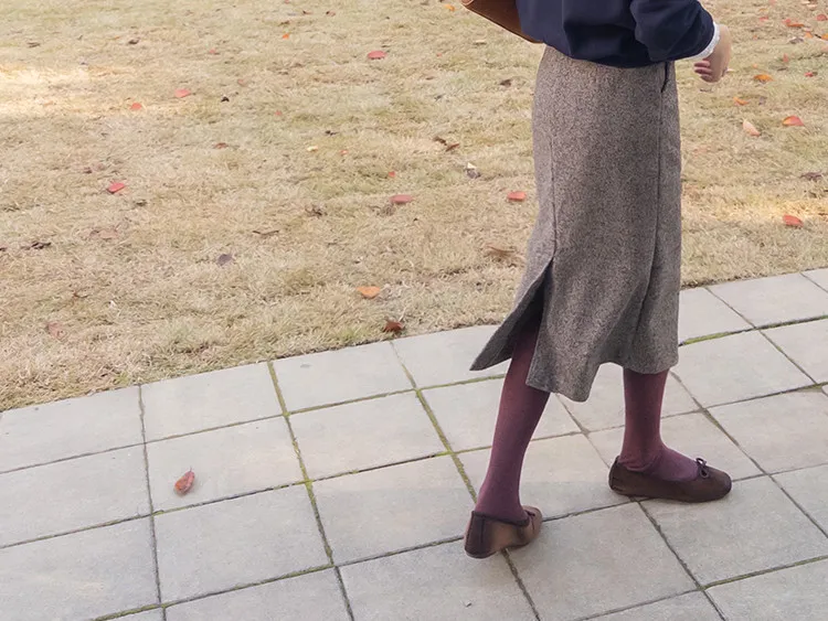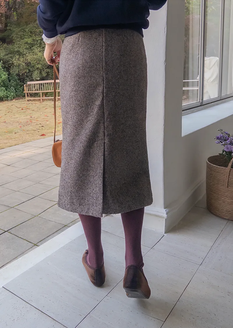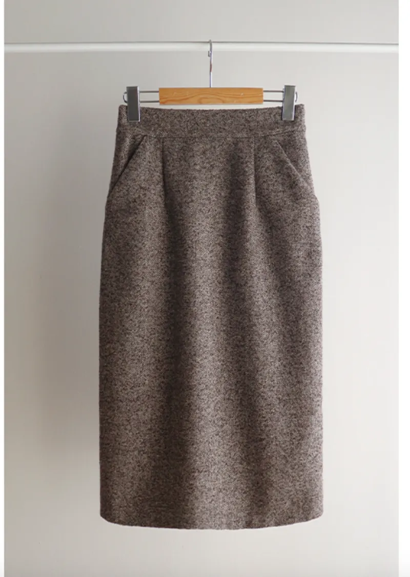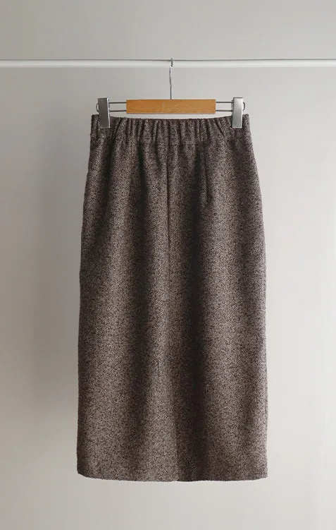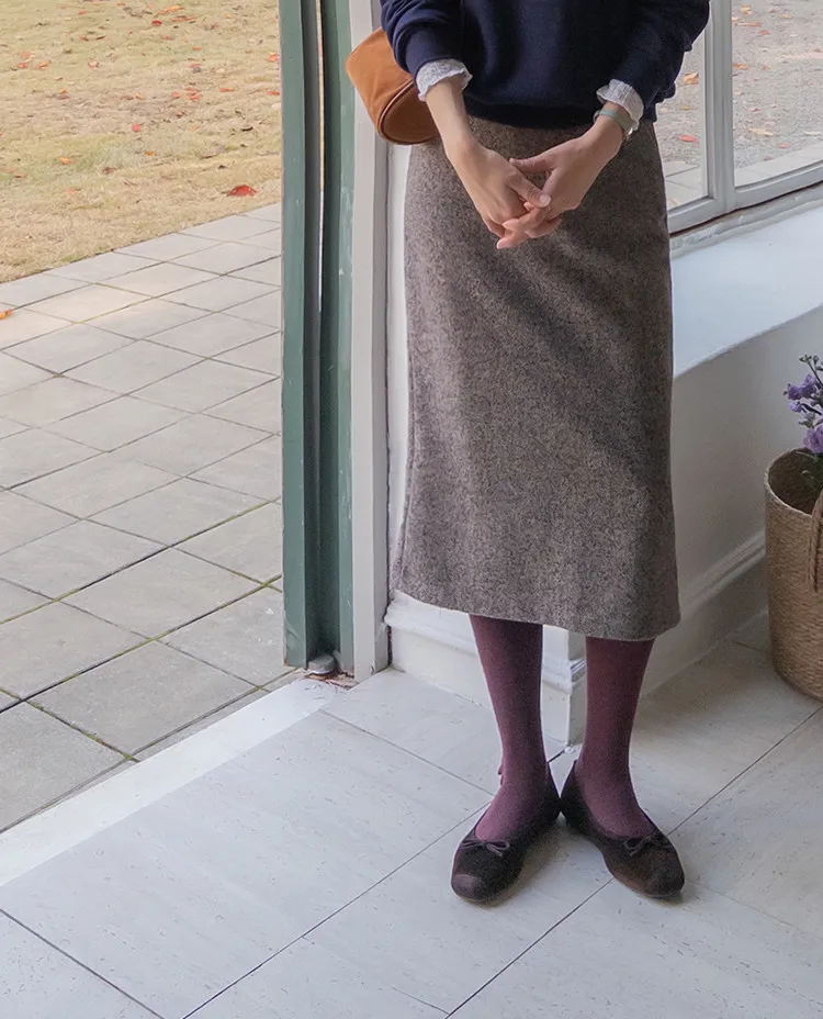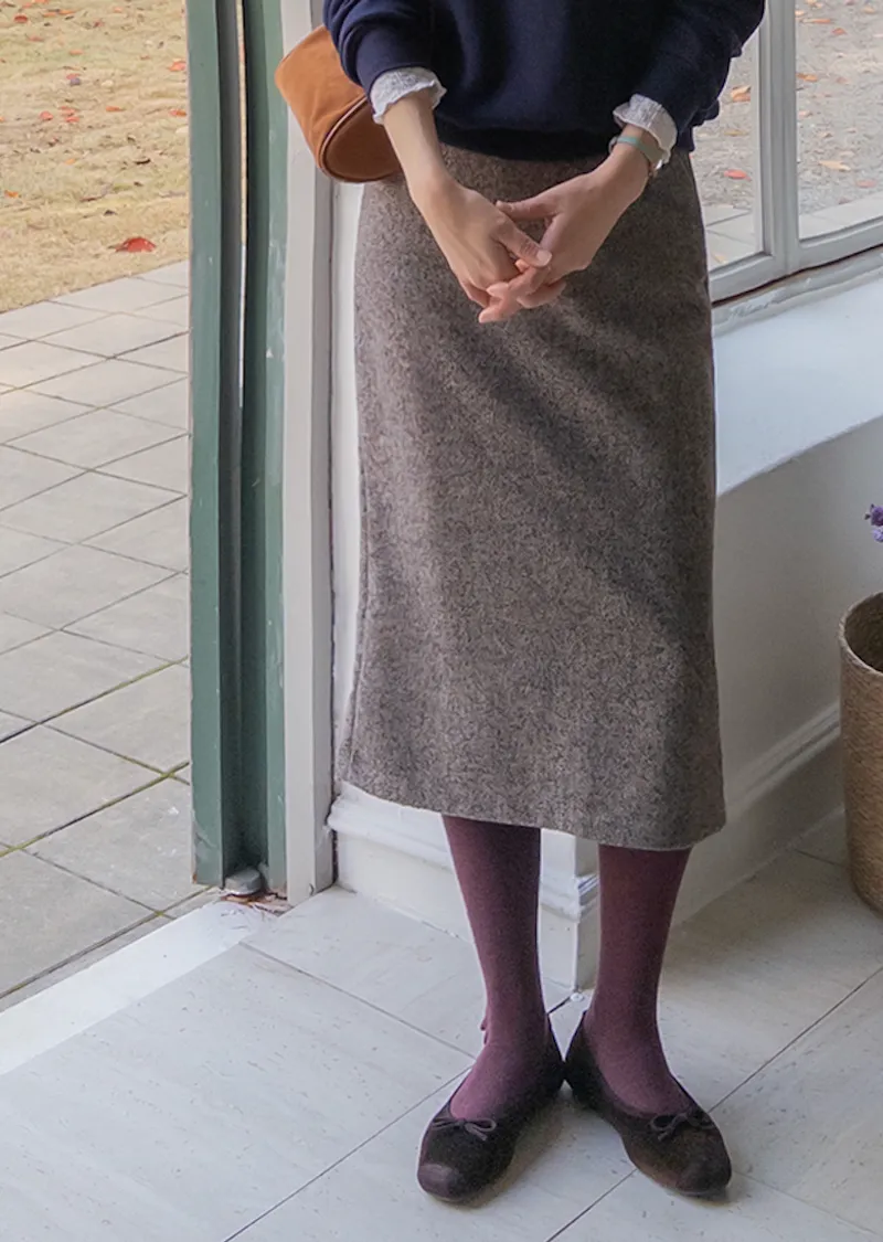 【羊毛混紡裙子♥,觸感如絲般柔滑】【H字裙,輕盈柔軟】【及膝長度,足以遮蓋下半身! 】【後腰鬆緊帶與後開衩設計,穿著舒適】