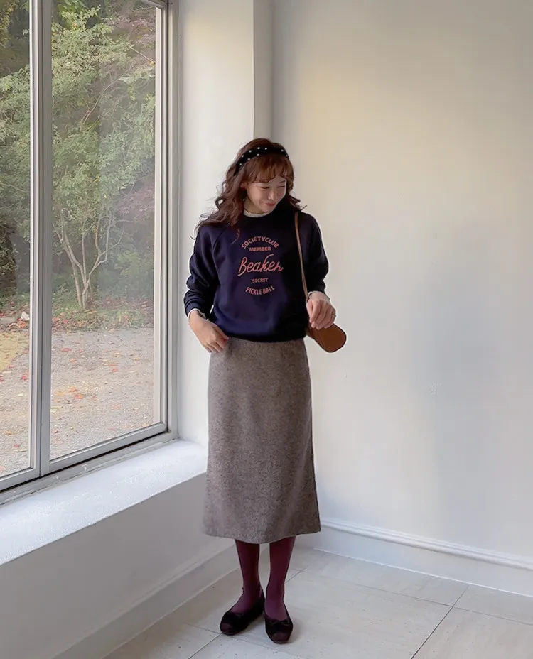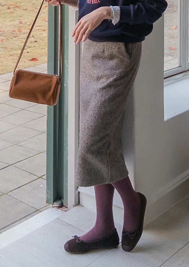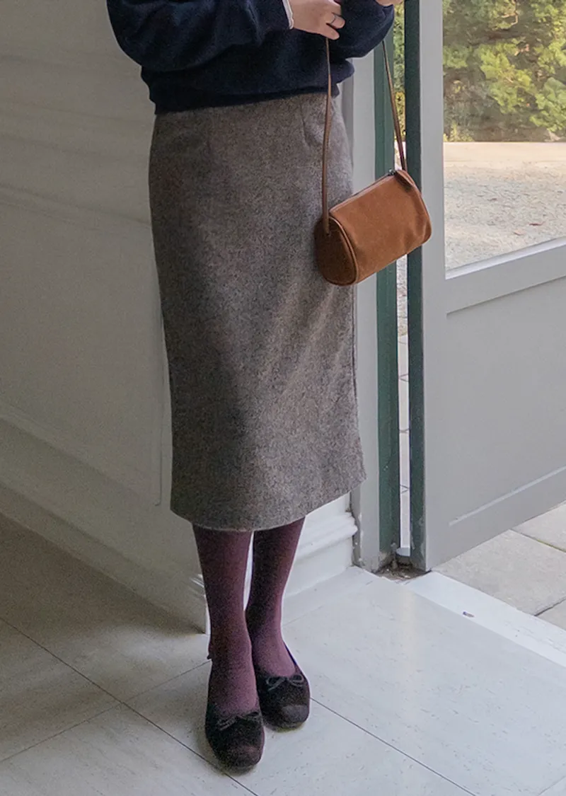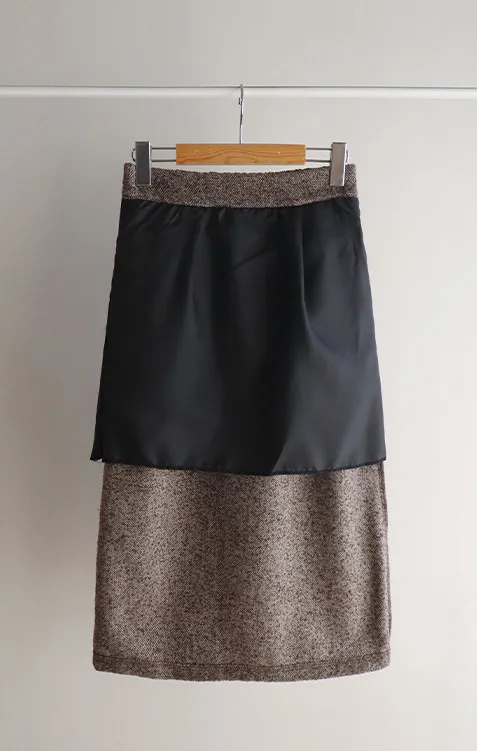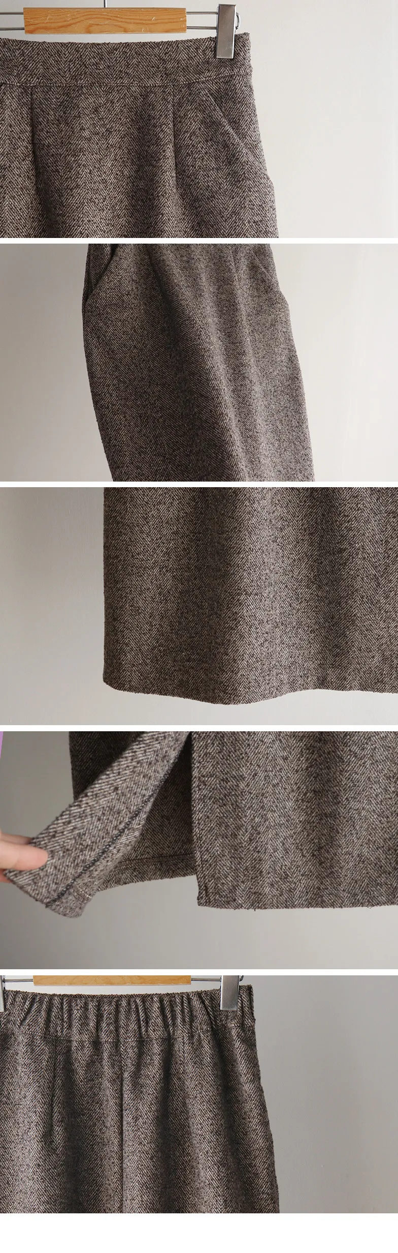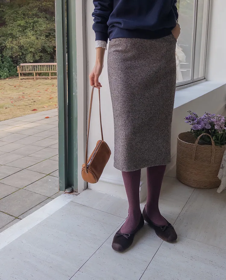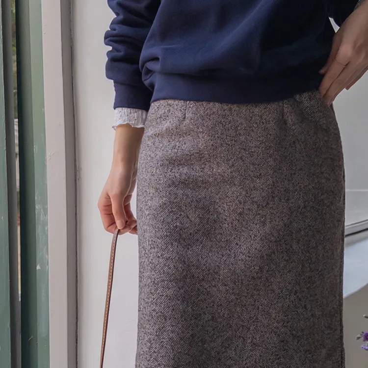【羊毛混紡裙子♥,觸感如絲般柔滑】【H字裙,輕盈柔軟】【及膝長度,足以遮蓋下半身! 】【後腰鬆緊帶與後開衩設計,穿著舒適】