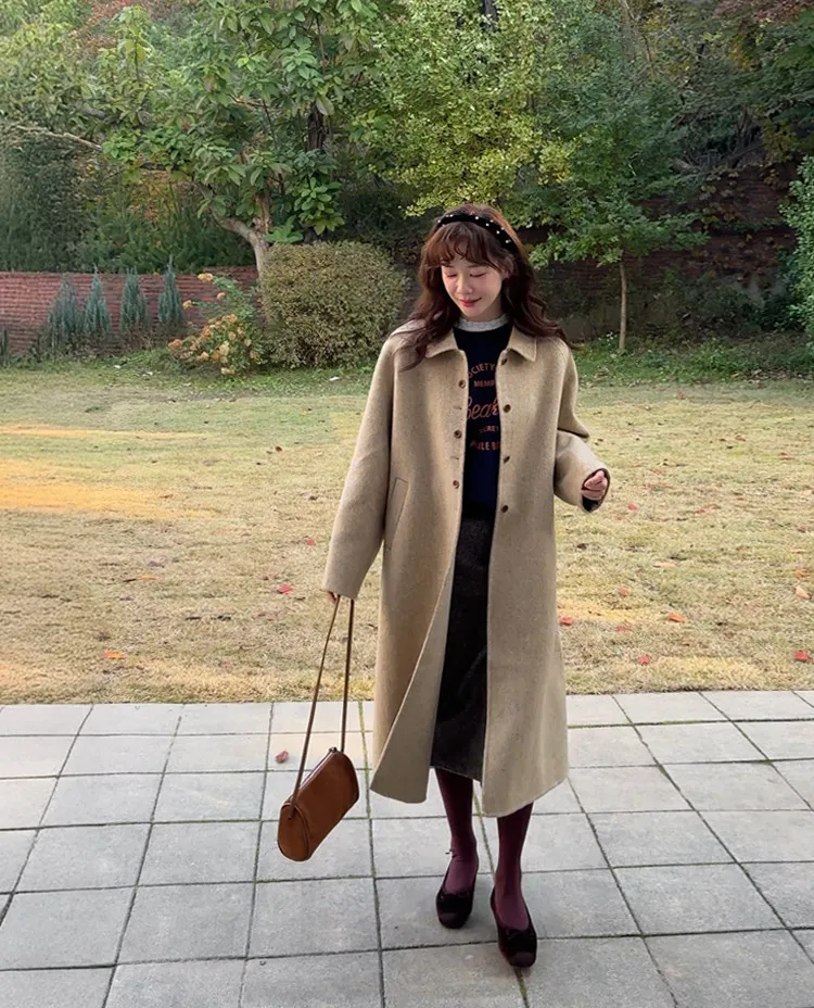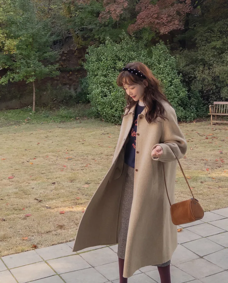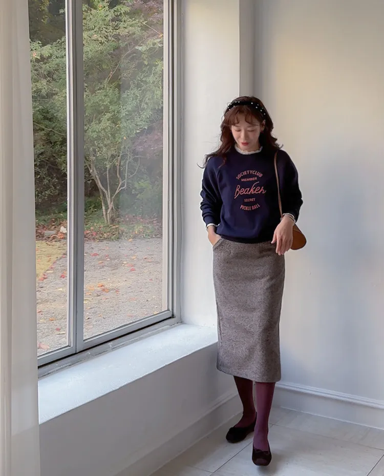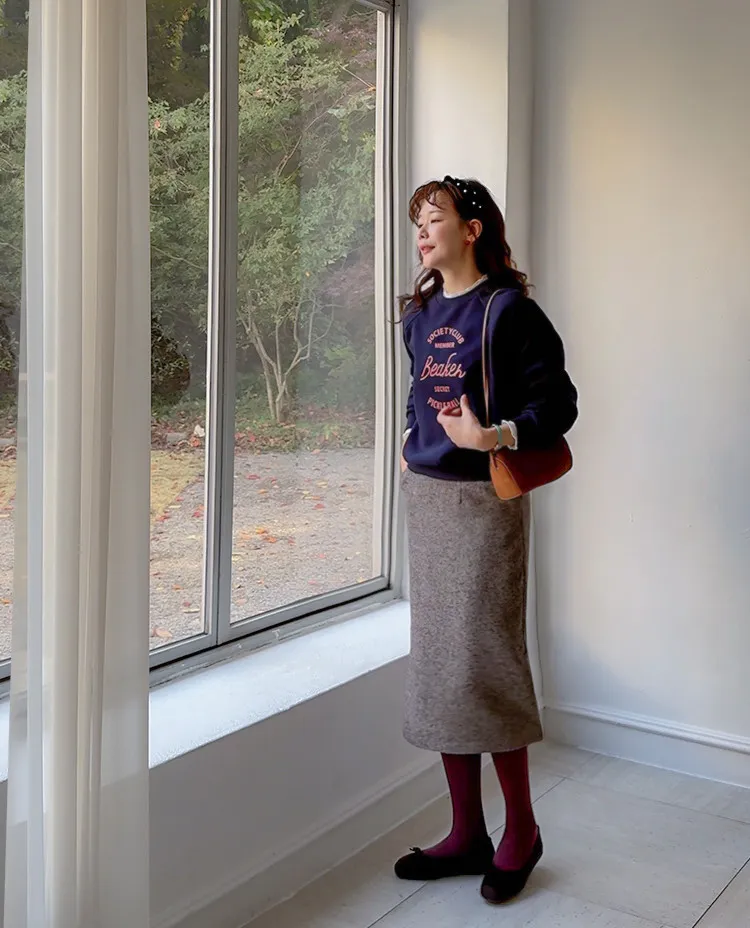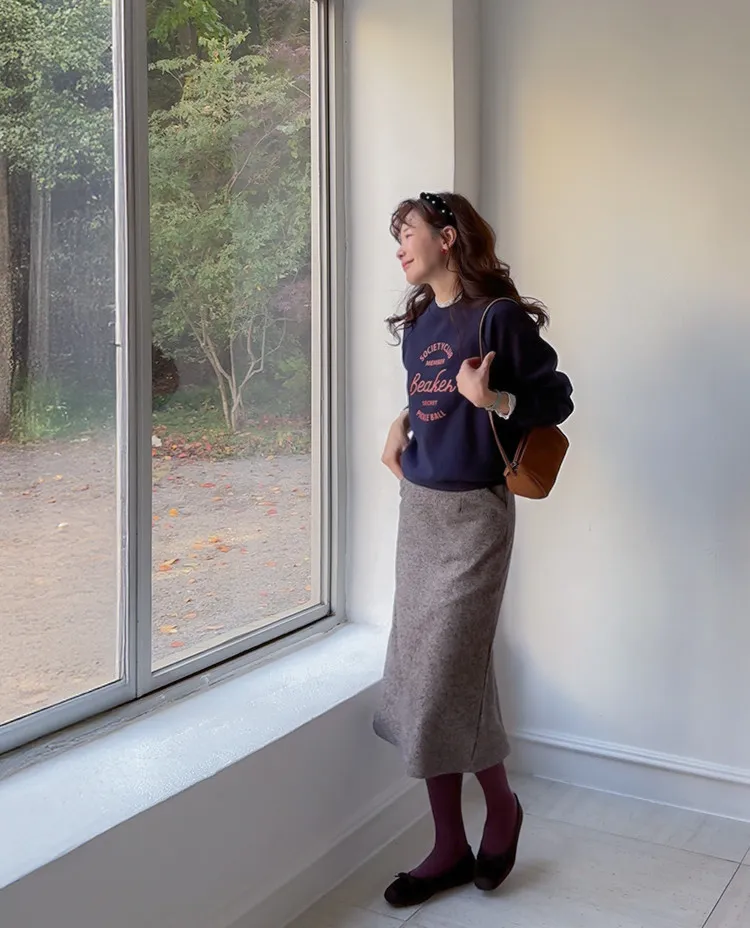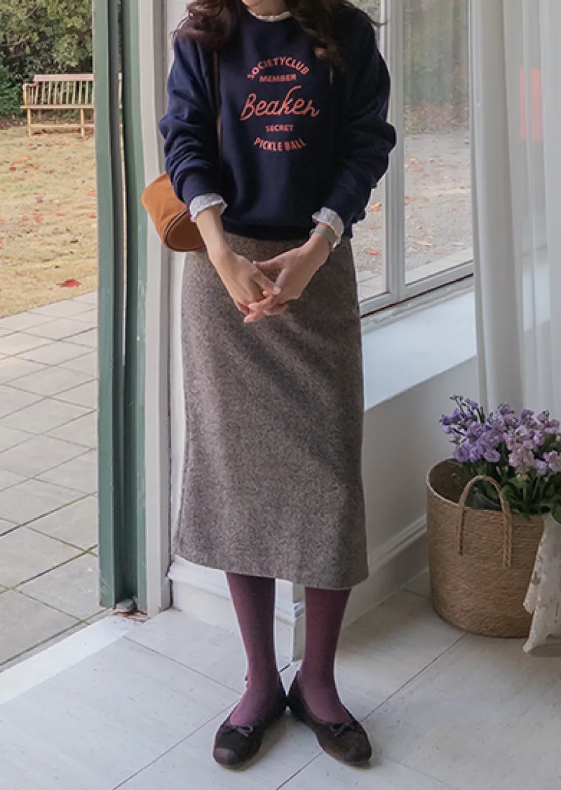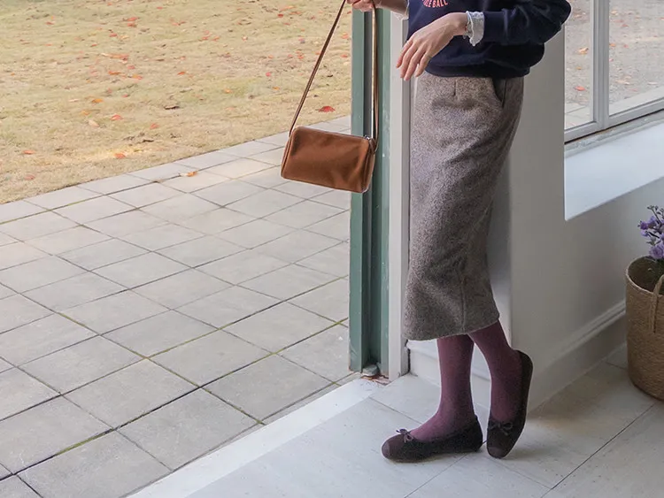 【羊毛混紡裙子♥,觸感如絲般柔滑】【H字裙,輕盈柔軟】【及膝長度,足以遮蓋下半身! 】【後腰鬆緊帶與後開衩設計,穿著舒適】