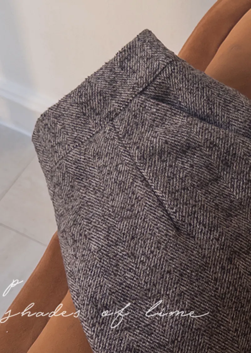 冬季優雅氛圍修身H剪裁後開衩中長裙