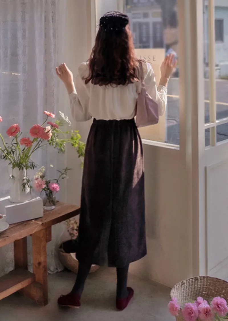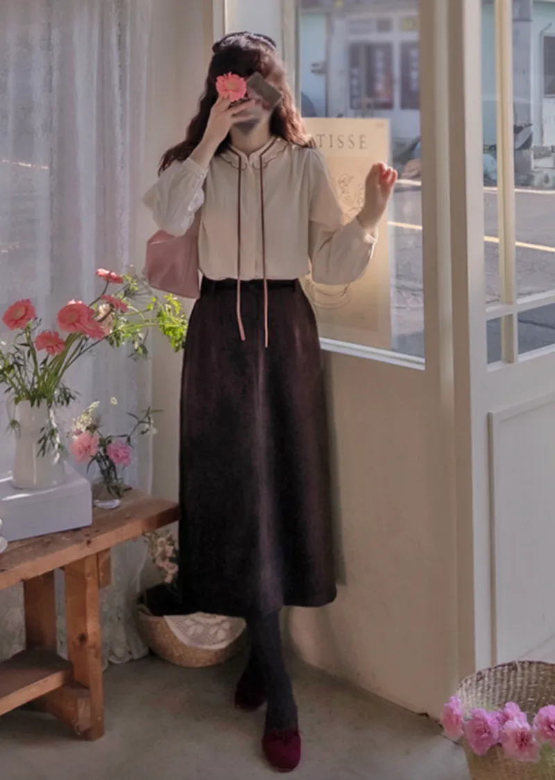 【裡料:聚酯纖維】【後腰彈性帶】【絲絨布料,溫暖柔軟】【易於搭配,穿著舒適】【舒適彈性布料】【腰帶設計,穿著舒適】【後擺開衩,活動自如】