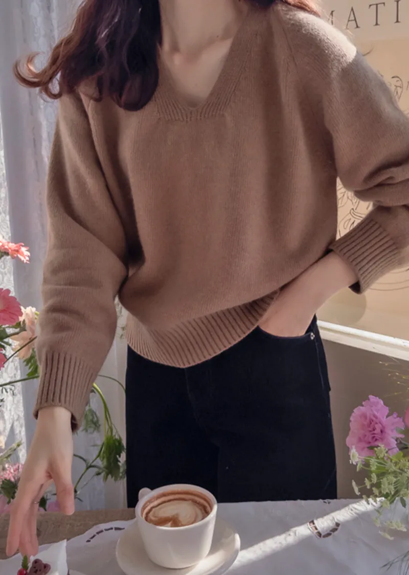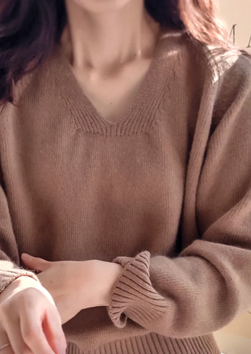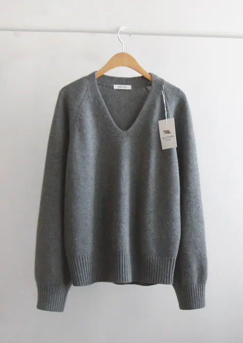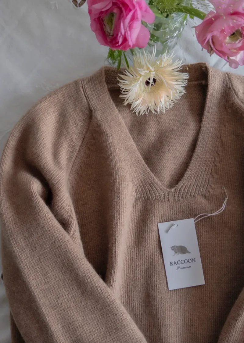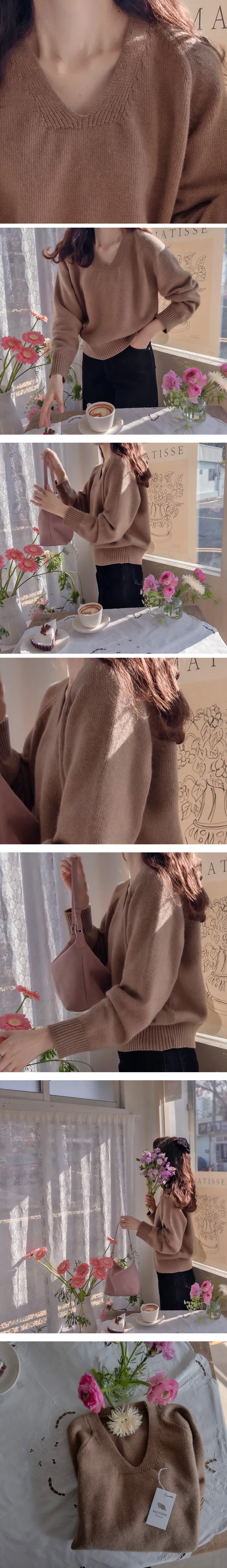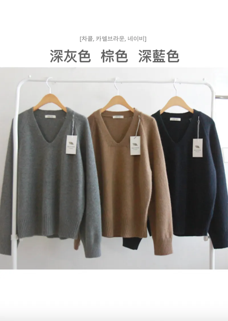 【溫暖奢華的針織衫採用15%貉子毛、22%純羊羔毛、55%羊絨尼龍和8%羊毛混紡面料製成】【溫暖針織衫,觸感奢華】【V領設計也非常漂亮】【溫暖且時尚】
