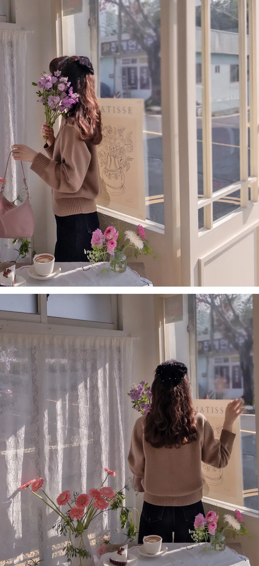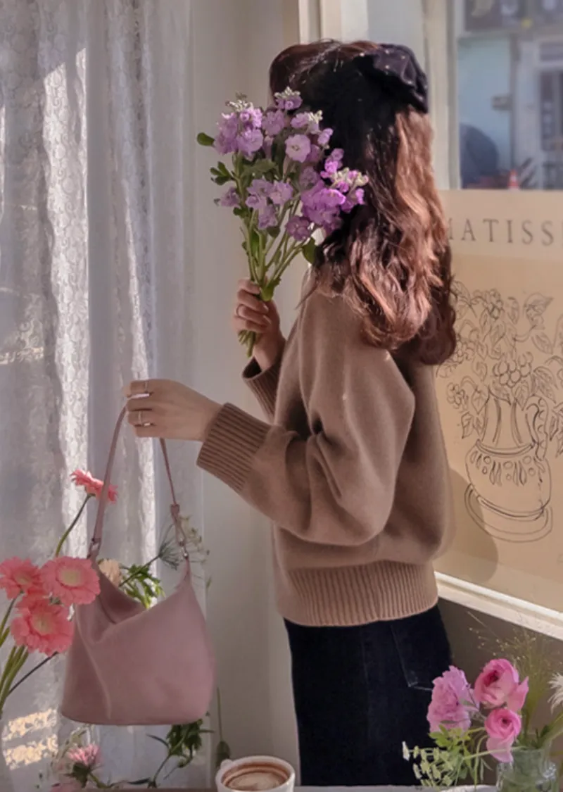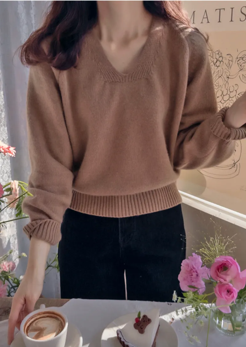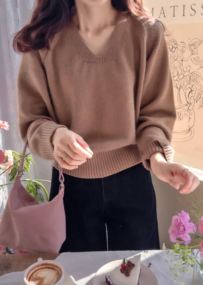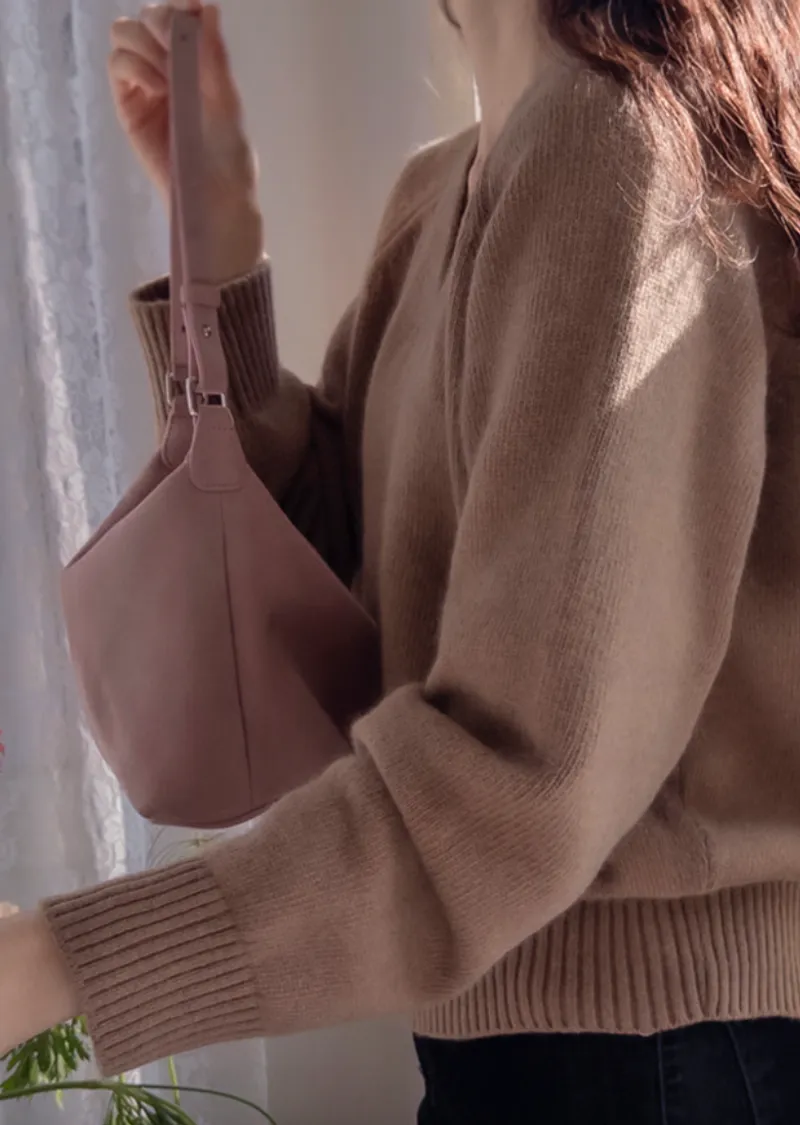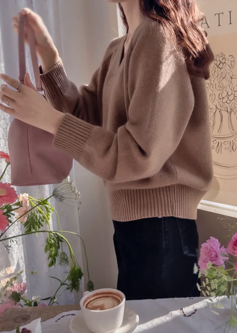 【溫暖奢華的針織衫採用15%貉子毛、22%純羊羔毛、55%羊絨尼龍和8%羊毛混紡面料製成】【溫暖針織衫,觸感奢華】【V領設計也非常漂亮】【溫暖且時尚】