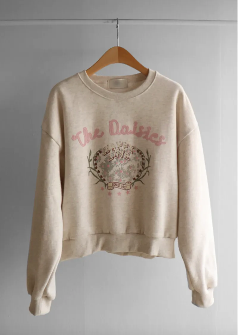 可愛盛開花朵印花半短款穿搭上衣 刷毛款
