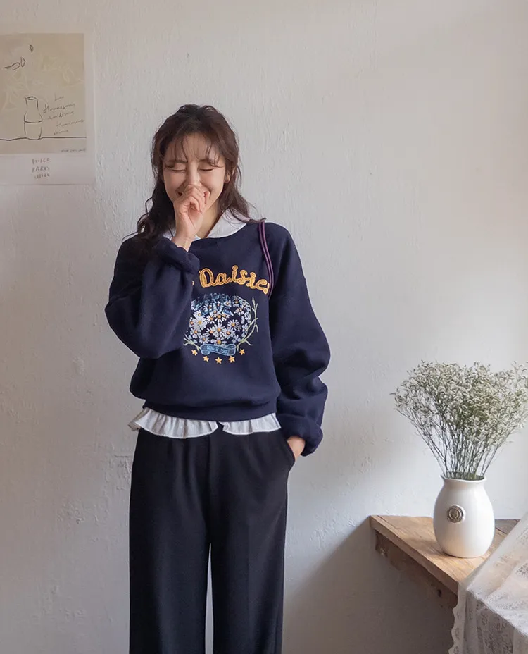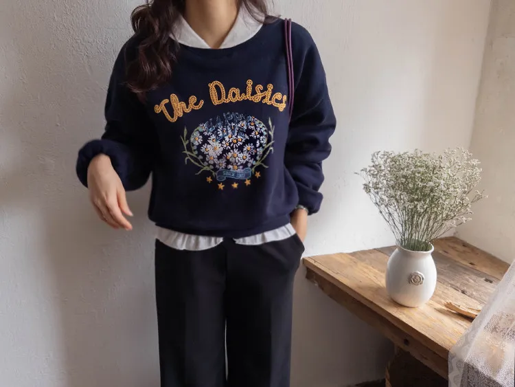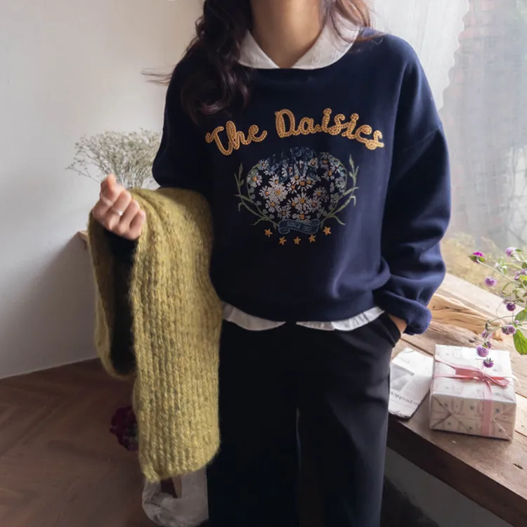 【即使在寒冬也能保暖,抓絨內裡♨】【性感的彩色字母和花卉印花,盡顯時尚^^】【日常休閒單品,版型合身,遮蓋臀部! 】【寬鬆的廓形,修飾身型】