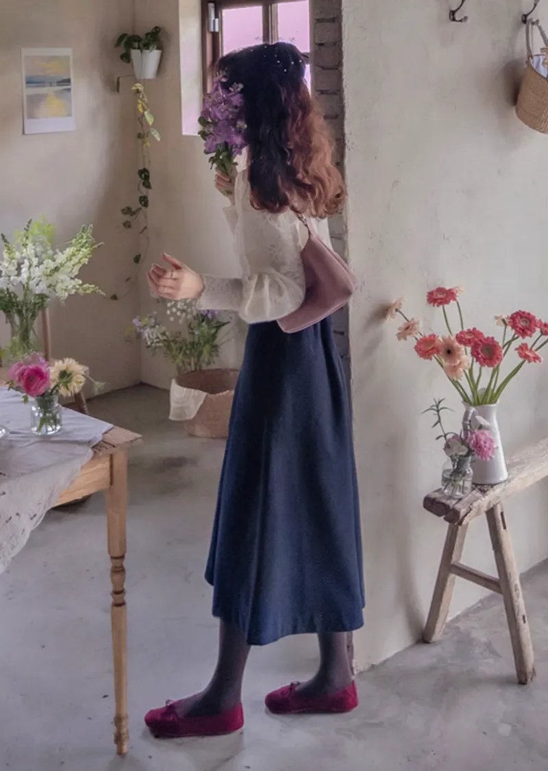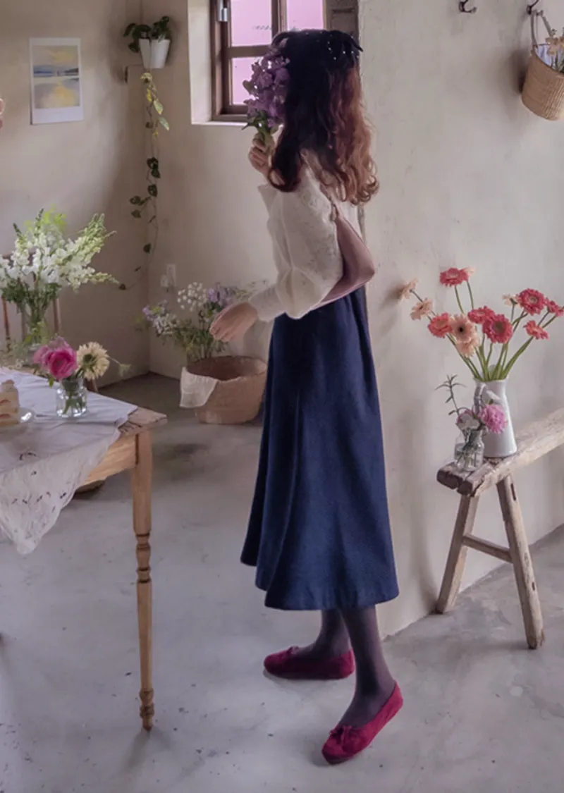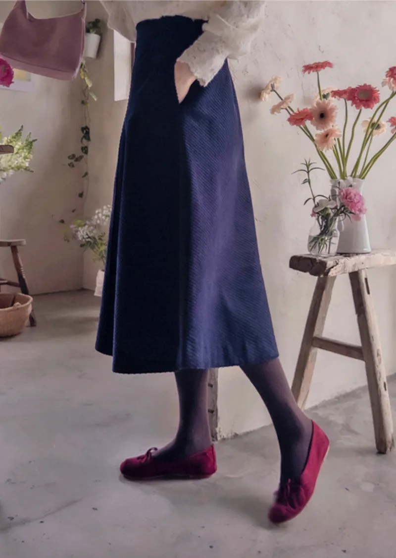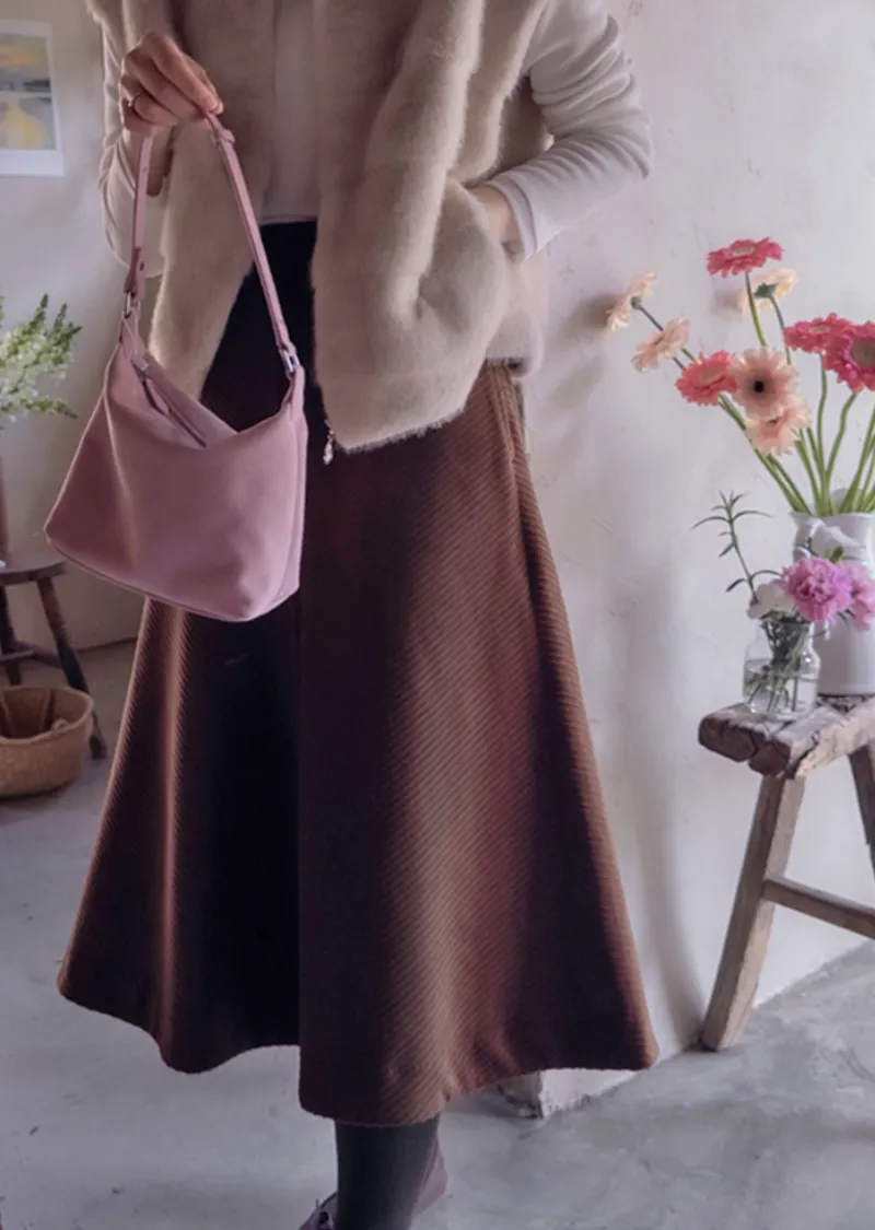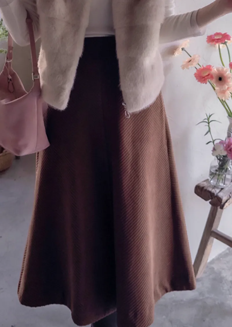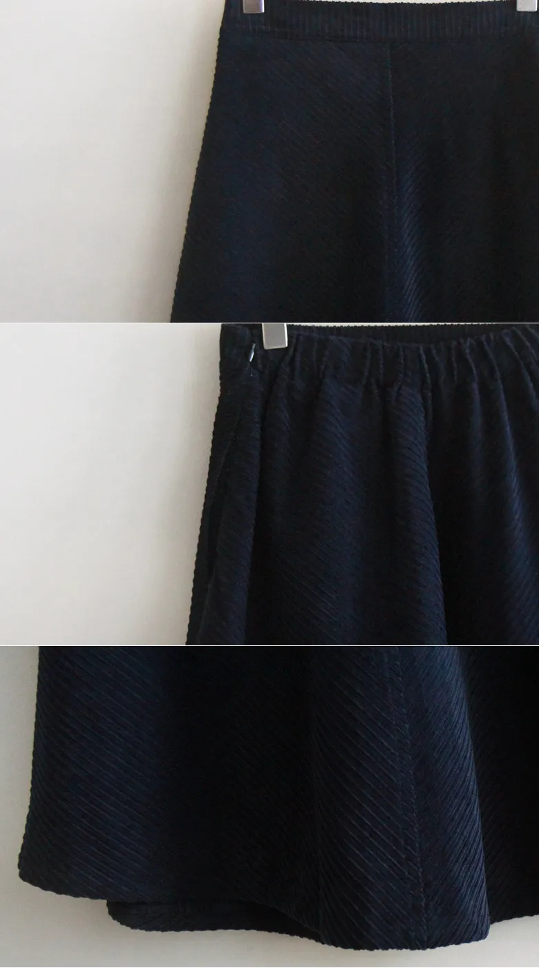 優美時尚A字版型斜向垂墜線條燈芯絨中長裙