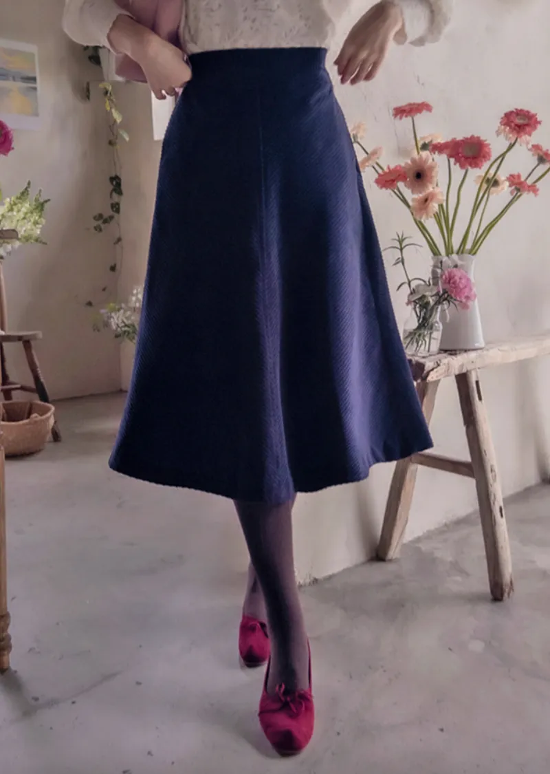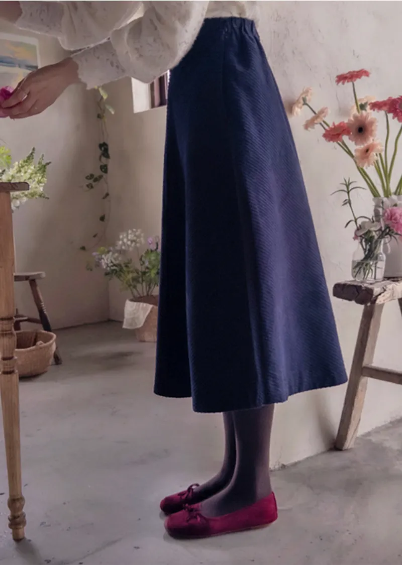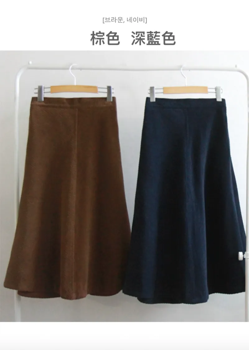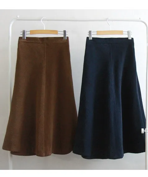 【聚酯纖維內襯】【後腰鬆緊帶設計,穿著舒適】【適合即將到來的季節的燈芯絨面料】【優美時尚的線條】【易於搭配各種精緻色彩】【推薦這款修身半身裙,四季皆宜】