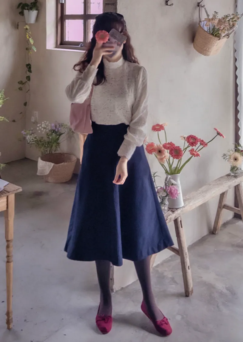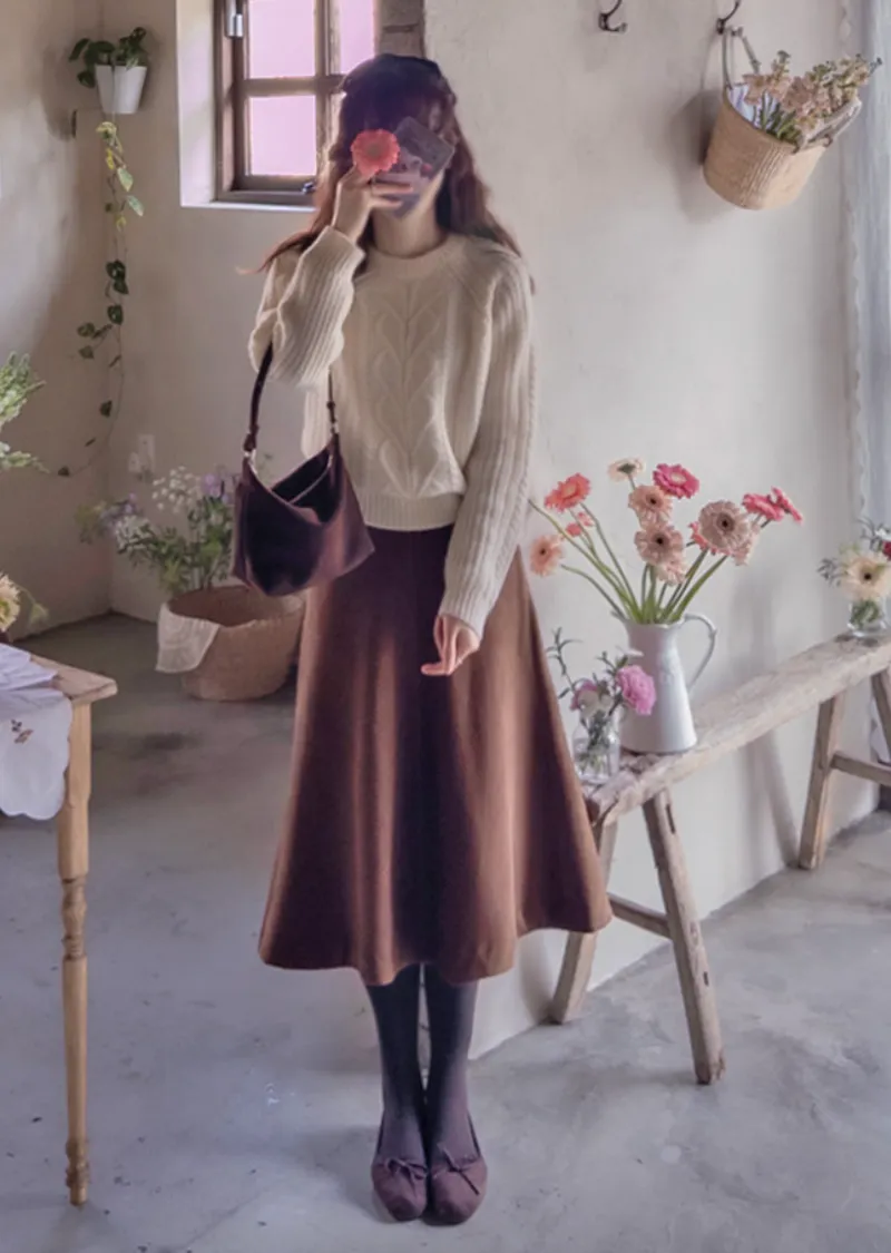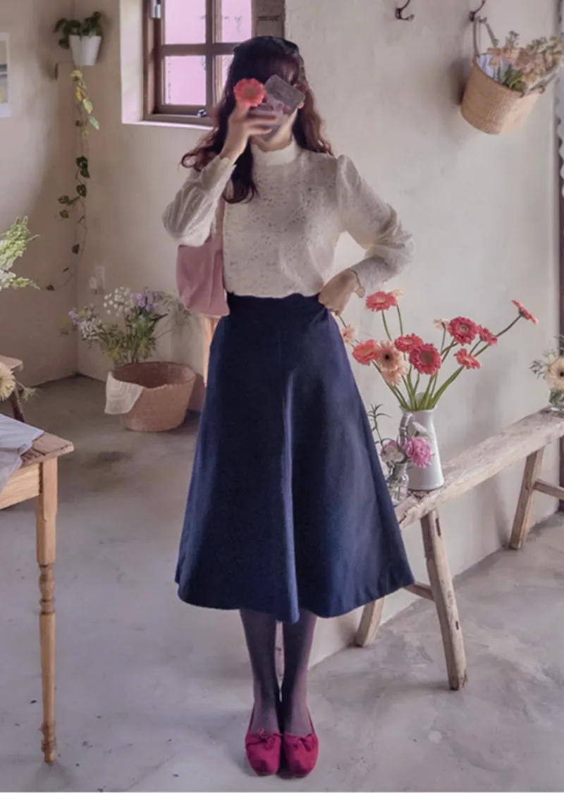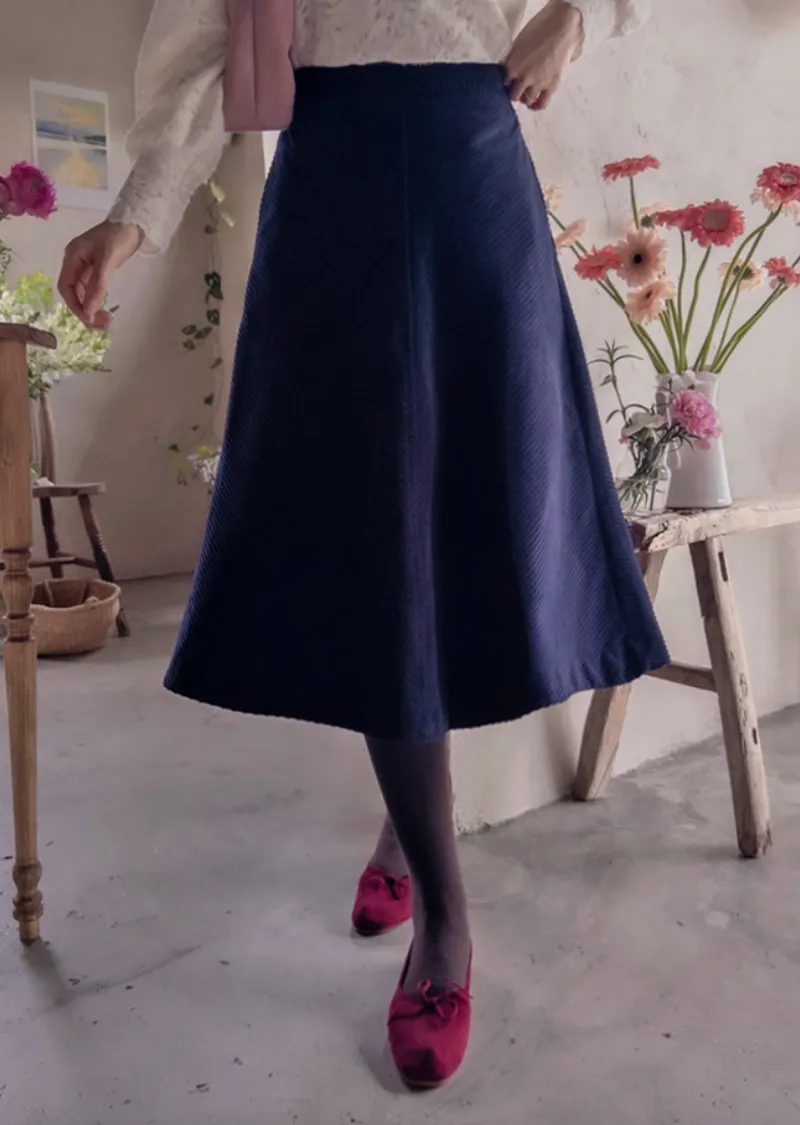 【聚酯纖維內襯】【後腰鬆緊帶設計,穿著舒適】【適合即將到來的季節的燈芯絨面料】【優美時尚的線條】【易於搭配各種精緻色彩】【推薦這款修身半身裙,四季皆宜】
