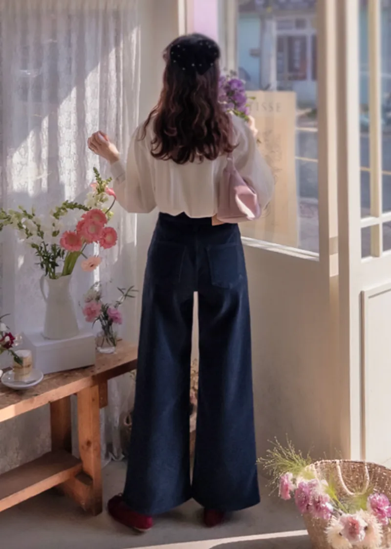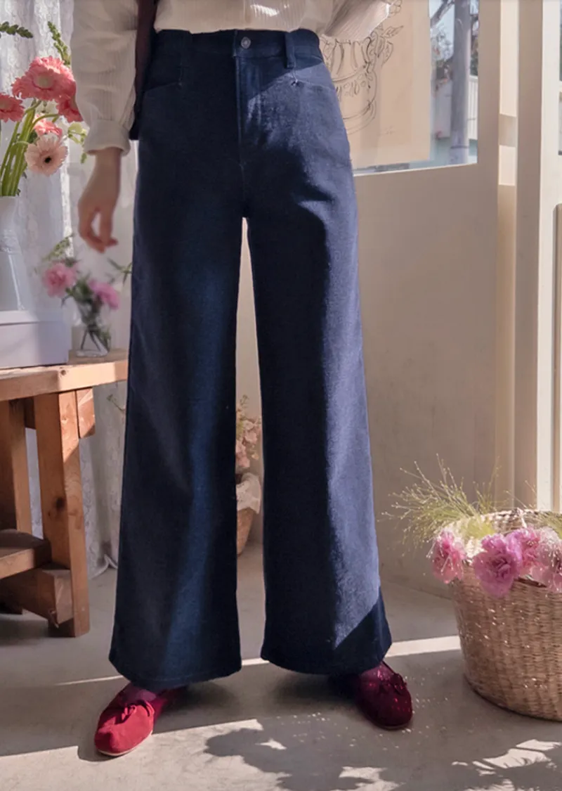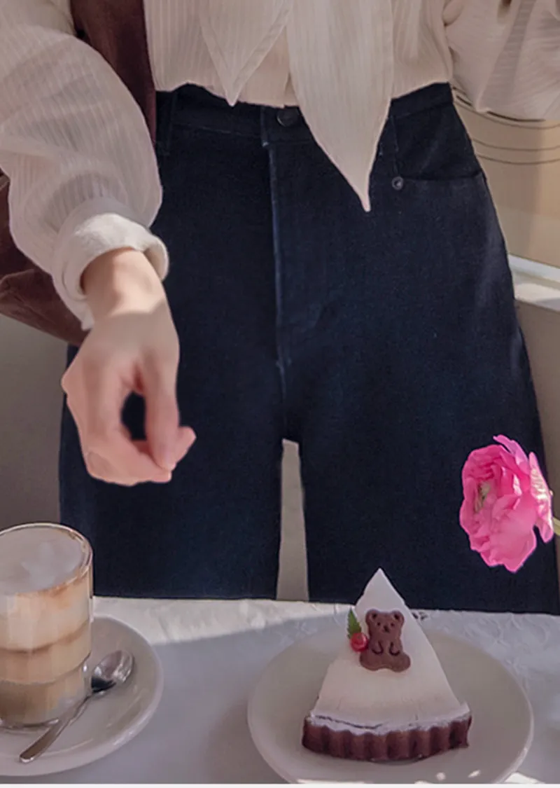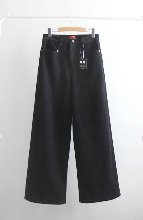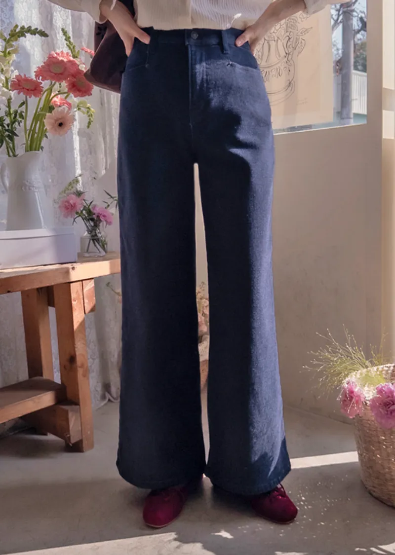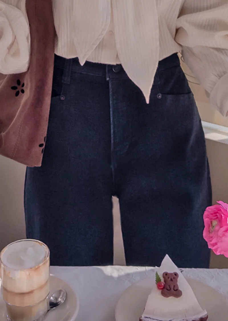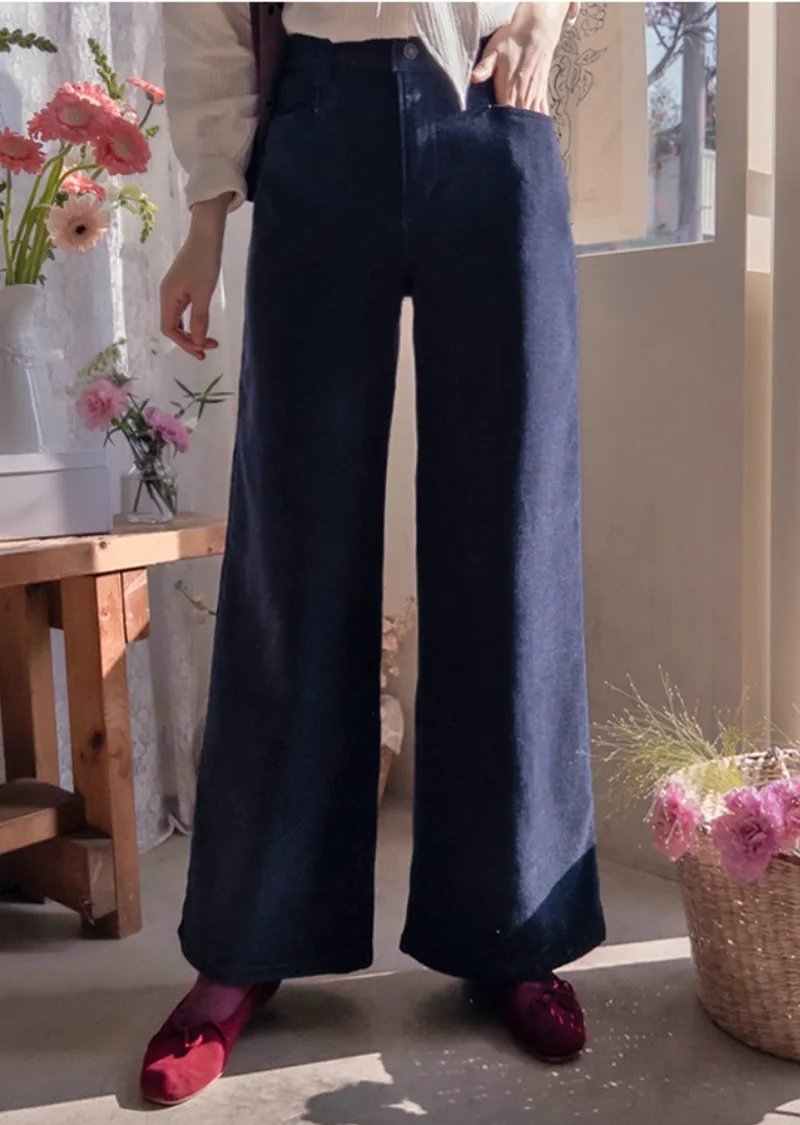 冬季保暖柔軟彈性半寬版型絨質褲