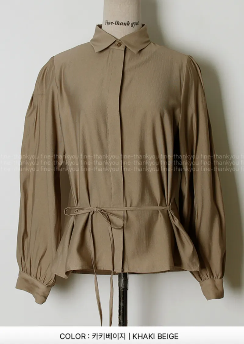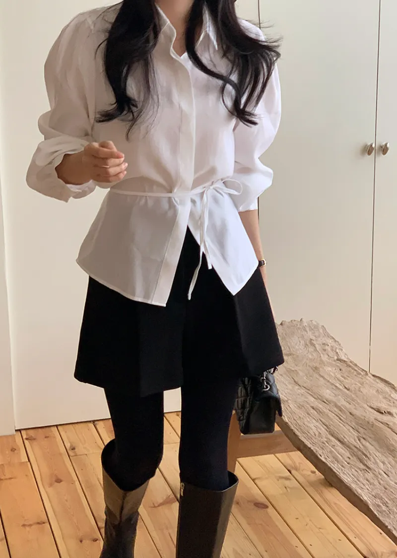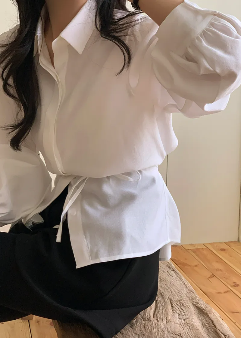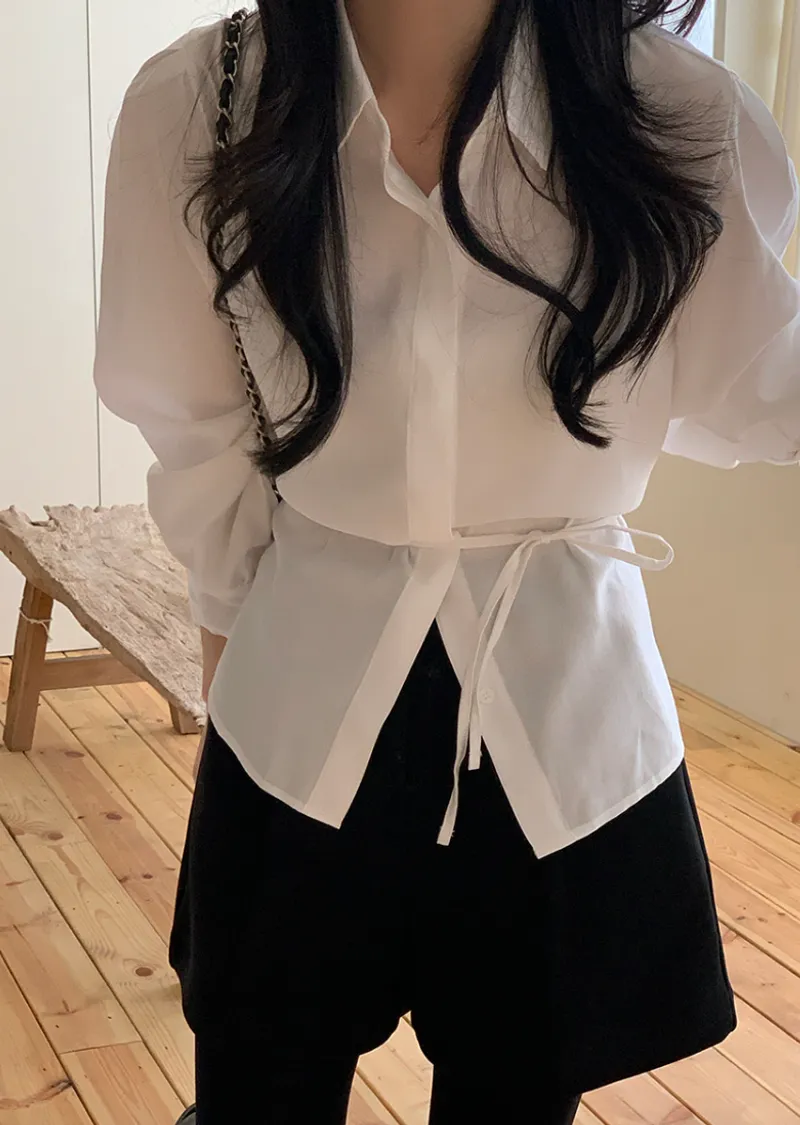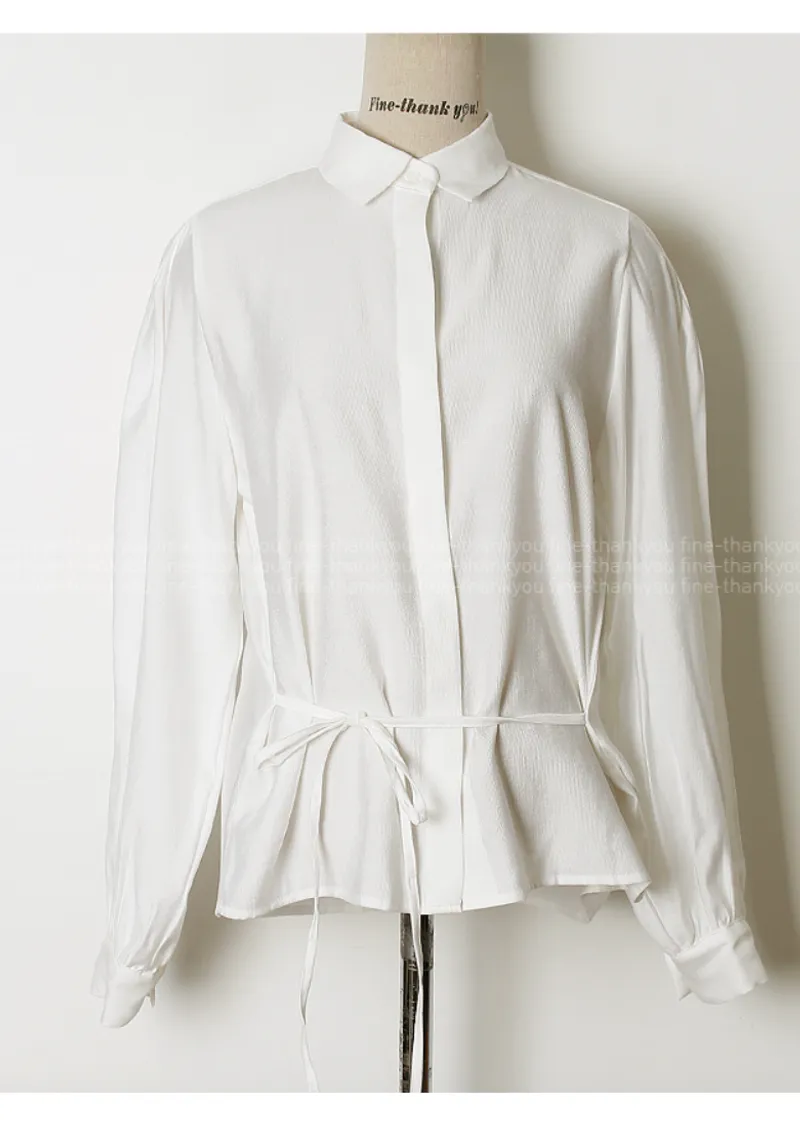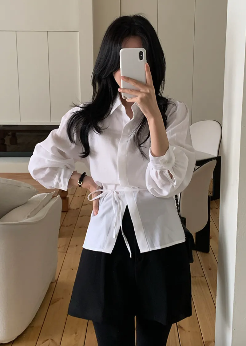 現代感女性魅力隱藏式鈕扣腰綁帶穿搭襯衫